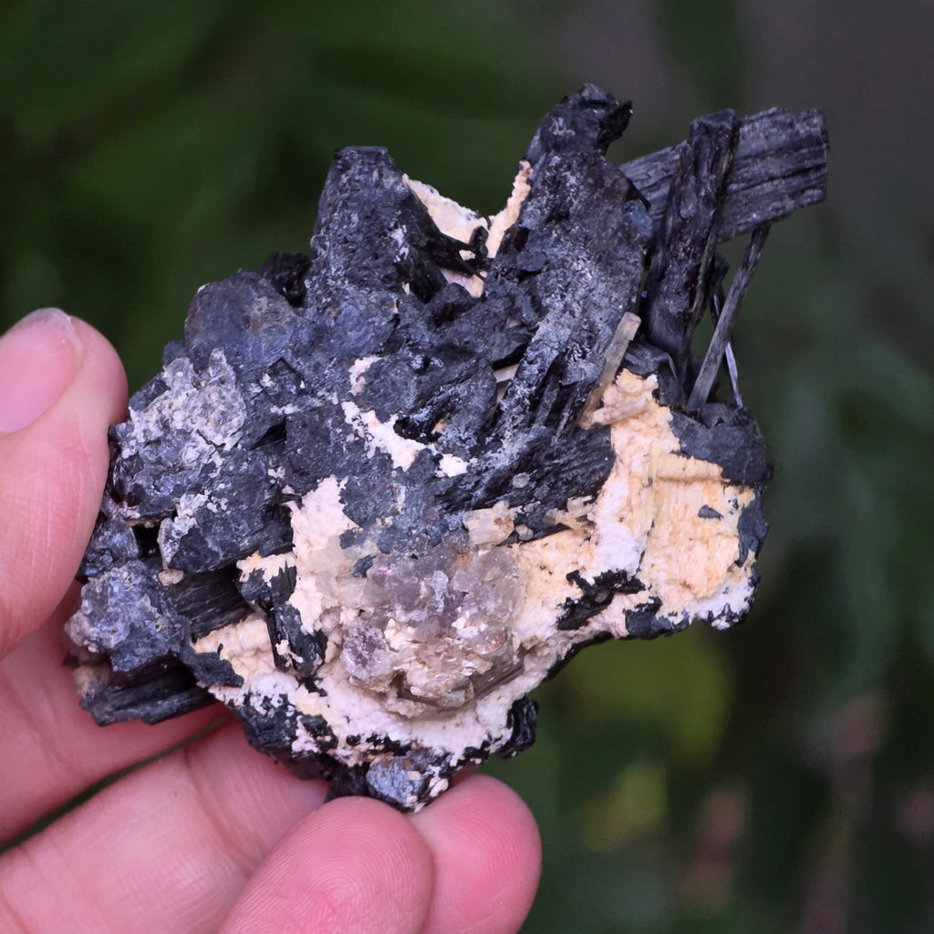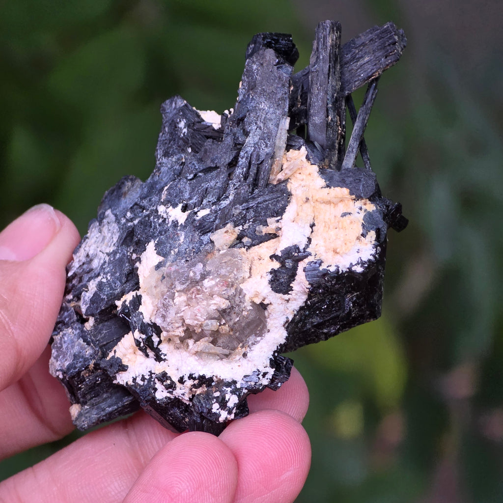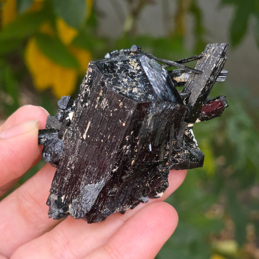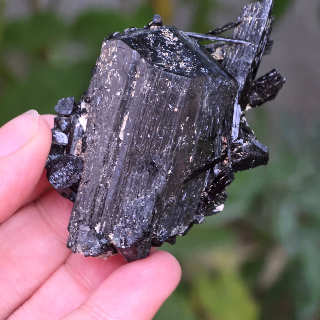 Black Turmalin, auch als Schorl bekannt, besteht aus einer komplexen Mischung aus Borosilica und befindet sich in einer Vielzahl von kristallinen Formen. Es ist ein sehr hartes Mineral und hat einen großen Widerstand gegen Kratzer und Verschleiß.