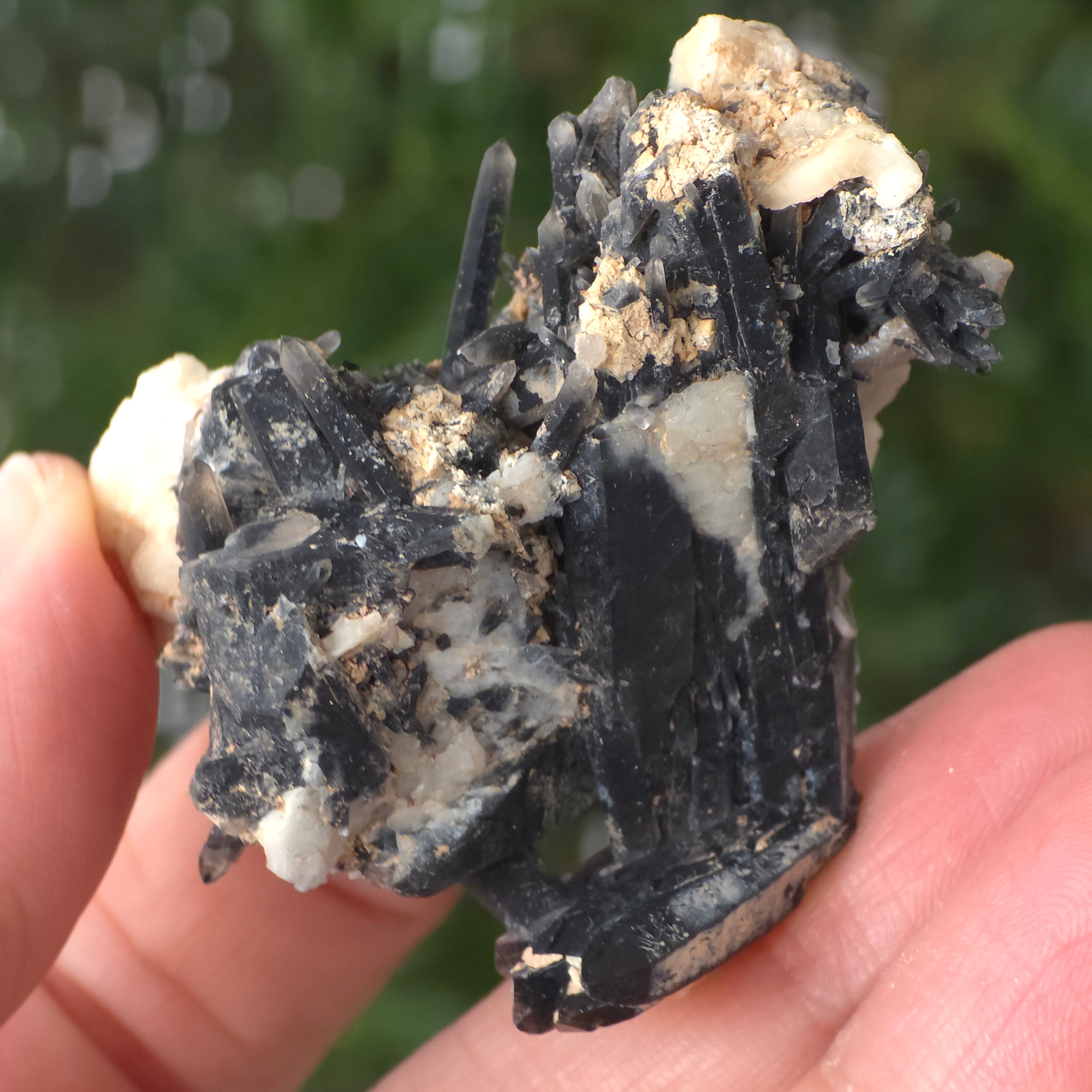 Beschreibung - Cluster egirin mini quarz rauchig/schwarz Zomba m12