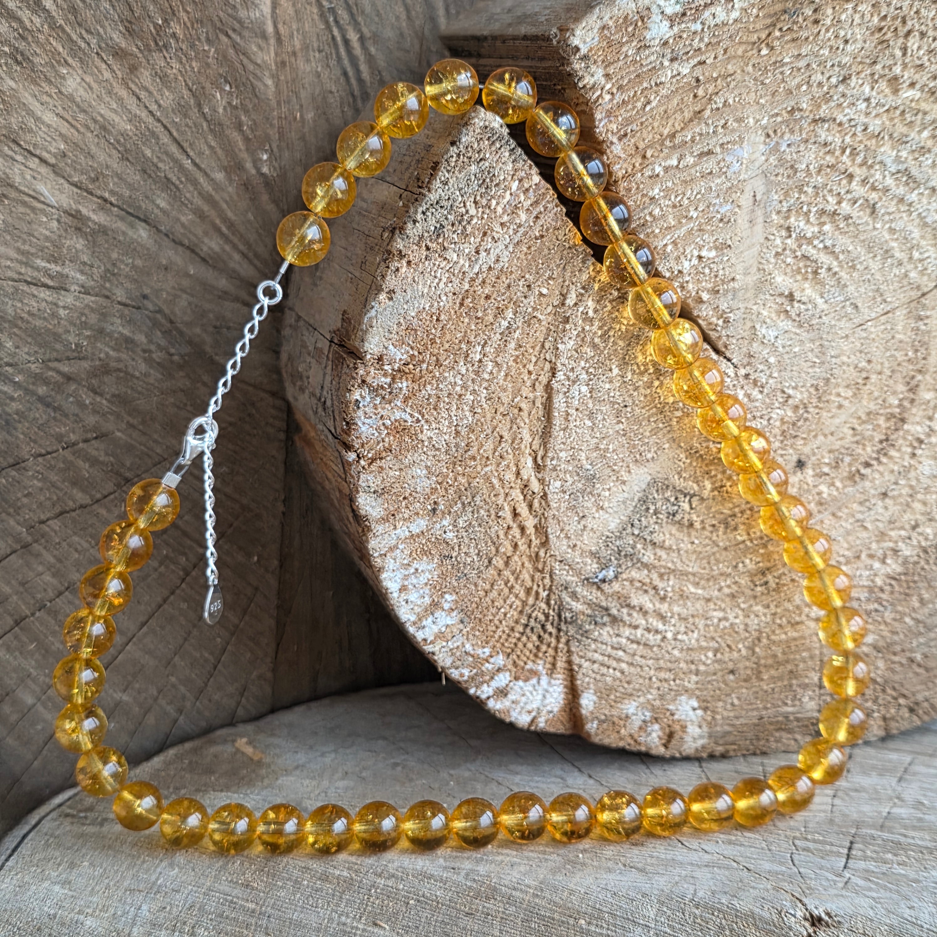 Un colier care captează lumina — pur și simplu. Realizat din citrin natural acest colier radiază căldură, bucurie și claritate. Nu doar o bijuterie, ci o amintire constantă a optimismului și a forței interioare.