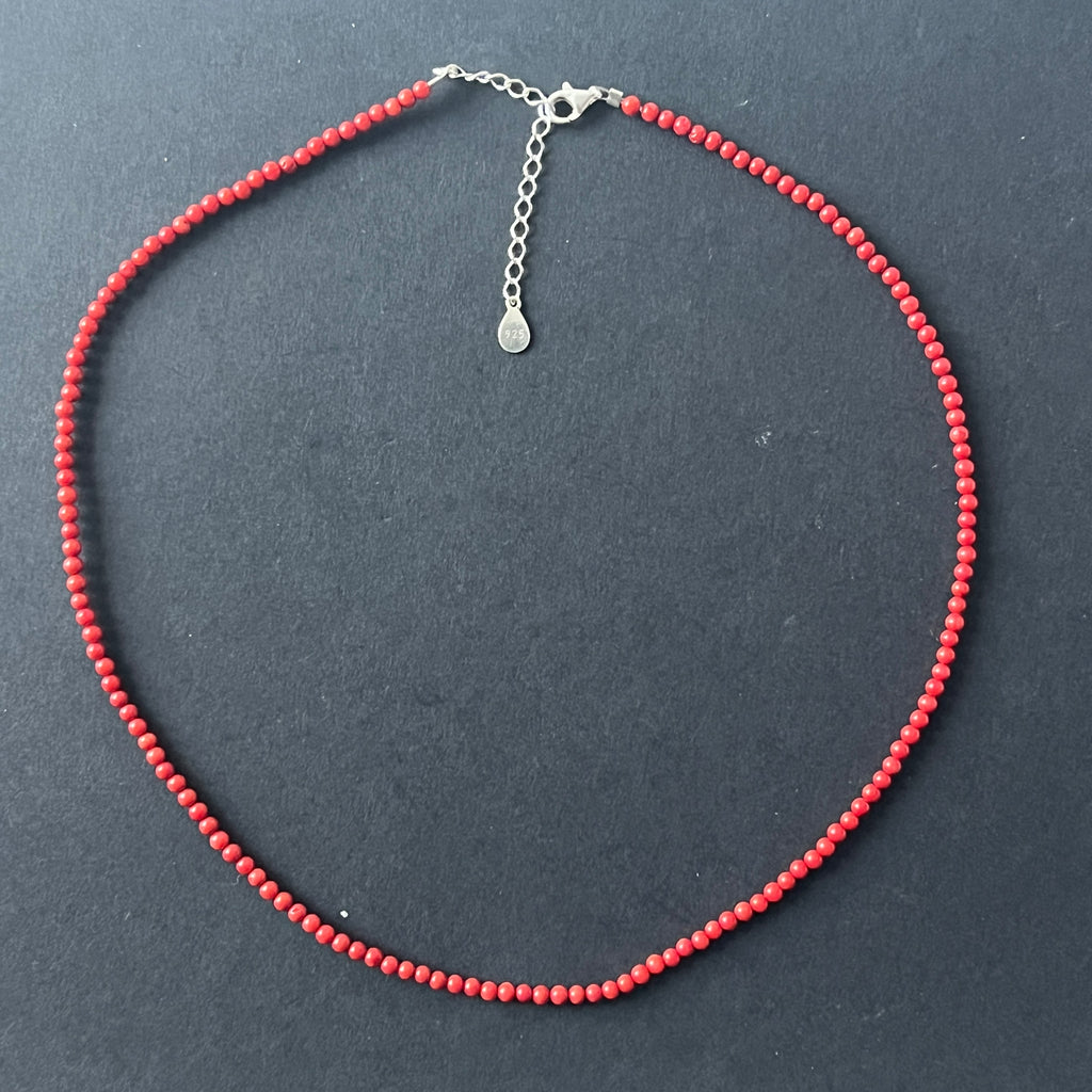 Materiale: jasp roșu natural șlefuit, mărgele sferice de 3 mm, argint 925