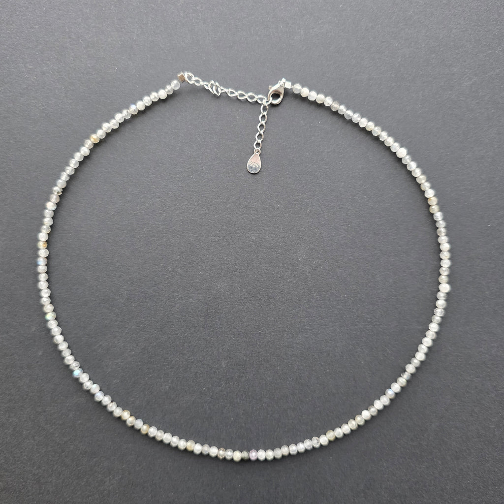 O bijuterie ce îmbină finețea și misterul – Colierul Labradorit AURA #131 este o explozie de lumină subtilă și eleganță discretă. Mărgelele fațetate de doar 3 mm reflectă lumina în multiple unghiuri, creând un joc hipnotic de reflexe albastre, aurii și verzi, asemenea unei aurore boreale surprinse în piatră.