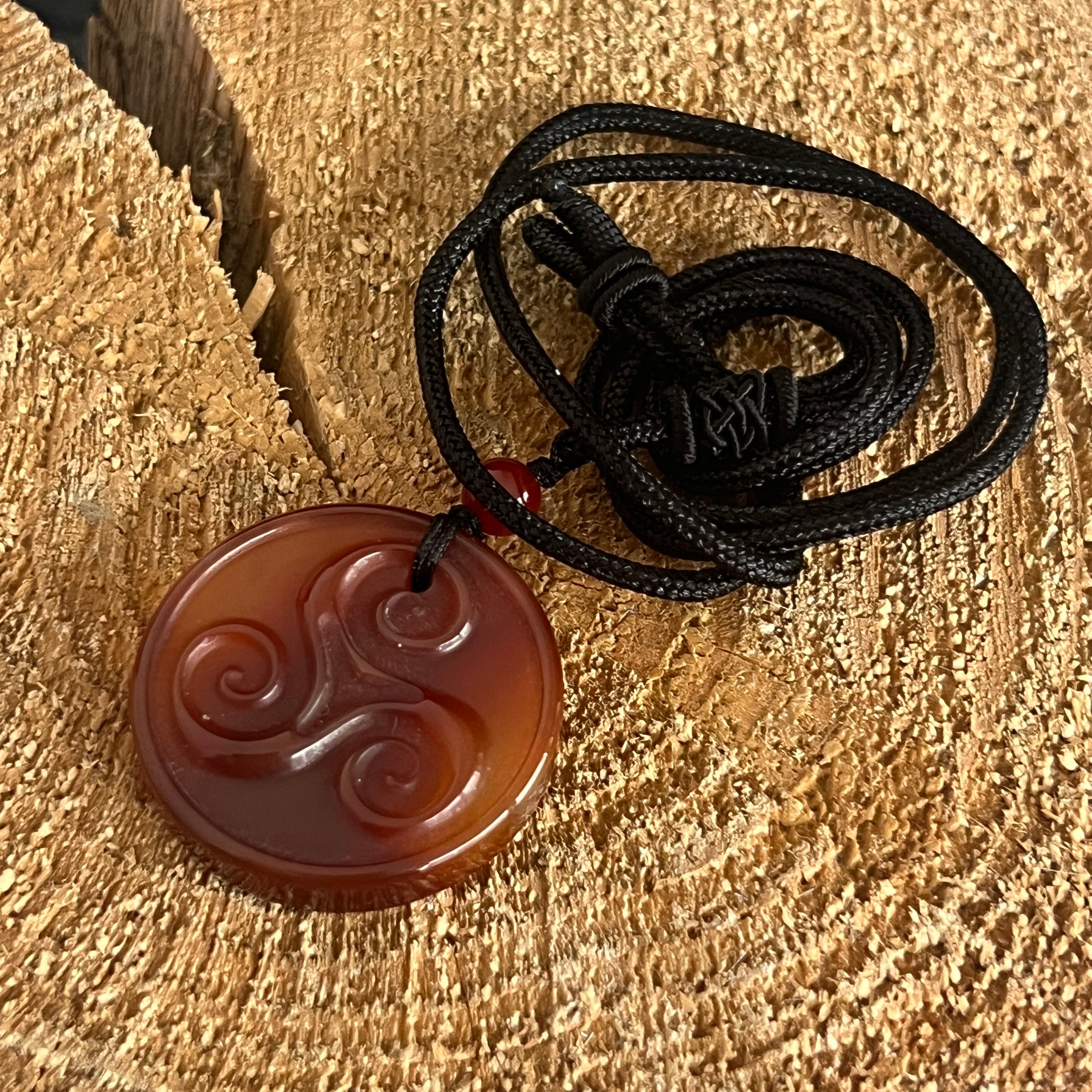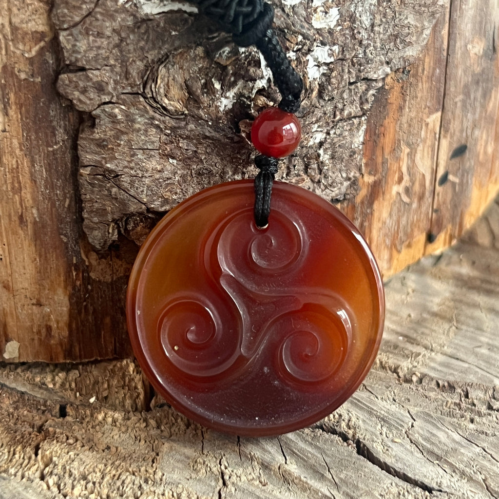 Colier pandantiv carneol | Spirală celtică Triskelion