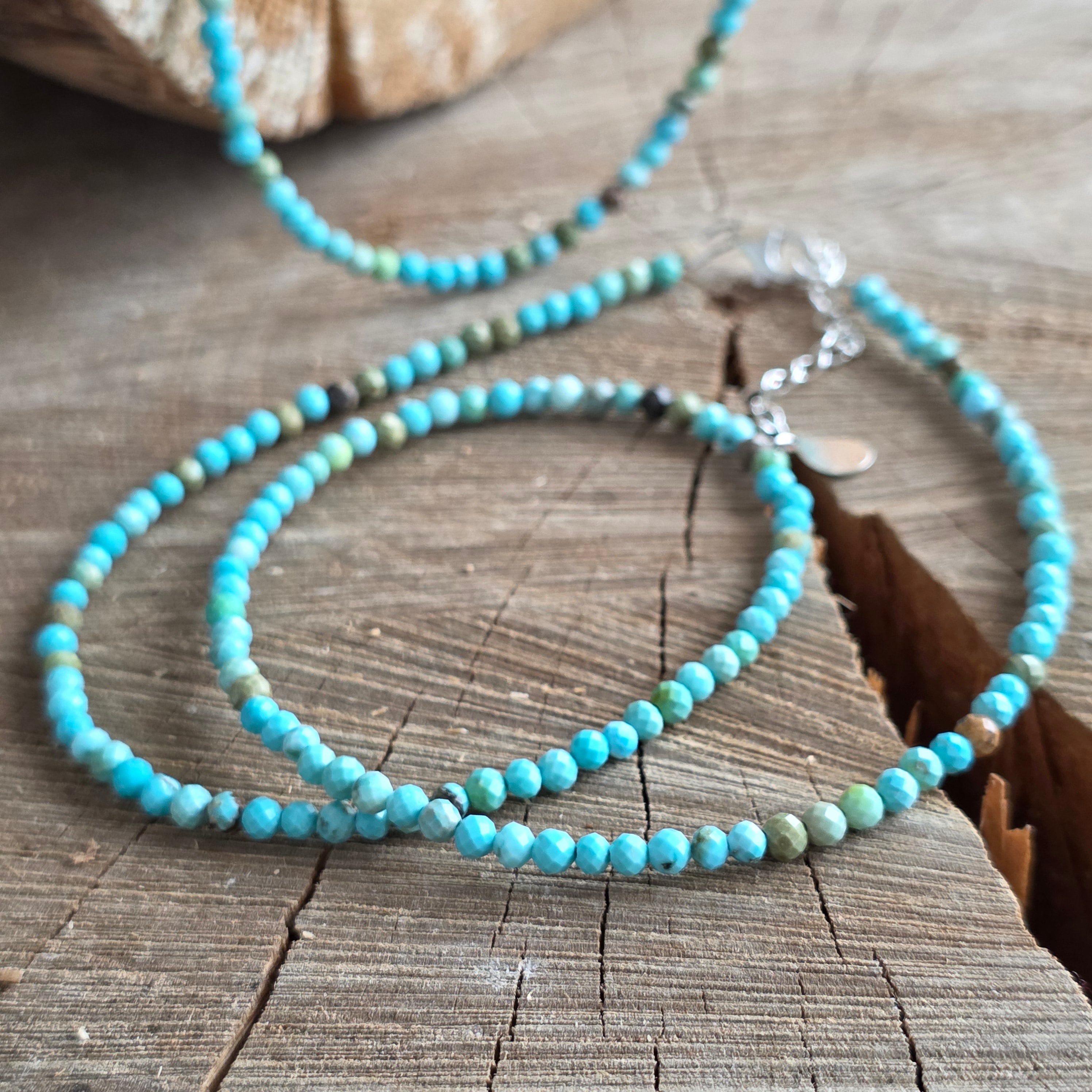 Materialien: Turqunit Natural (3 mm facettierte Kugeln), 925 Silber