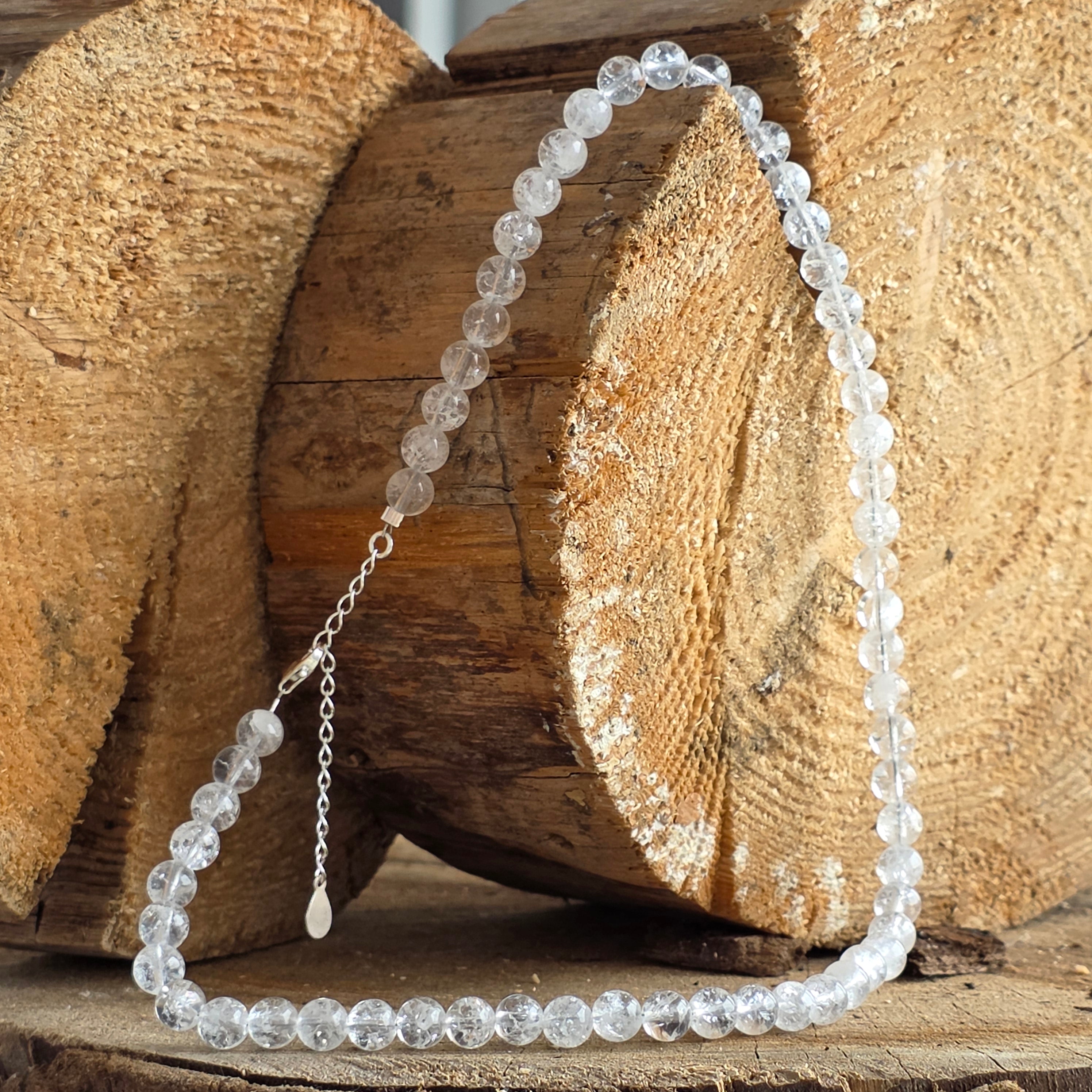Materialien: natürlicher farbloser 'cracked' (gecrashter) Quarz 6 mm, 925er Silber