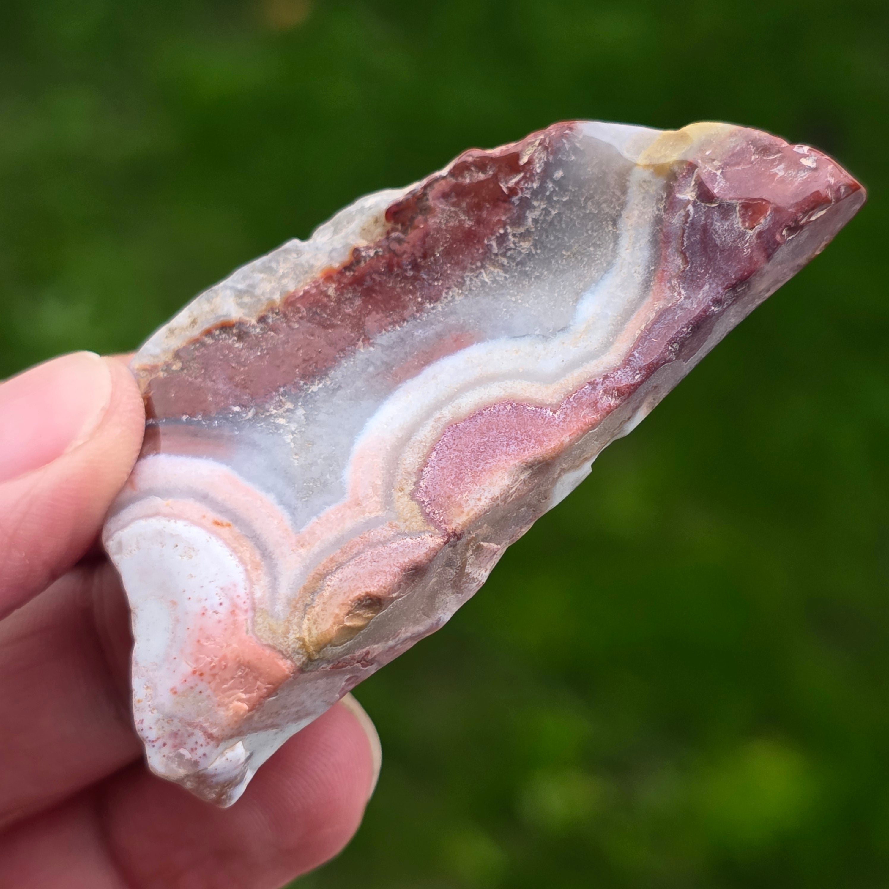 Jede Scheibe verrückten Achat ist ein einzigartiges Kunstwerk und fängt die wilde Essenz der mexikanischen Regionen ein, in denen sie entsteht: starker Kontrast, organische Texturen und eine fröhliche, verspielte Energie, die der inneren Belebung dient.