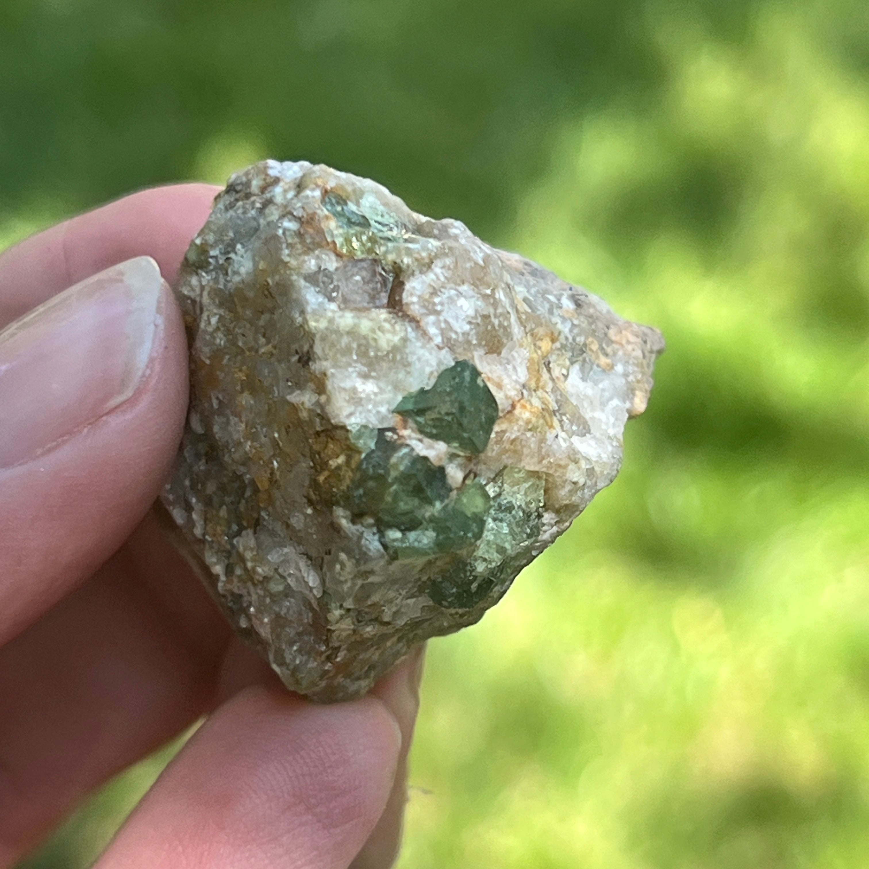 Beschreibung - Demantoid grünes Granat auf der Matrix - Bruttoprobe aus Erongo, Namibia | Modell 2