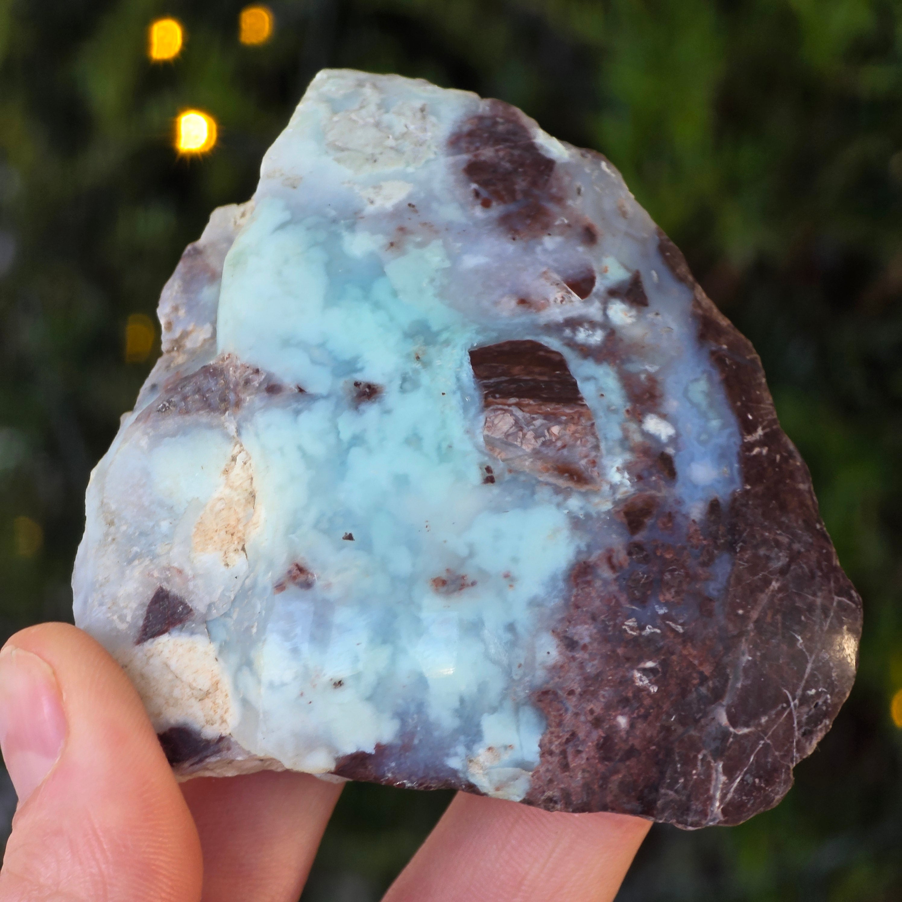Es ist eine natürliche, unveränderte Form eines Chromifer -Chalcedon - ein schwieriges Mineral, das ausschließlich aus Simbabwe gefunden und für seine lebendige Farbe geschätzt wird, die nicht von Nickel (wie in Crisopraz), sondern aus dem Chrom, das tief in seine kristalline Struktur pulsiert, stammt. In dieser speziellen Variante erzeugen blaue und grüne Einsätze ein faszinierendes chromatisches Spiel mit reibungslosen Übergängen zwischen durchscheinend und undurchsichtig, zwischen dichten und belüfteten.