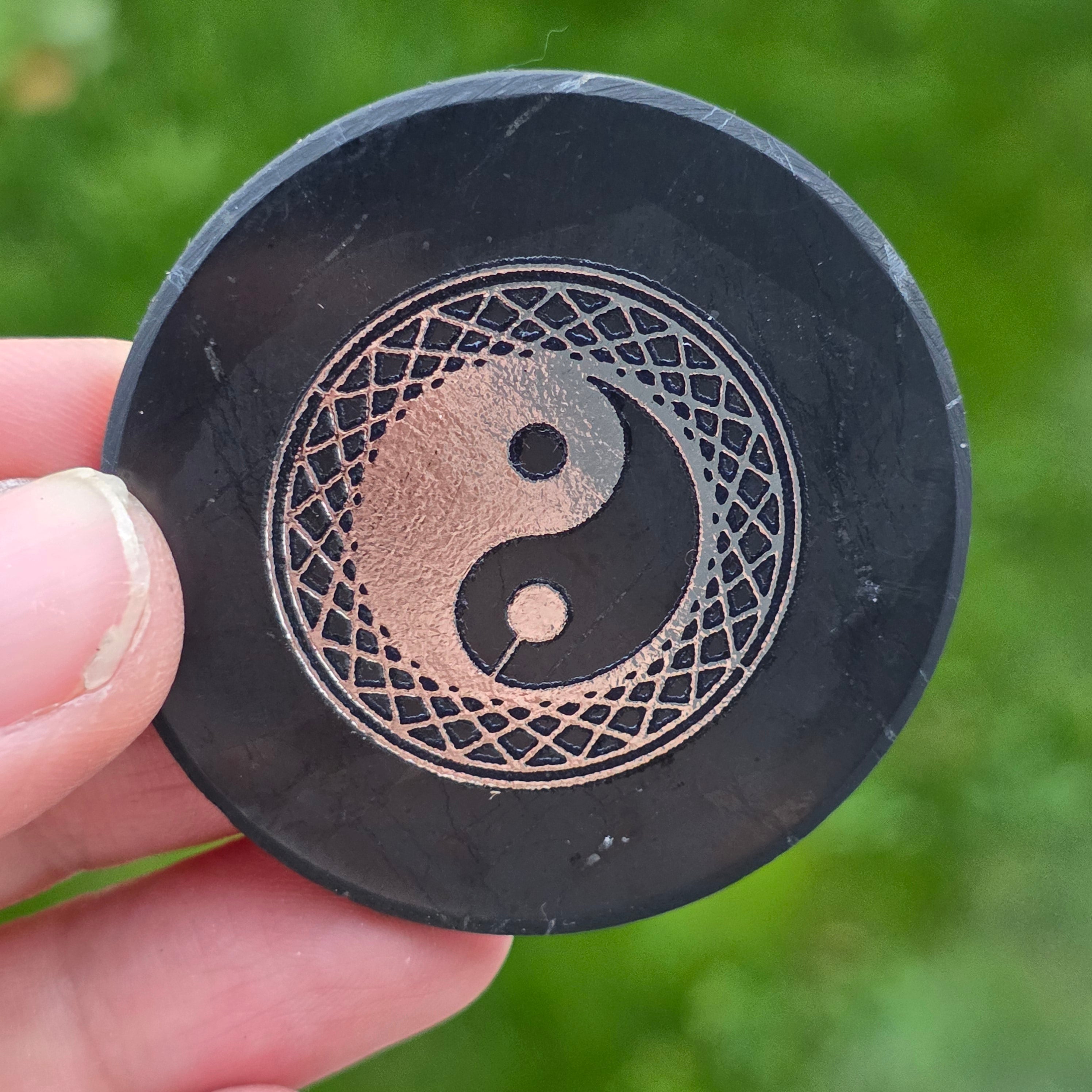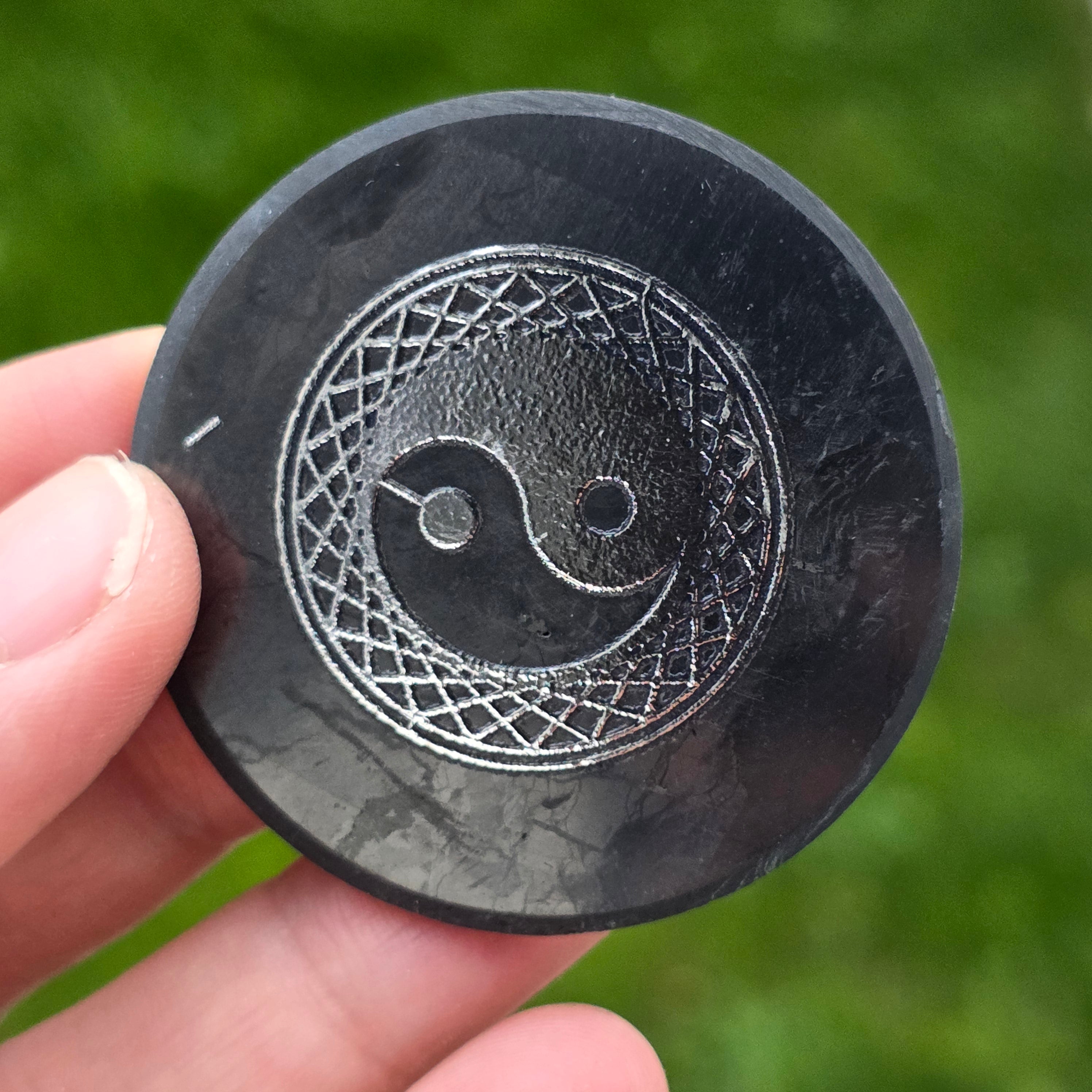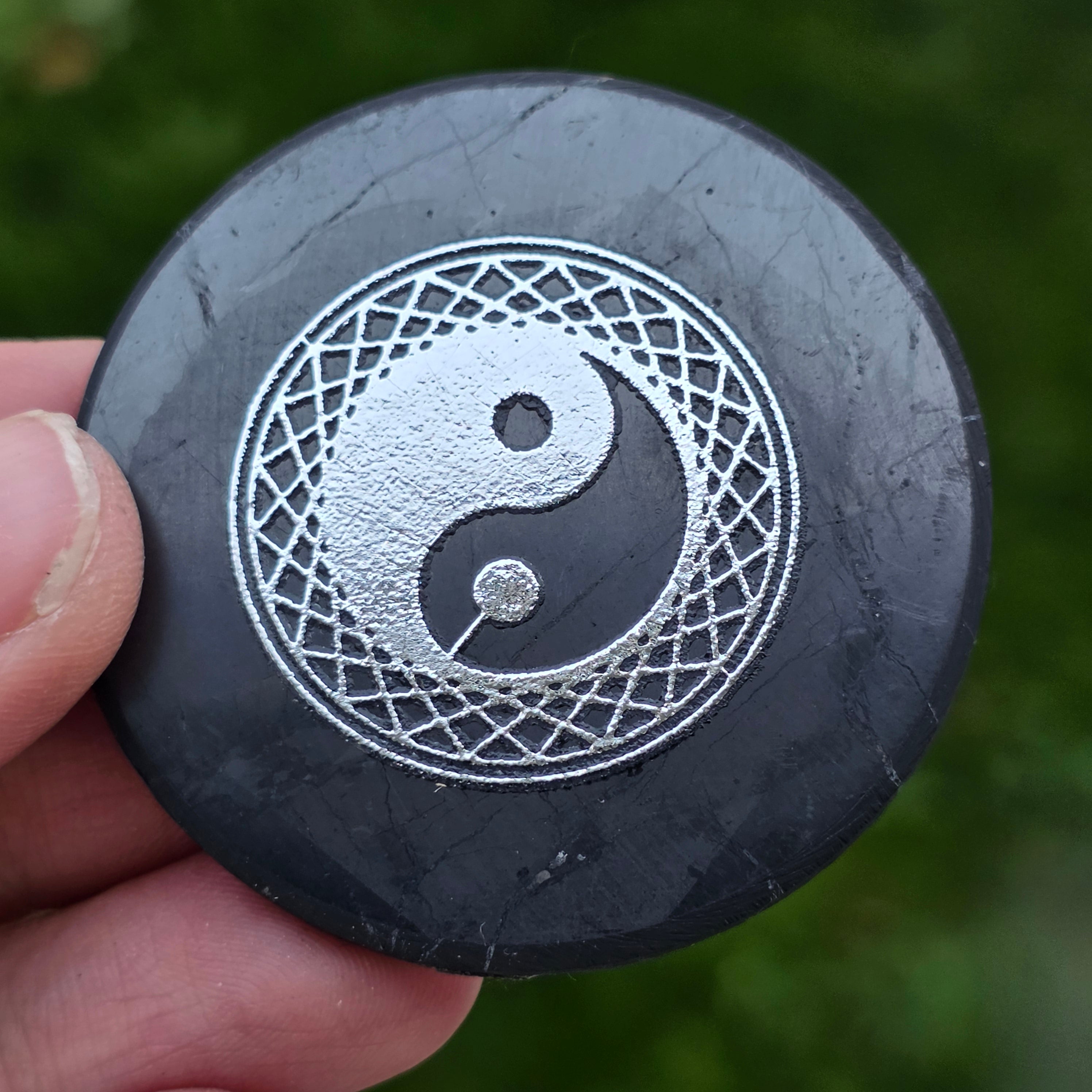 Beschreibung - Disc din Shungit adeziv Yin Yang Silver