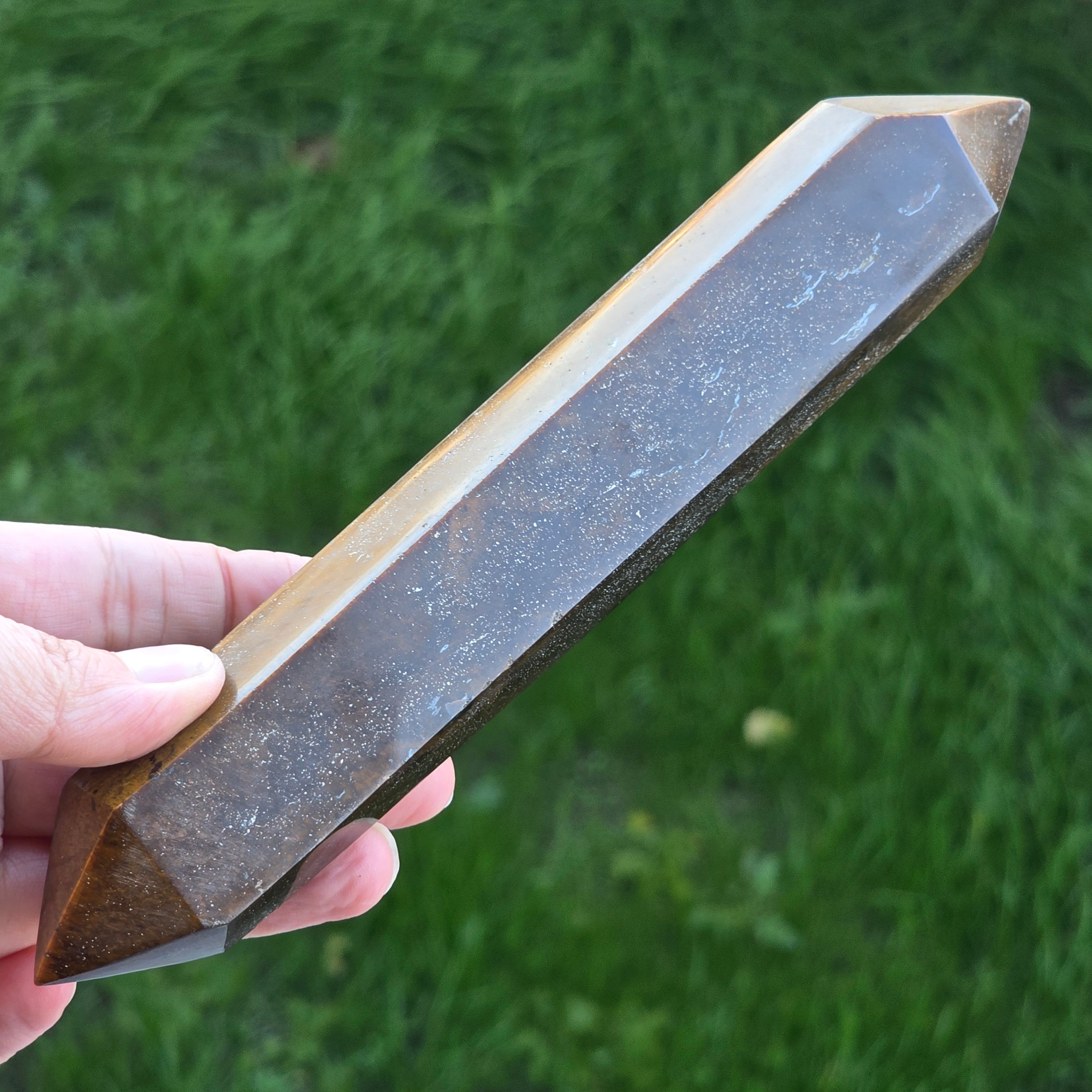 Dieser Zauberstab mit Tiger -Augenmassage ist ein einzigartiges, geschnitztes und poliertes Stück, um die konzentrierte Energie der Erde durch eine ergonomische Form zu kanalisieren, die ideal für Heilungsrituale, Energiemassage oder tiefe Entspannung ideal ist.