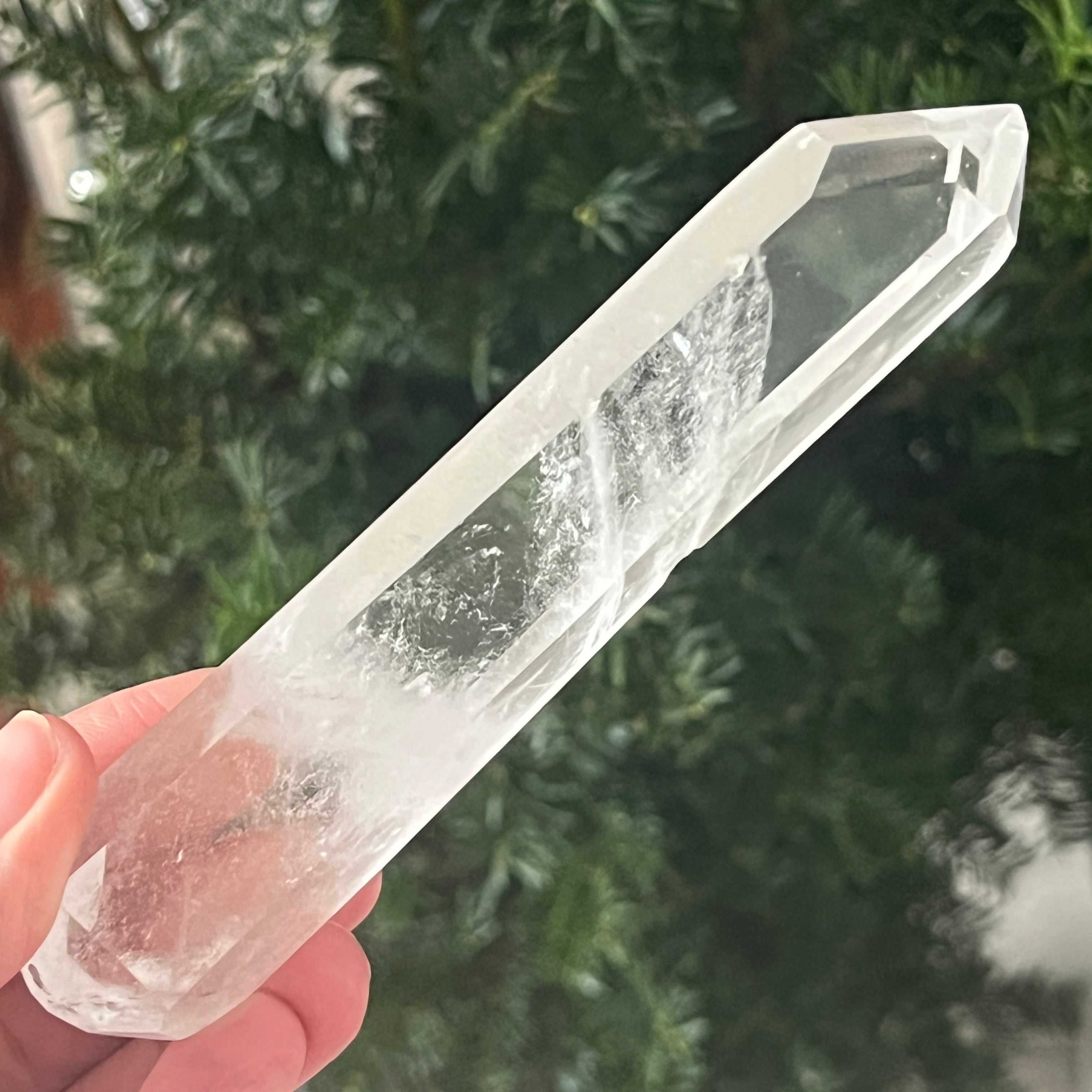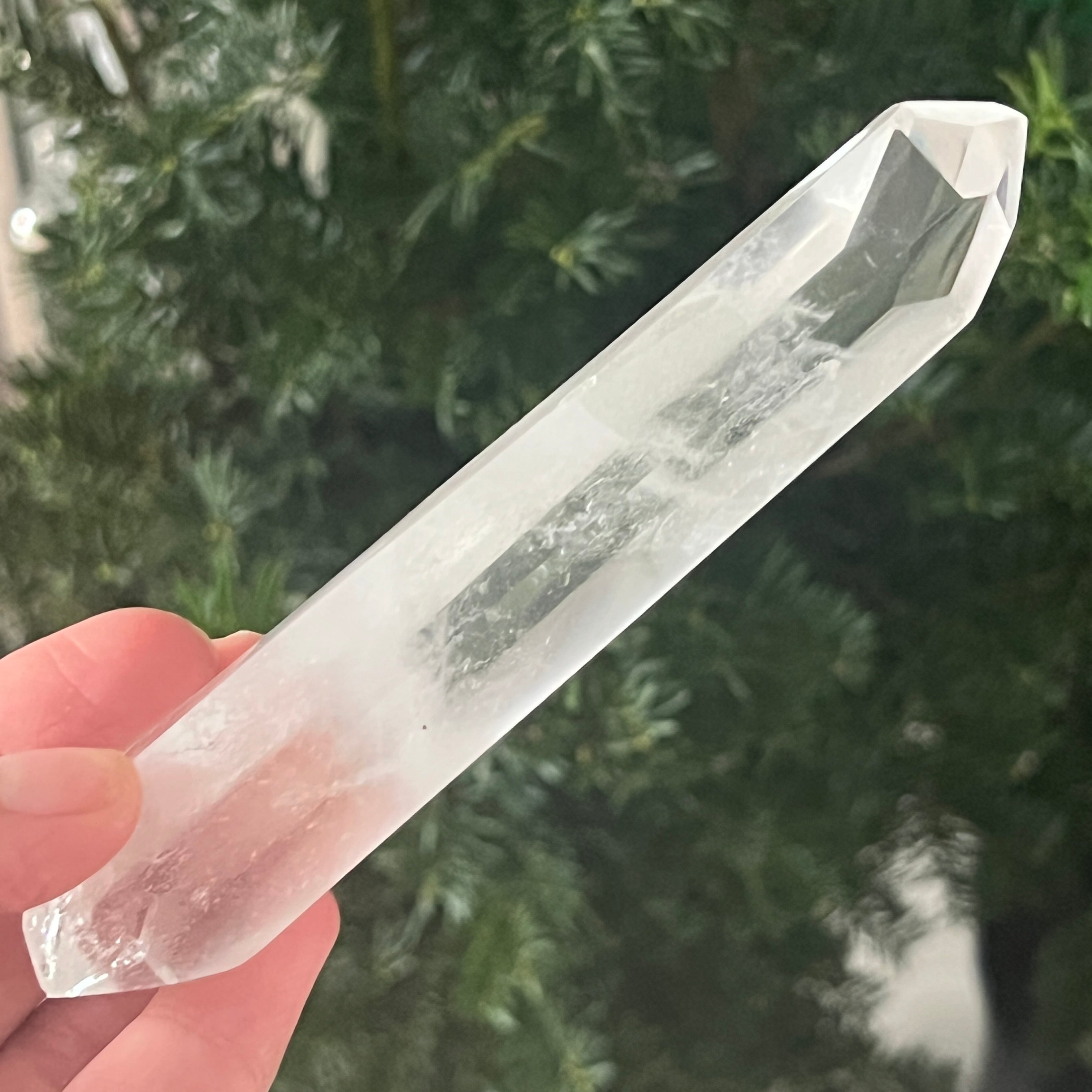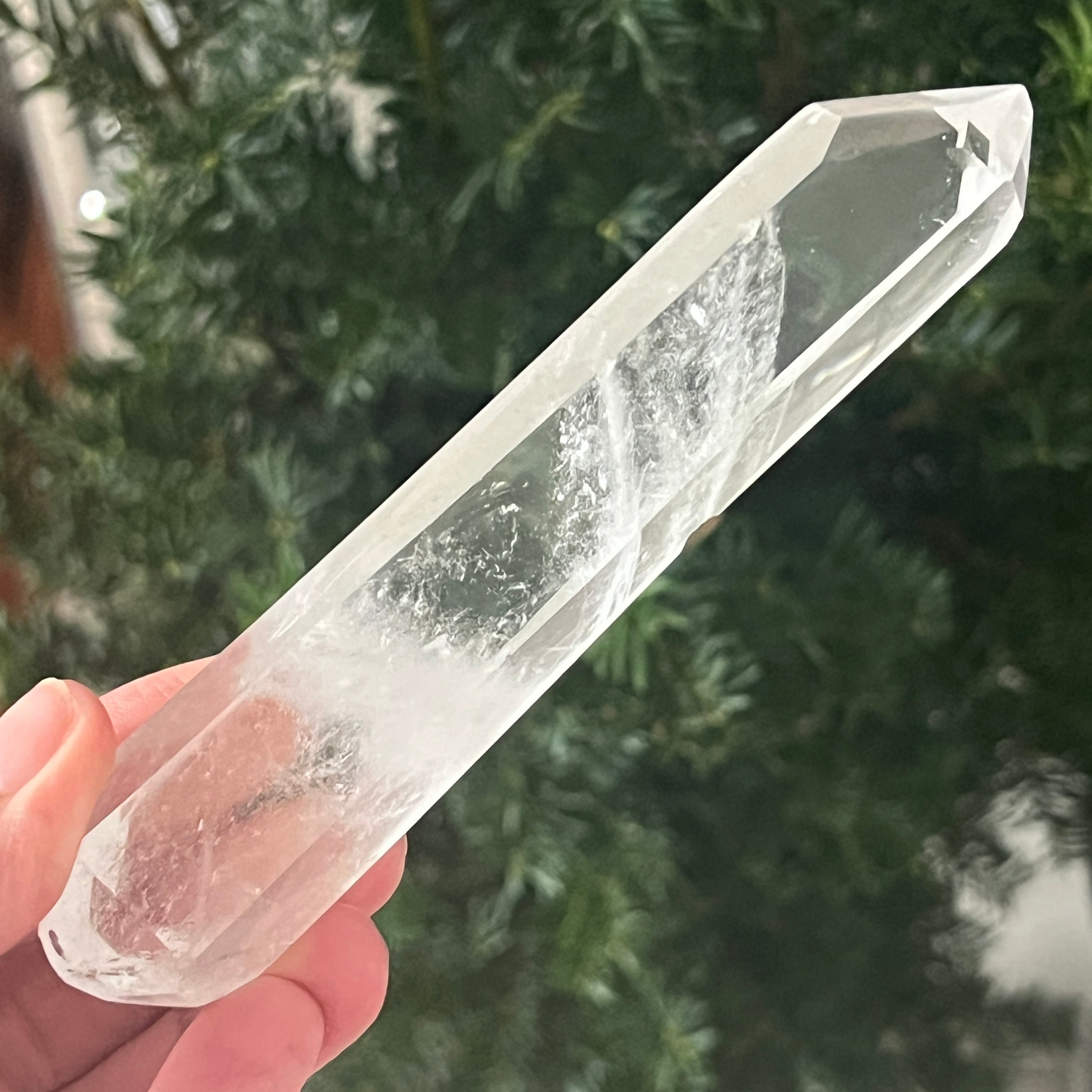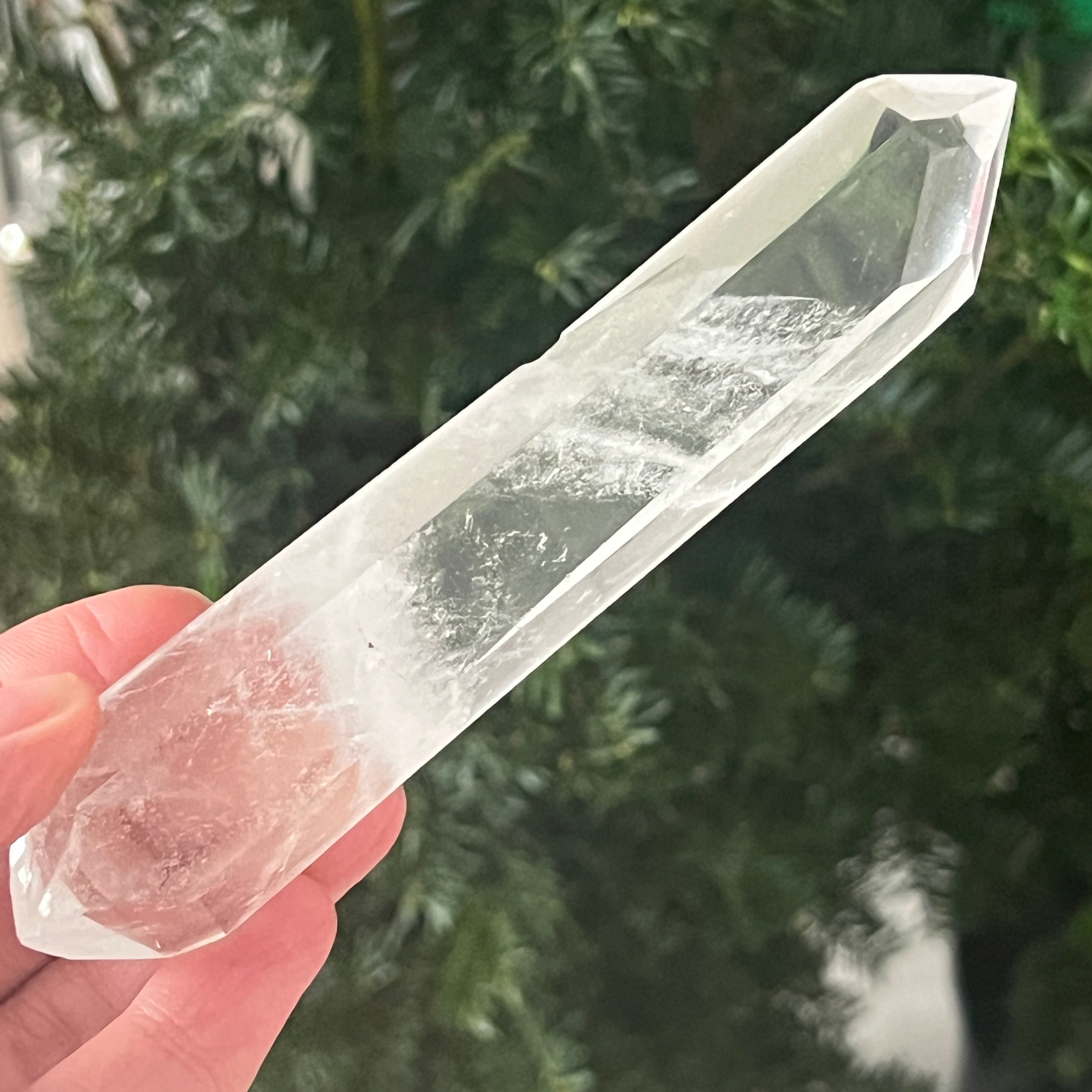 Der farblose Quarz wird besonders für die Reinigungseigenschaft geschätzt, in der er Meditationen oder Räume, in denen sie sich befindet, mit sich bringt.