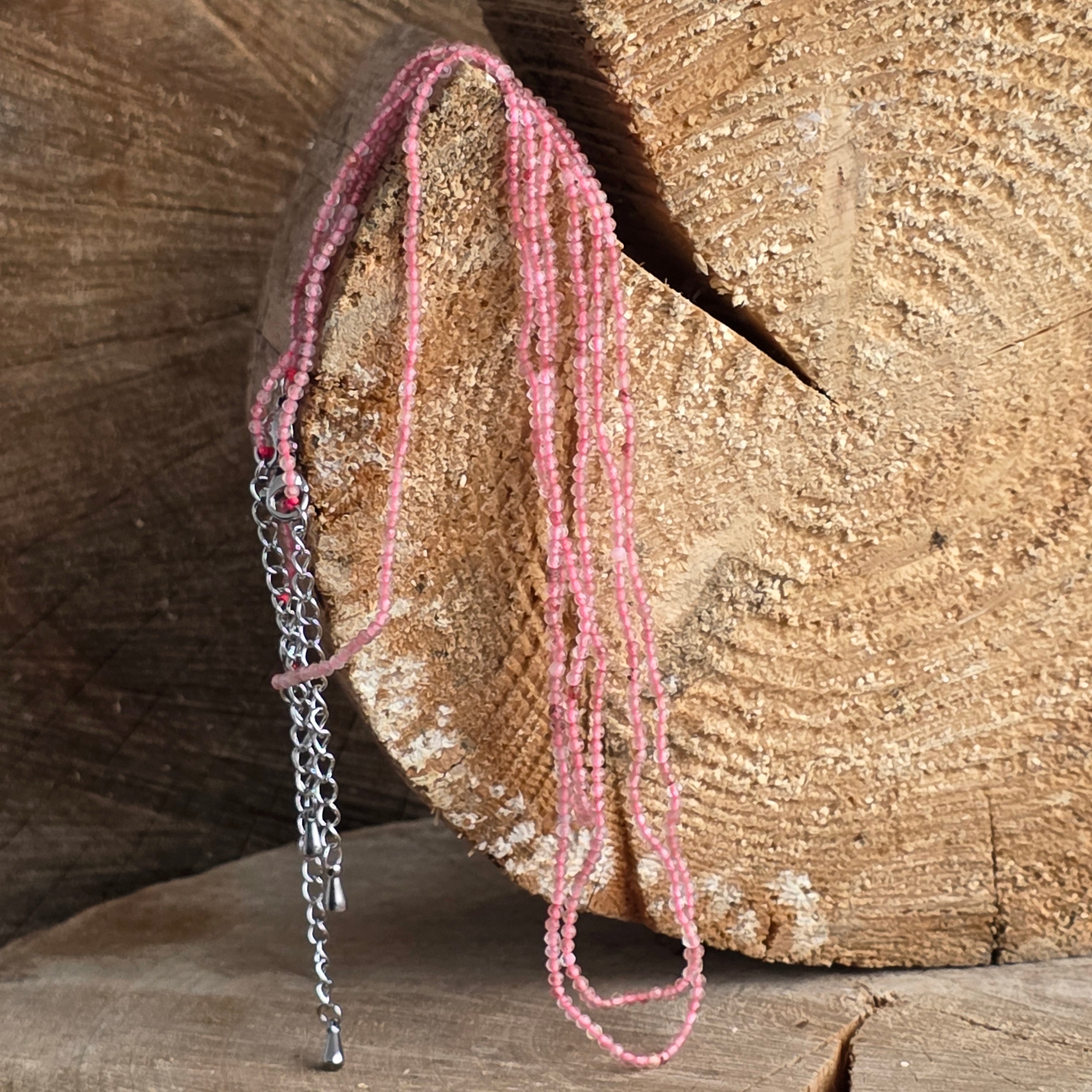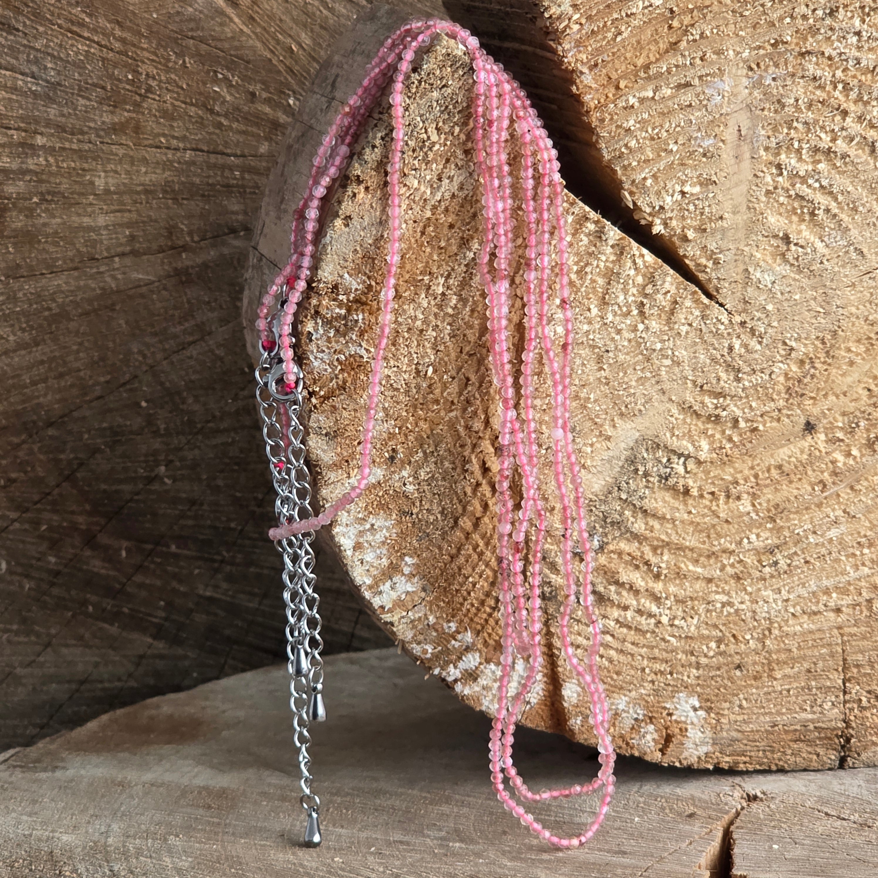 Erdbeerquarz Halskette Kugeln 2-3 mm, Größe: 38 + 5 cm (Verlängerungskette)