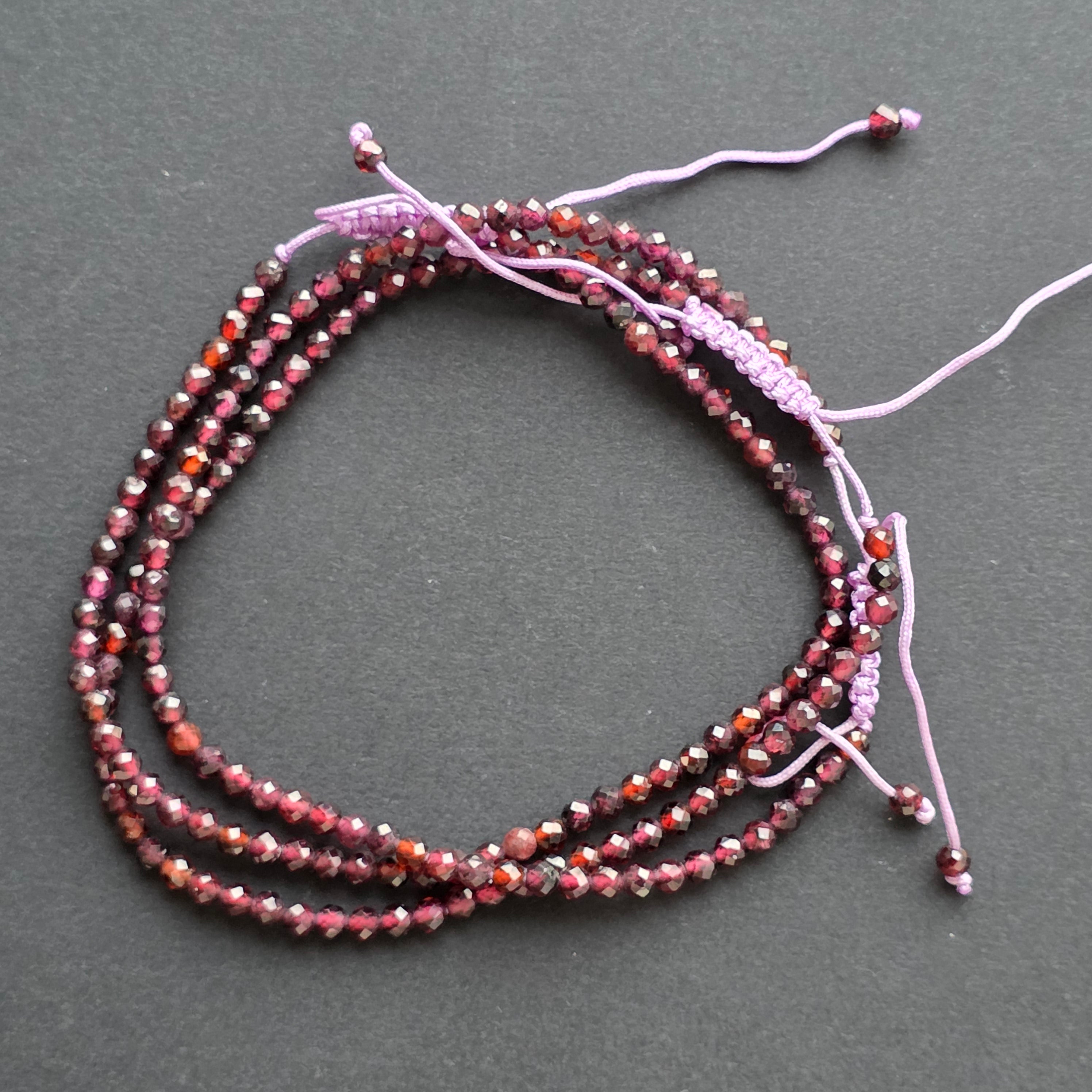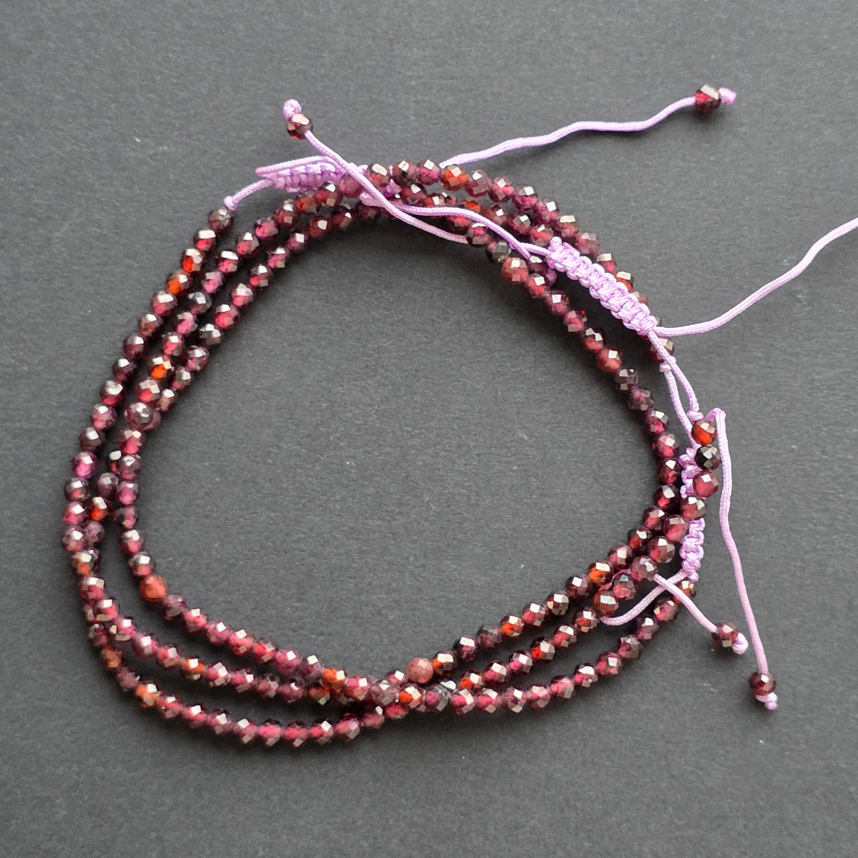 Facettiertes Granat-Armband 3 mm mit verstellbarem Band