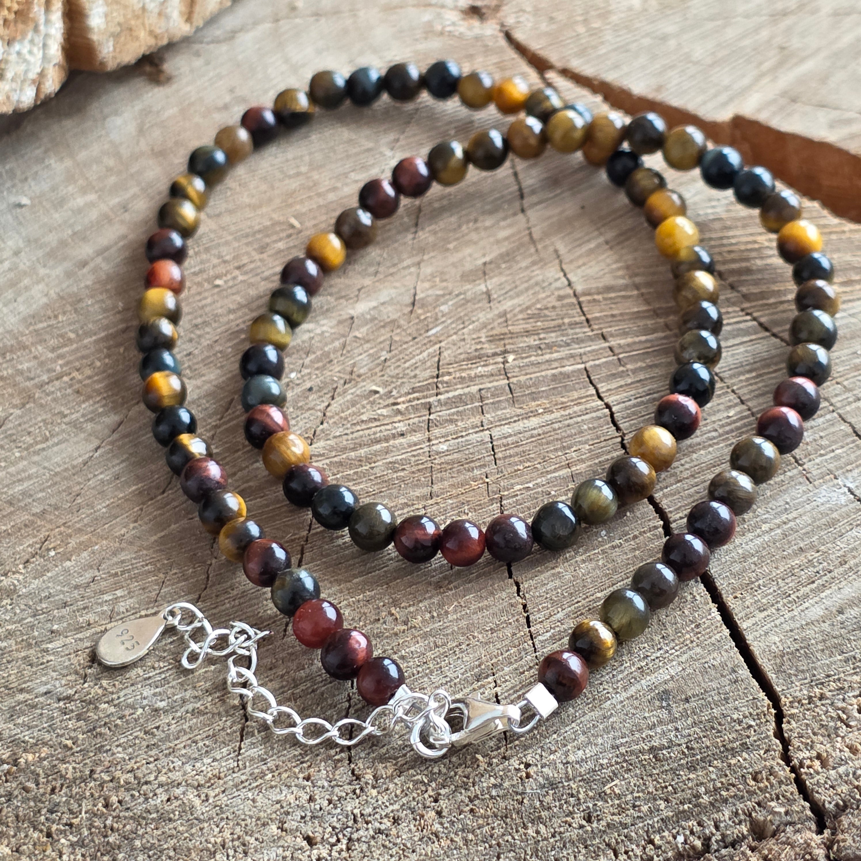 Materialien: Natural Tiger Eyes Mix (4 mm), Silber 925
