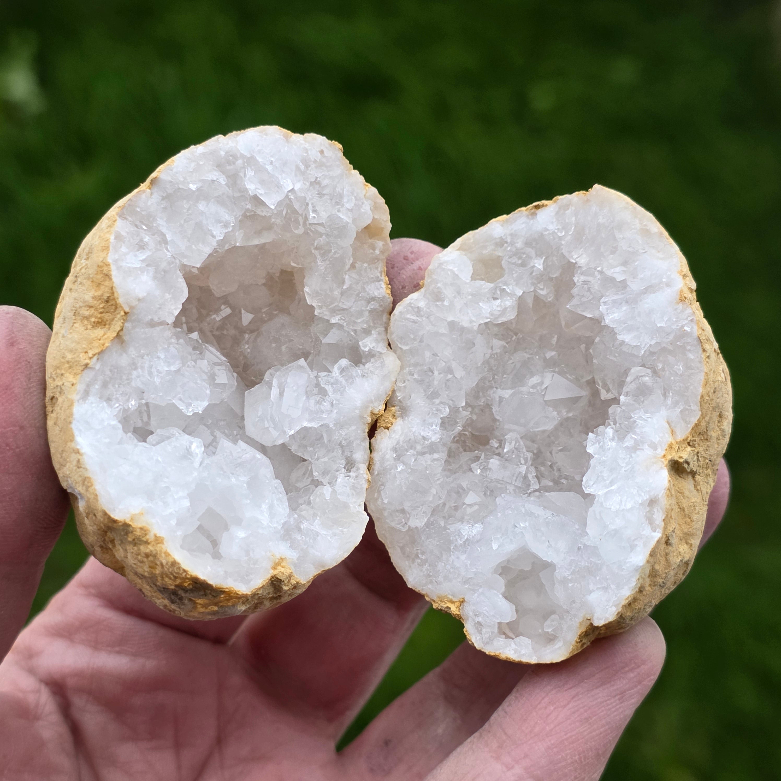 Gesteinsquarzgeoden sind bei Sammlern und Liebhabern gleichermaßen beliebt, da sie beim Schneiden oder Zerbrechen eine verborgene Schönheit offenbaren und die glänzenden Kristalle im Inneren freilegen. Diese Geoden können in der Größe variieren, von kleinen Formationen, die sich ideal für Dekorationen oder Sammlungen eignen, bis hin zu größeren Exemplaren, die zu echten Tafelaufsätzen in der Innendekoration werden.