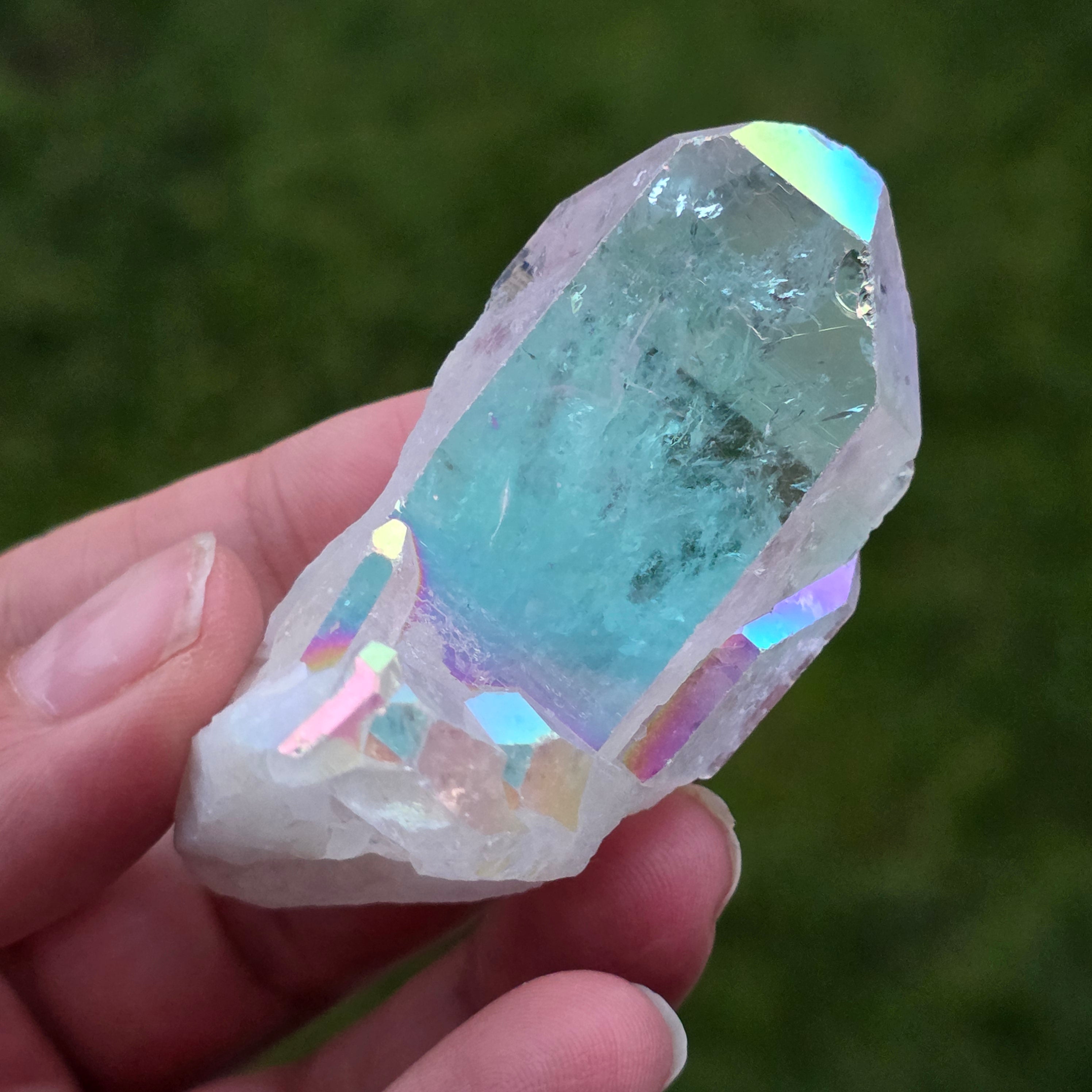 Farbloser Quarz ist für seine metaphysischen Eigenschaften bekannt und gilt als Kristall, der Zentrierung, Ausgeglichenheit und Klarheit bringt und dabei hilft, positive Energien zu verstärken.