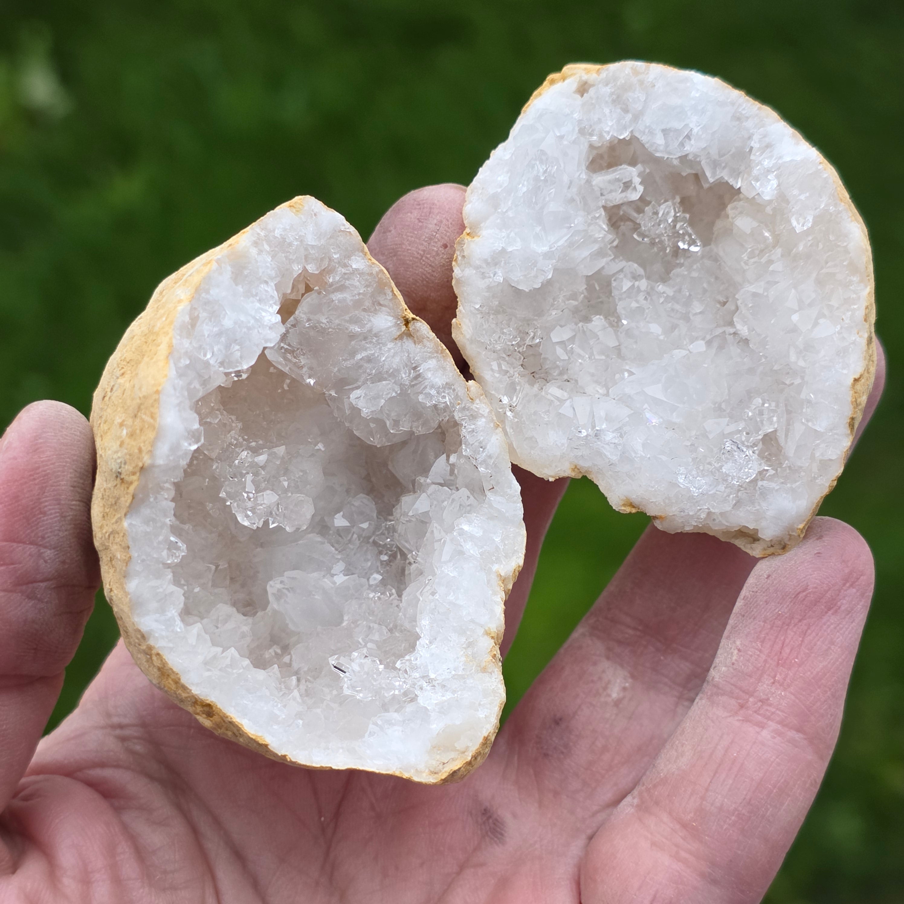 Bergkristall-Geoden sind bei Sammlern und Enthusiasten sehr beliebt, da sie eine verborgene Schönheit enthüllen, wenn sie geschnitten oder aufgebrochen werden, sodass die glänzenden Kristalle im Inneren sichtbar werden. Diese Geoden können in der Größe variieren, von kleinen Formationen, die ideal für Dekorationen oder Sammlungen sind, bis hin zu größeren Exemplaren, die zu wahren Mittelpunktstücken in der Inneneinrichtung werden.