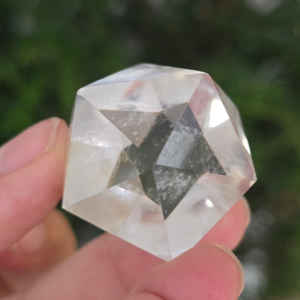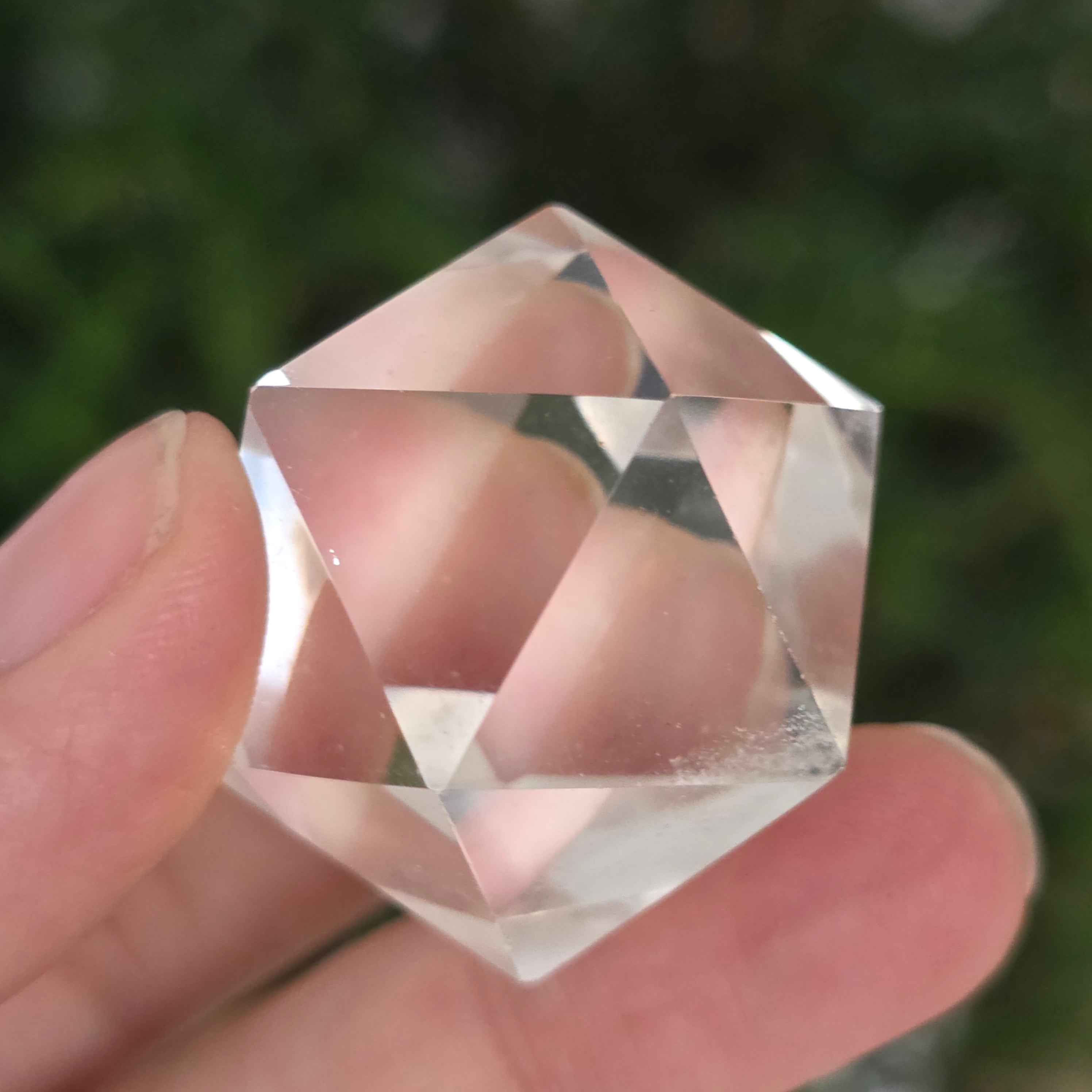 Hergestellt aus Bergkristall – dem Stein der Klarheit und Energieverstärkung – bringt dieser Ikosaeder Gleichgewicht, Fluidität und Offenheit für innere Transformation.