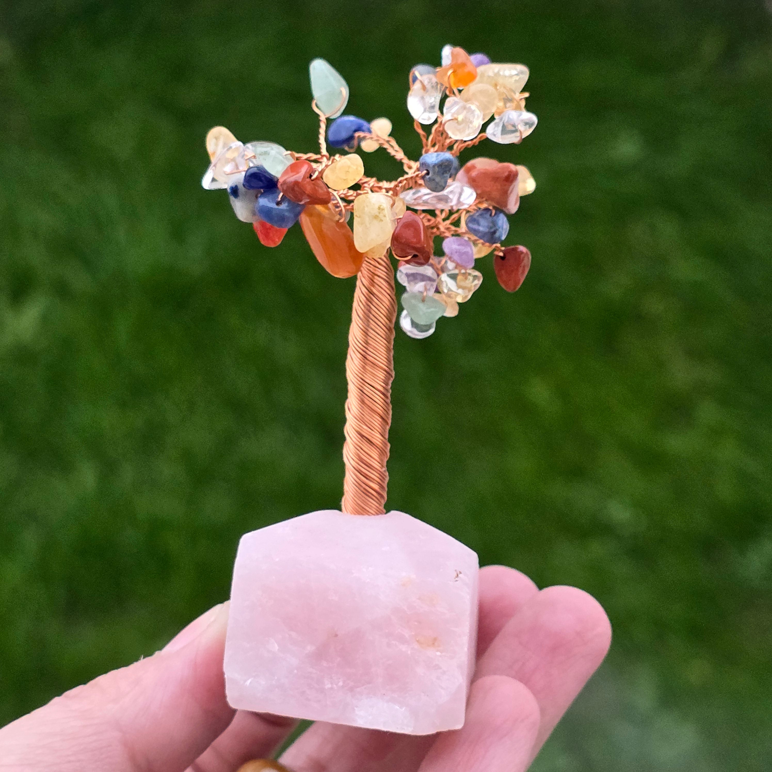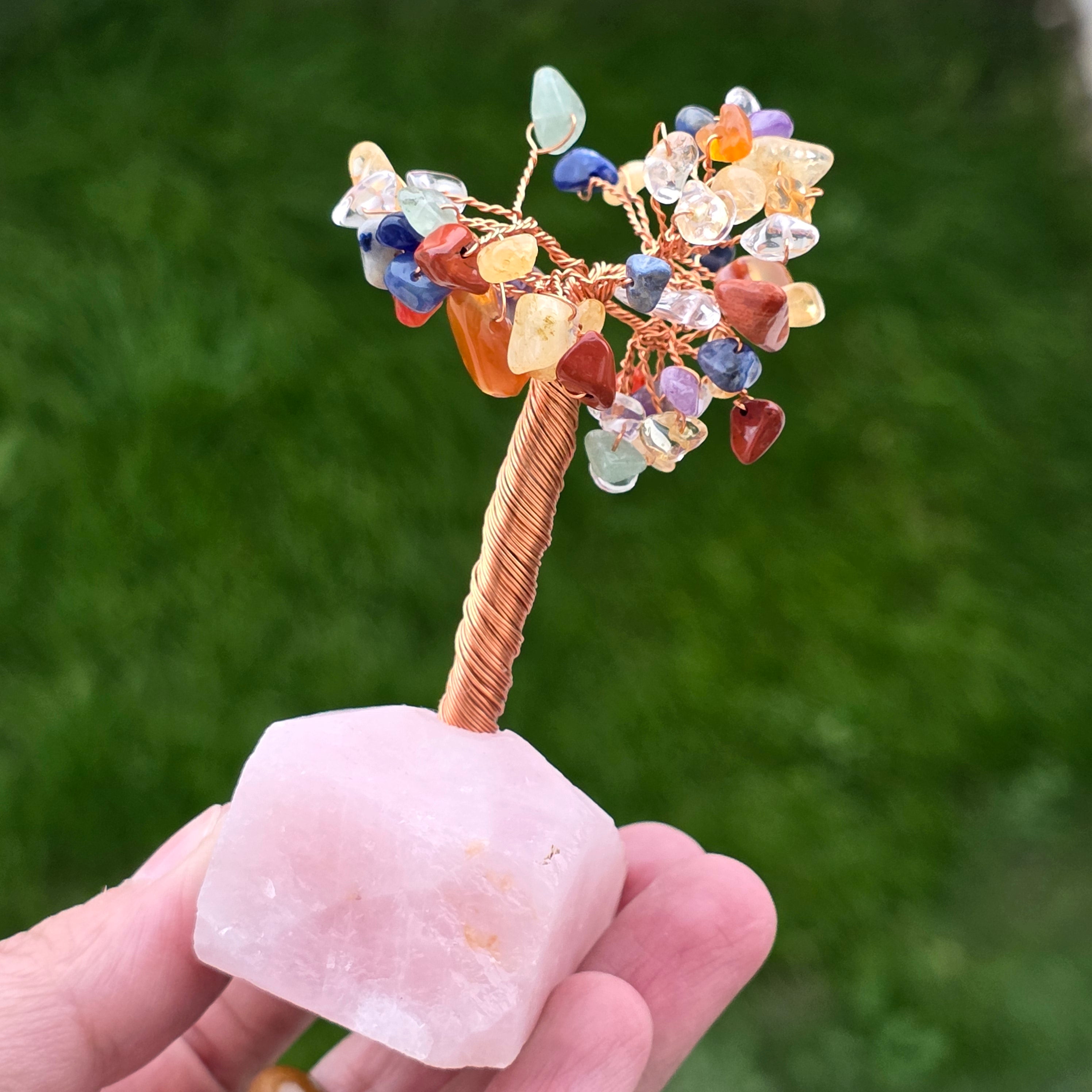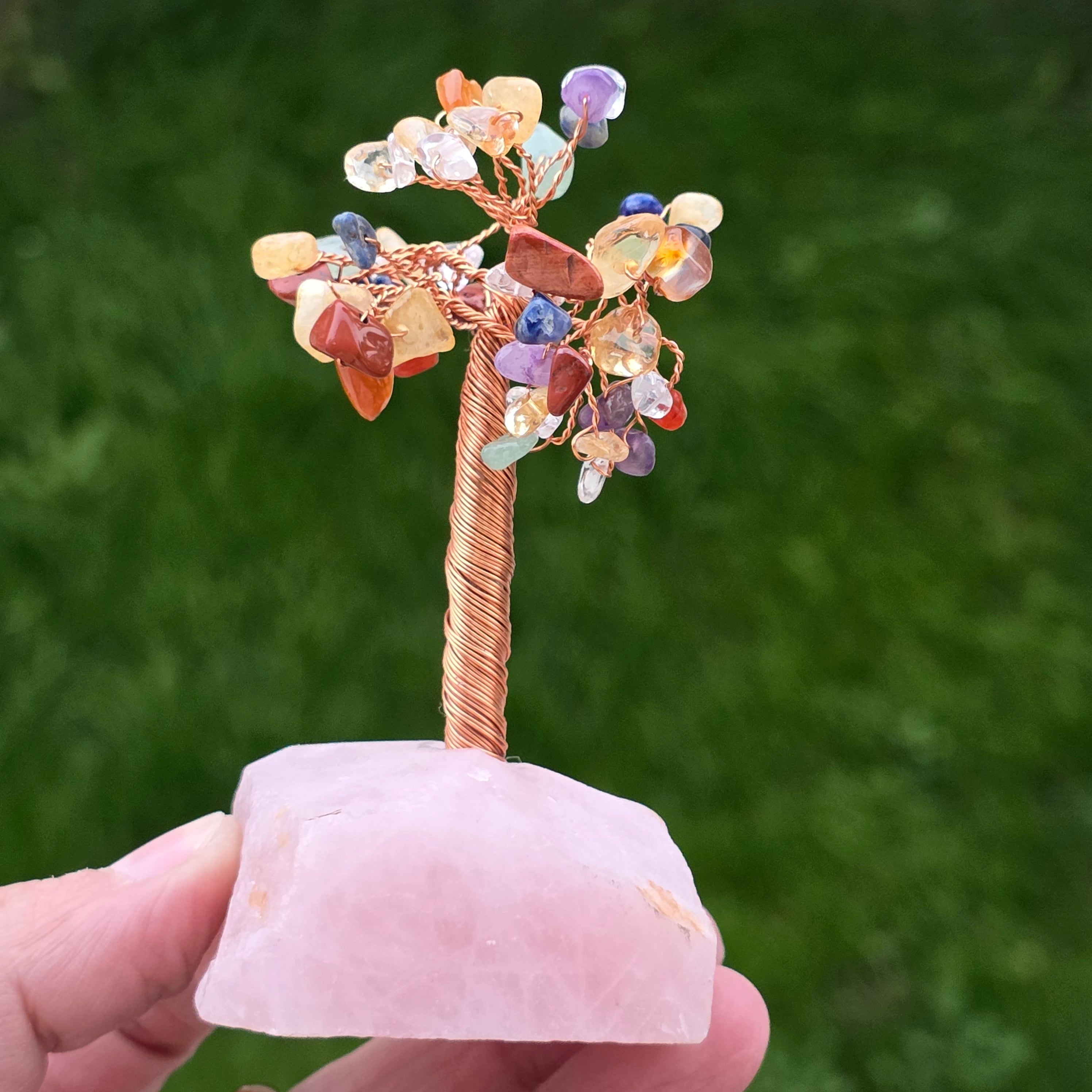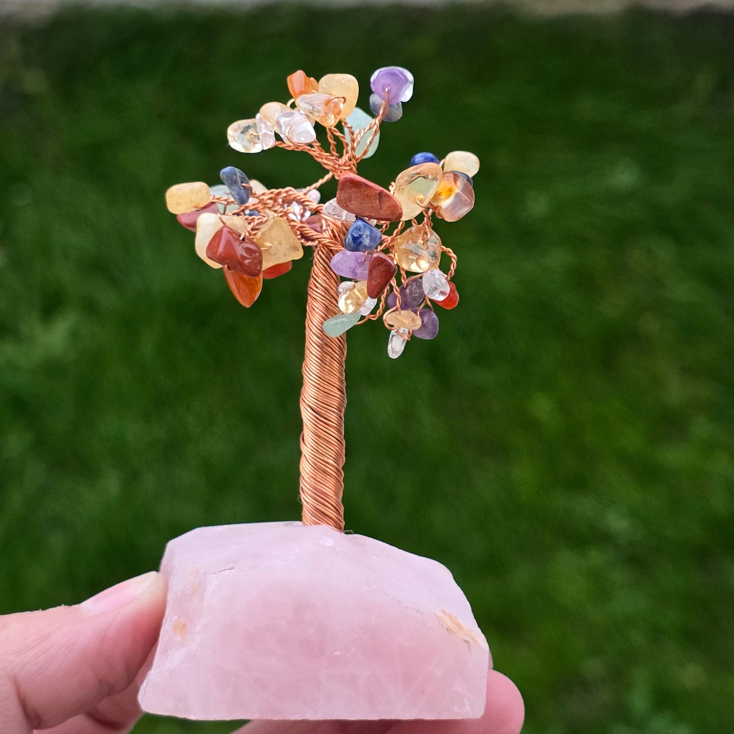 Feng-Shui-Baum mit 7 Chakren aus Rosenquarz – Größe S
