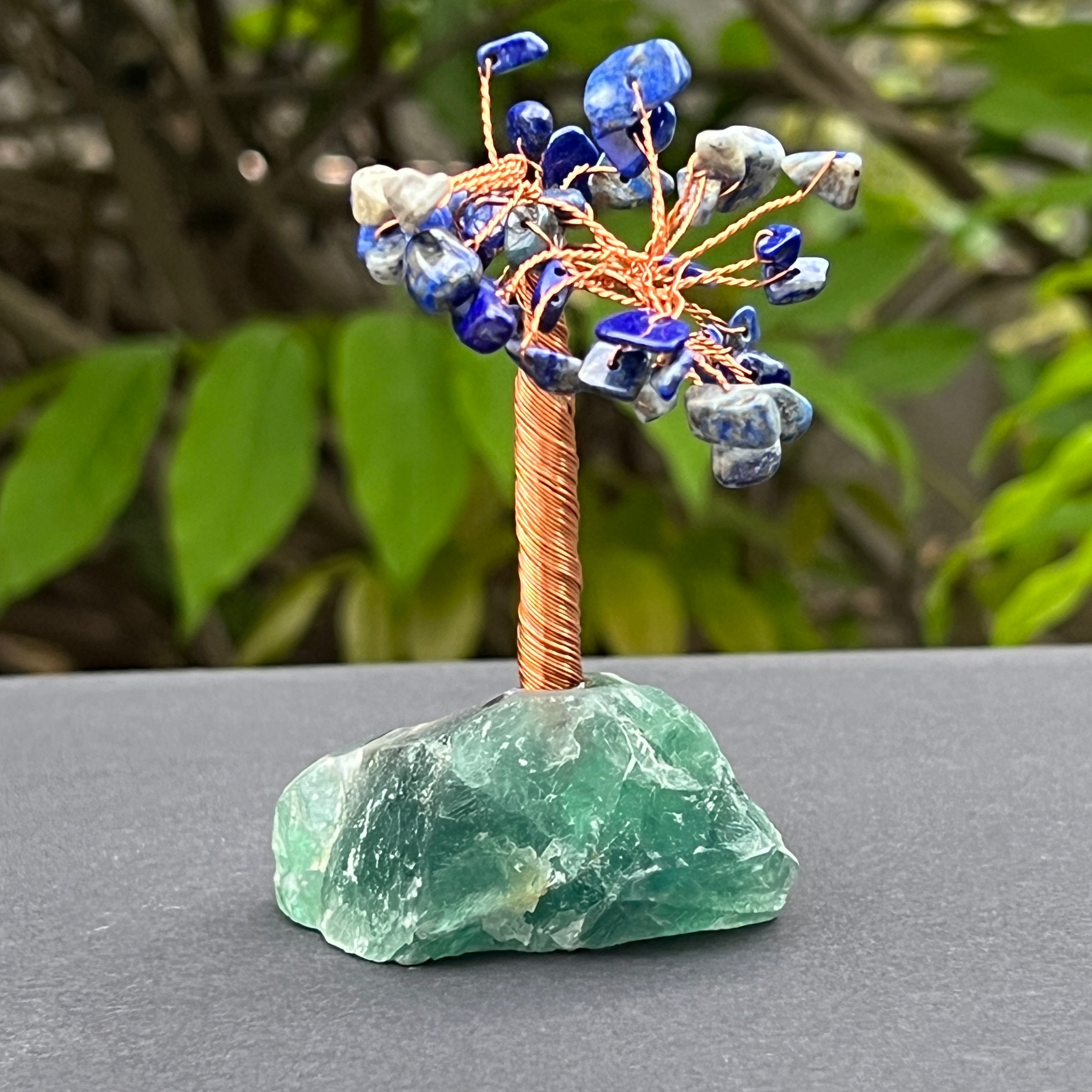 Feng Shui Tree mit Lapis Lazuli basierend auf Fluorit - Größe s