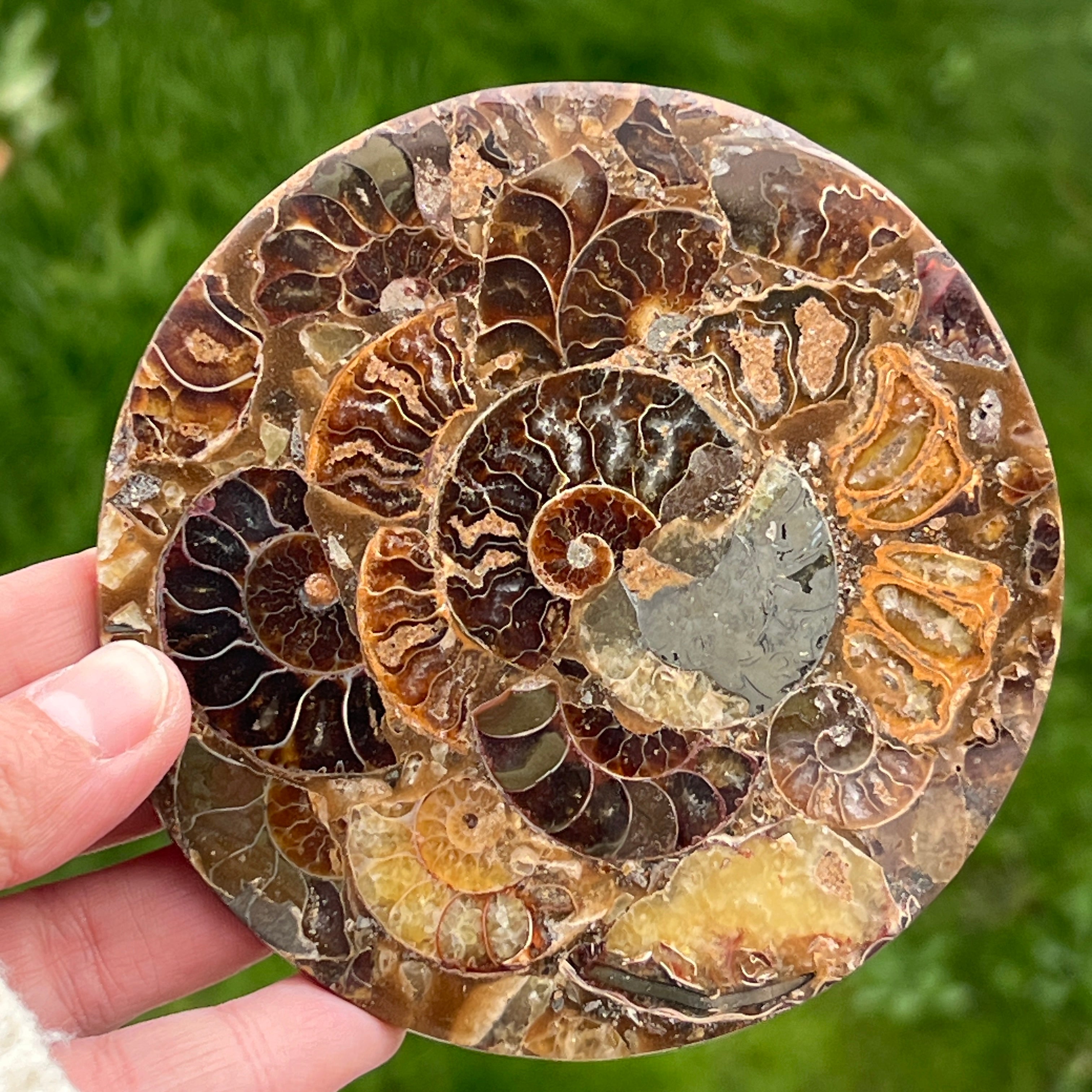 Fossile Ammonitenkristalle werden aus authentischen Ammonitenfossilien hergestellt. Diese Fossilien können je nach Art und geologischer Periode, in der sie lebten, unterschiedliche Größen und Verzierungen haben.