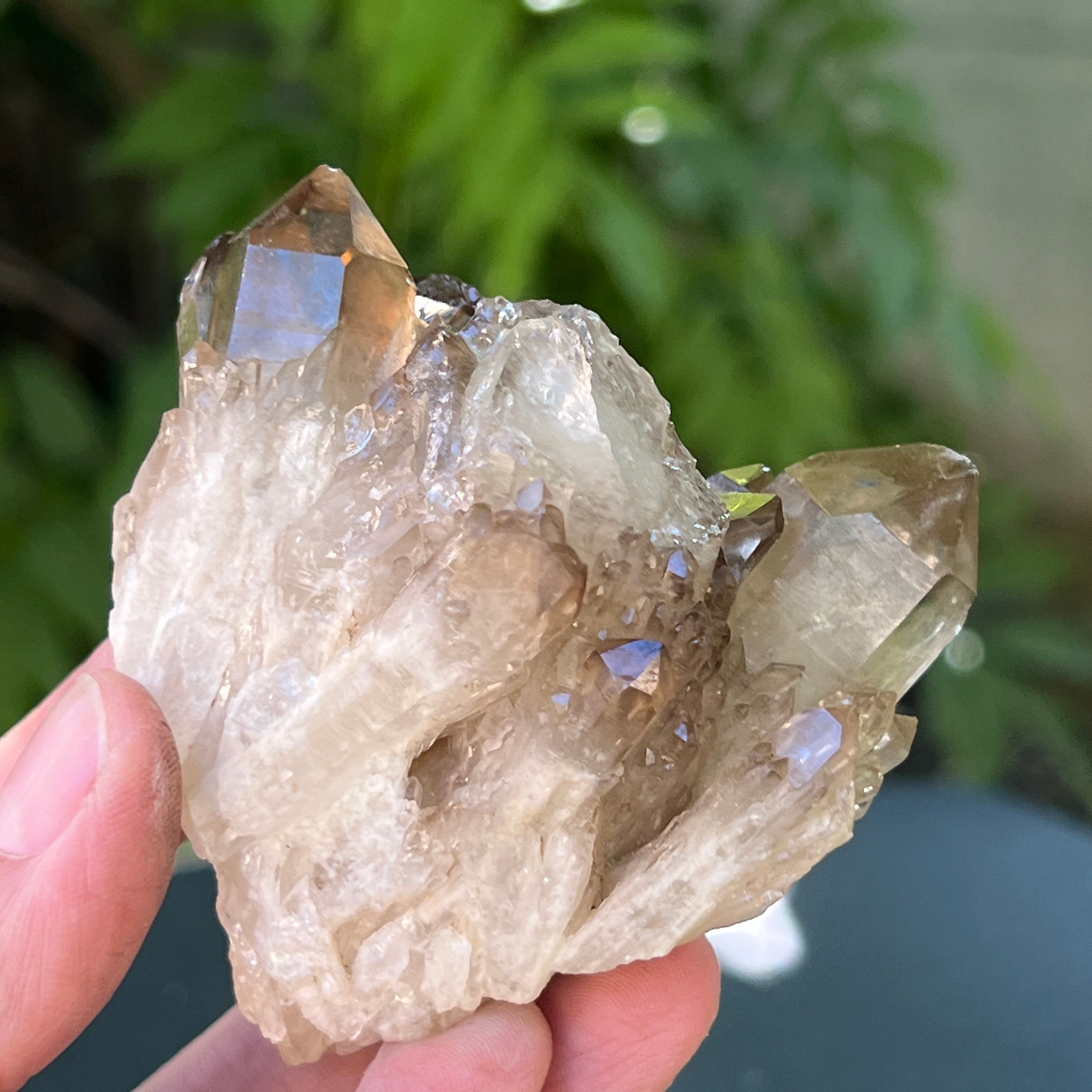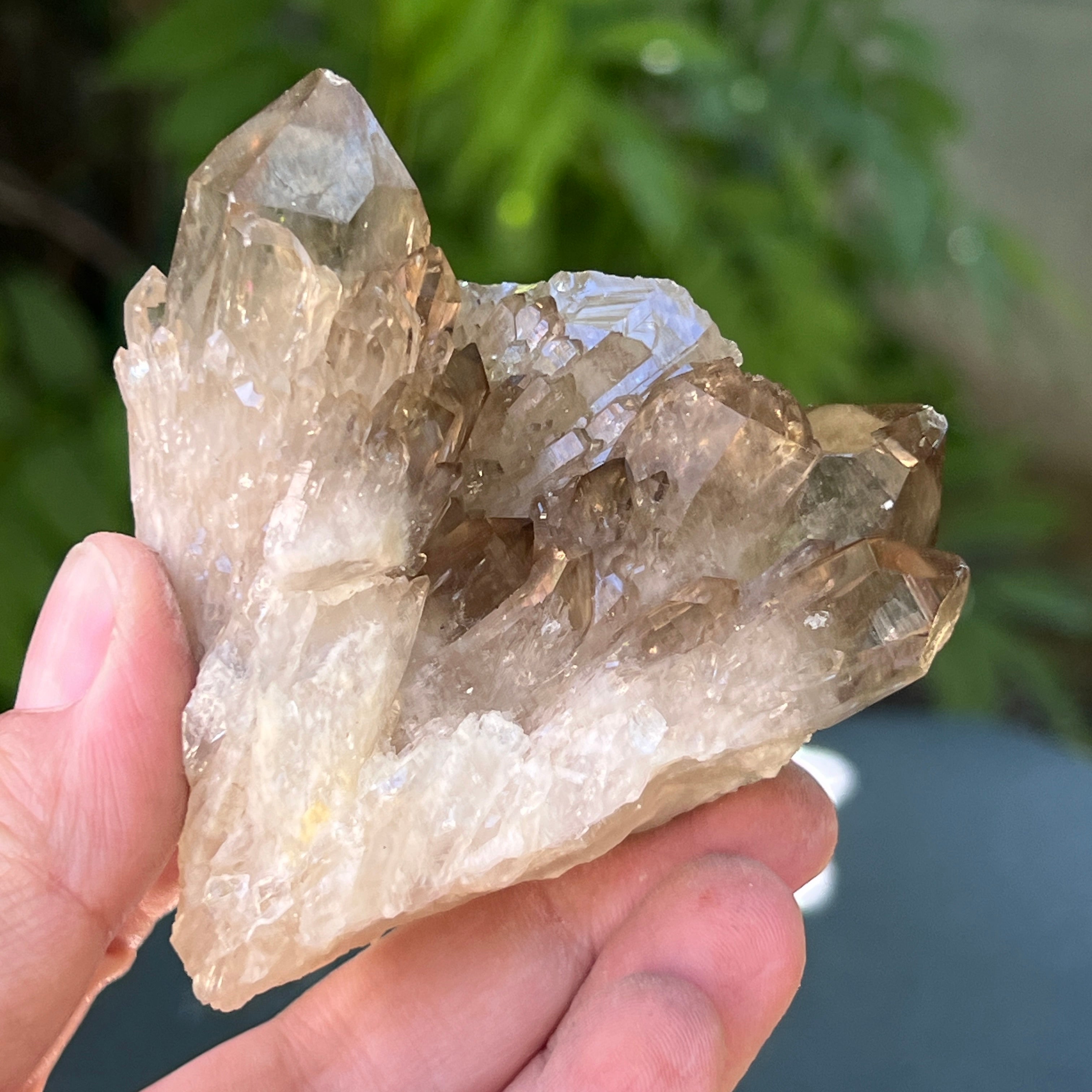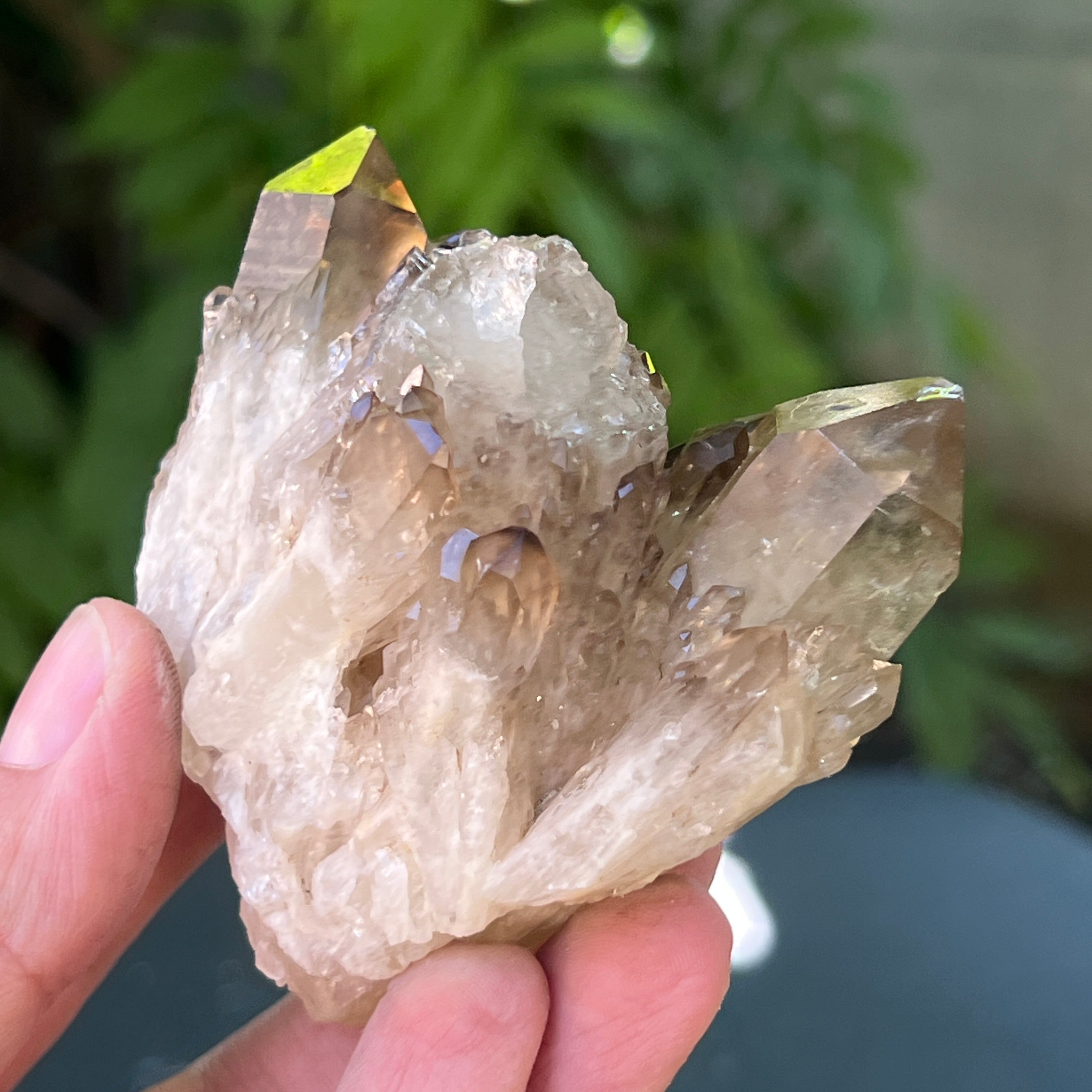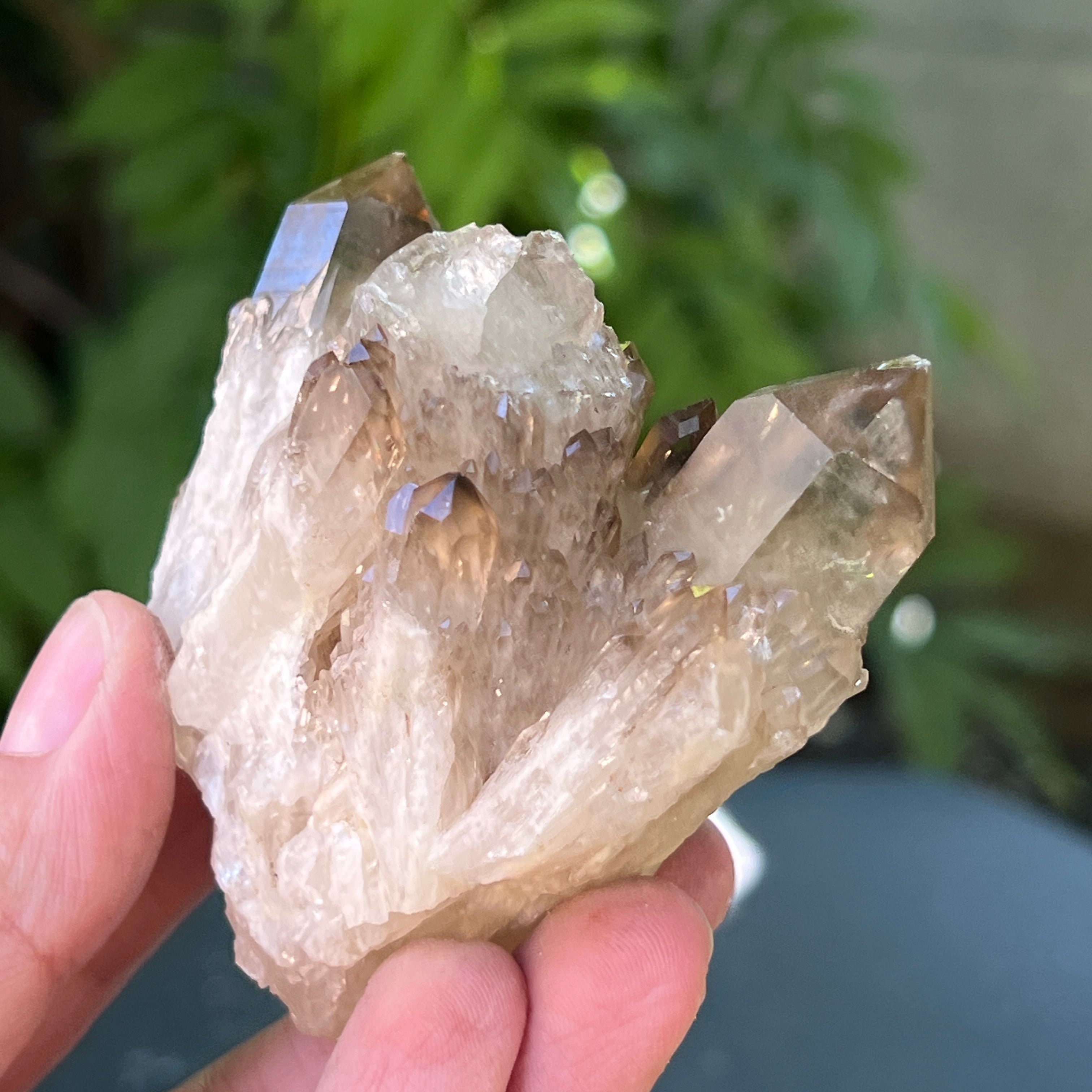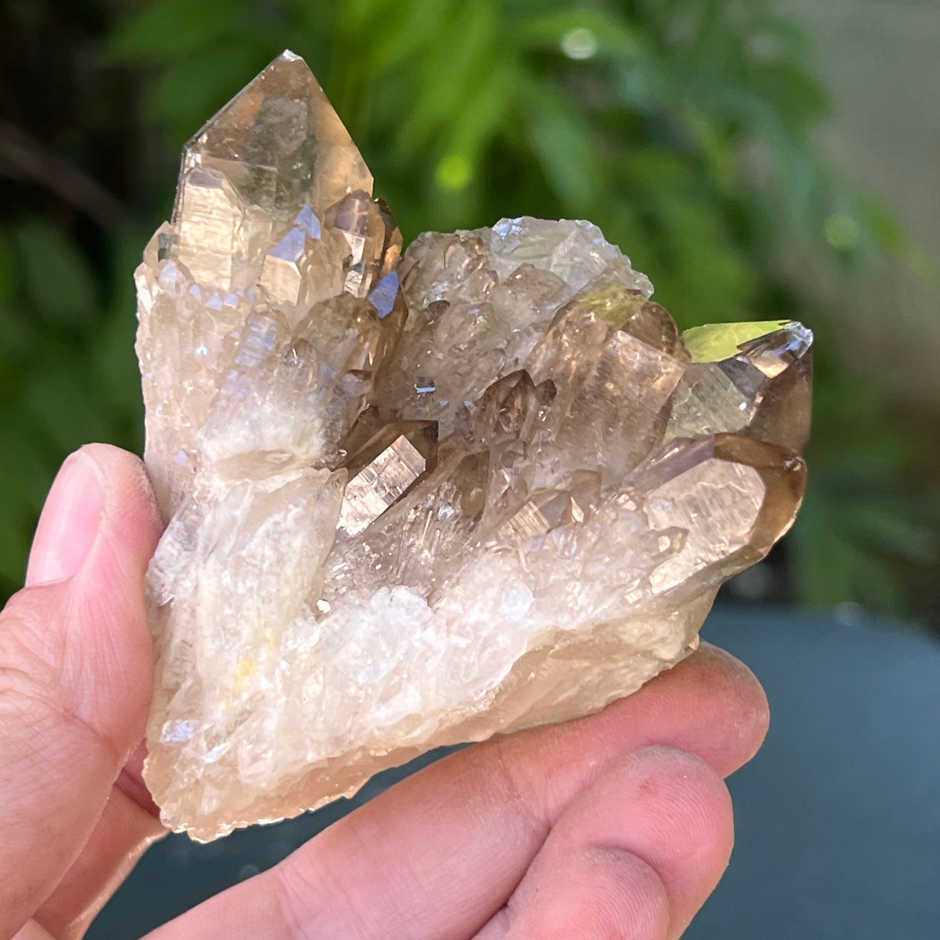 In den Tiefen des afrikanischen Kontinents, auf dem die irdische Erde des Urlebens der Ursache, wurde diese rauchige Zitrin geboren-ein seltener und mysteriöser Stein, der aus den reichen Böden des Kongo gewonnen wurde. Mit warmen Farbtönen, die zwischen gelbgoldem und diskreten Rauchtönen pendulieren, trägt dieses natürliche Exemplar den Eindruck über die Zeit und die langsamen Transformationen der Erde.