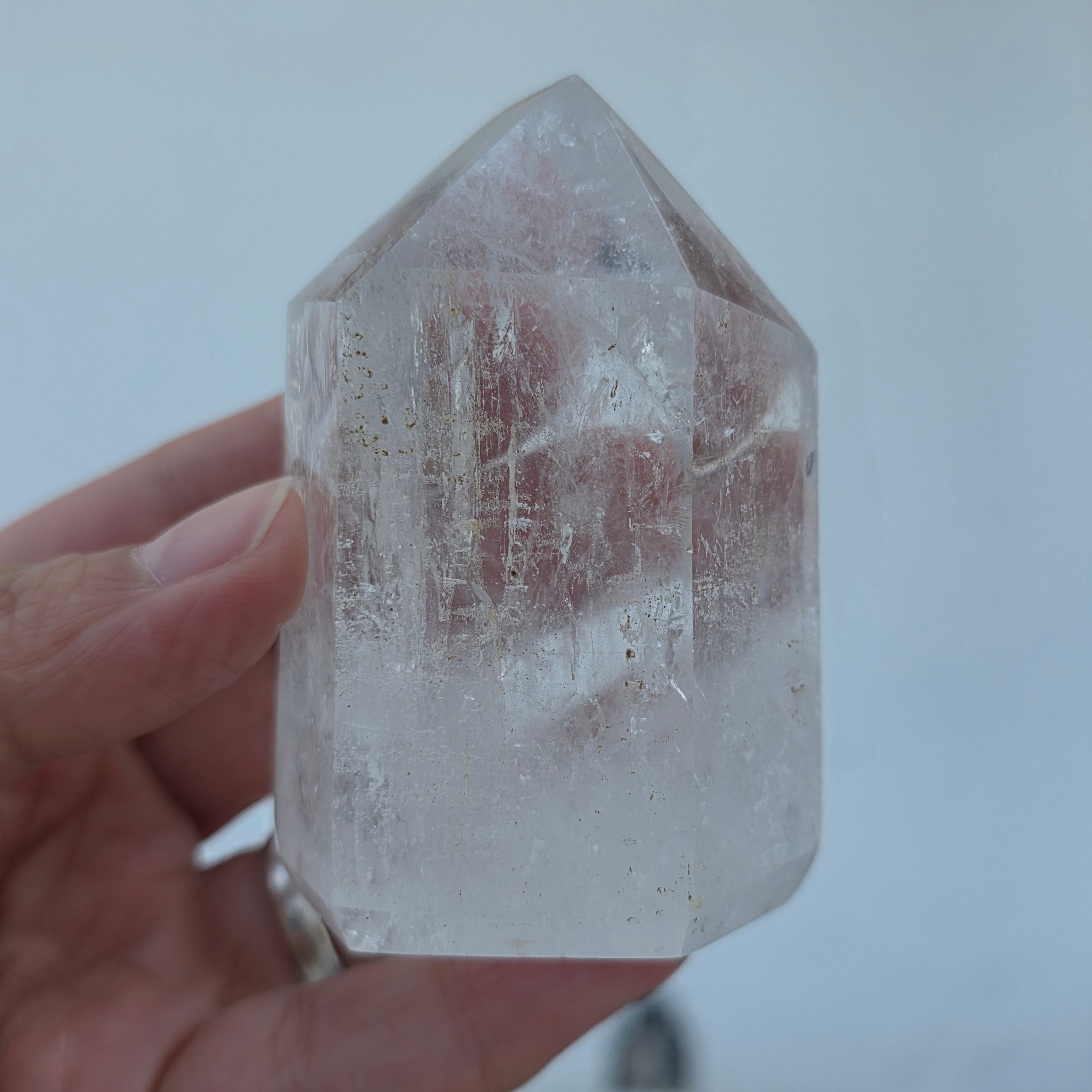 Farbloser Quarz ist für seine metaphysischen Eigenschaften bekannt und gilt als Kristall, der Zentrierung, Ausgeglichenheit und Klarheit bringt und dabei hilft, positive Energien zu verstärken.