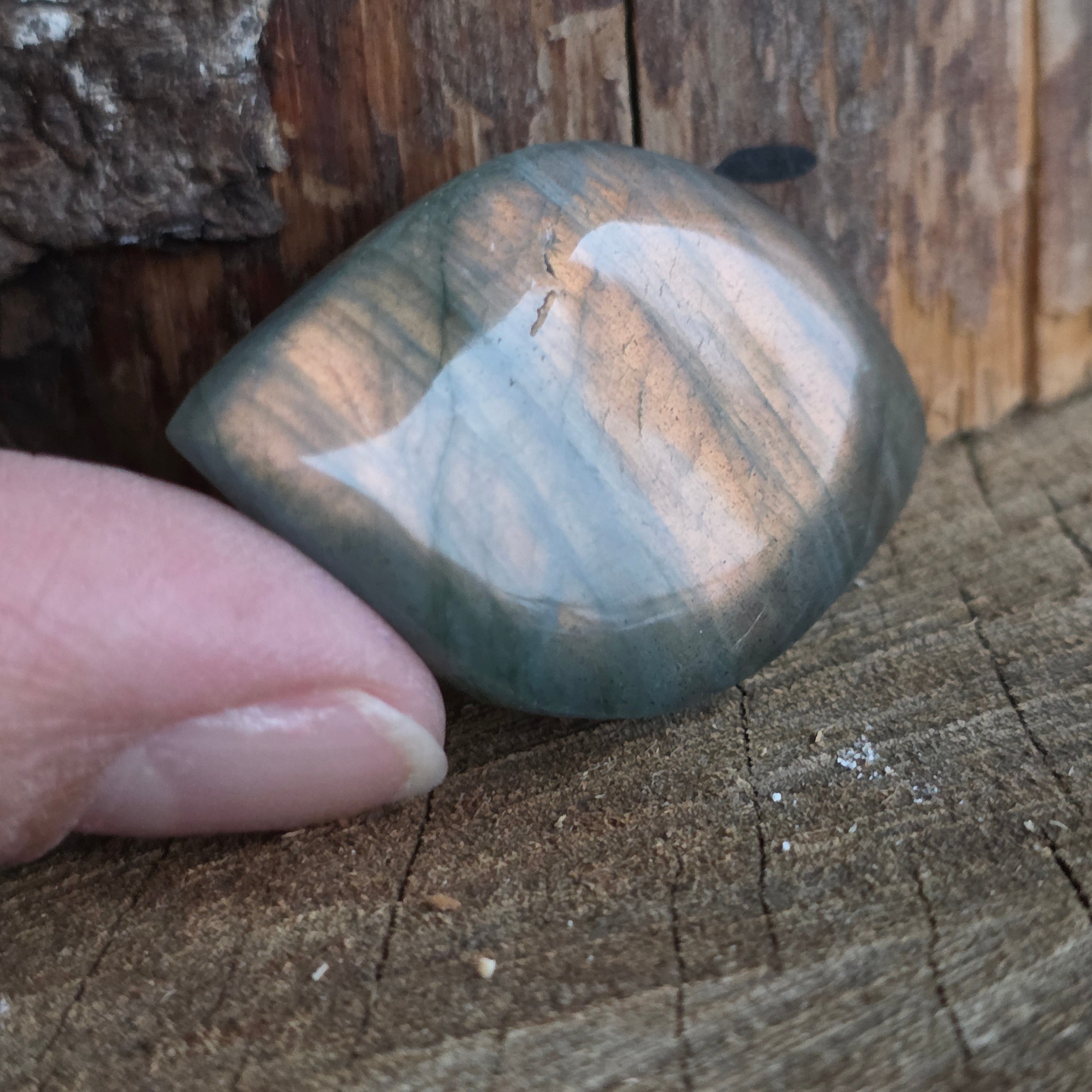 Beschreibung - Gerollter Labradorit-Cabochon | Modell 9