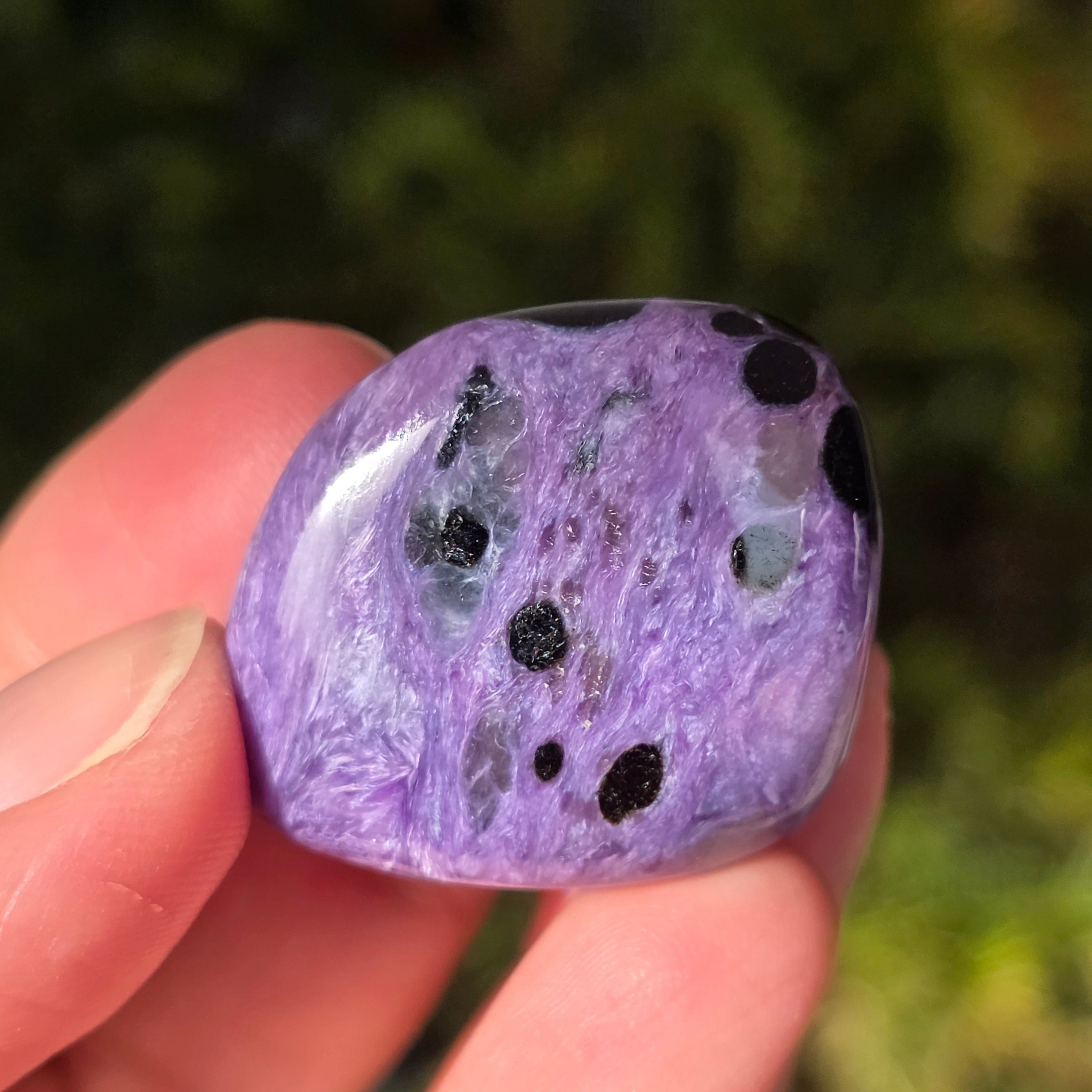 Charoit wird mit emotionaler und spiritueller Heilung, Beruhigung des Geistes und Ausbalancierung der Energie in Verbindung gebracht. Es wird angenommen, dass dieser Stein die Fähigkeit besitzt, Introspektion zu fördern und die Intuition zu steigern.