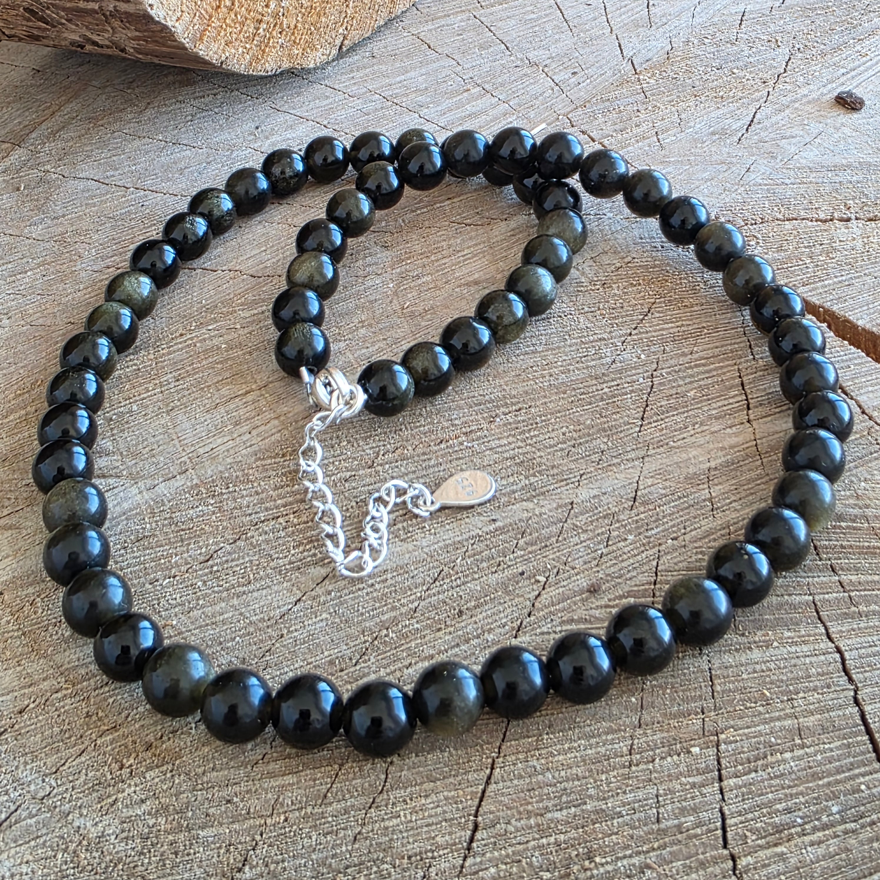 Beschreibung - Goldener Obsidian-Halskette Silence #230