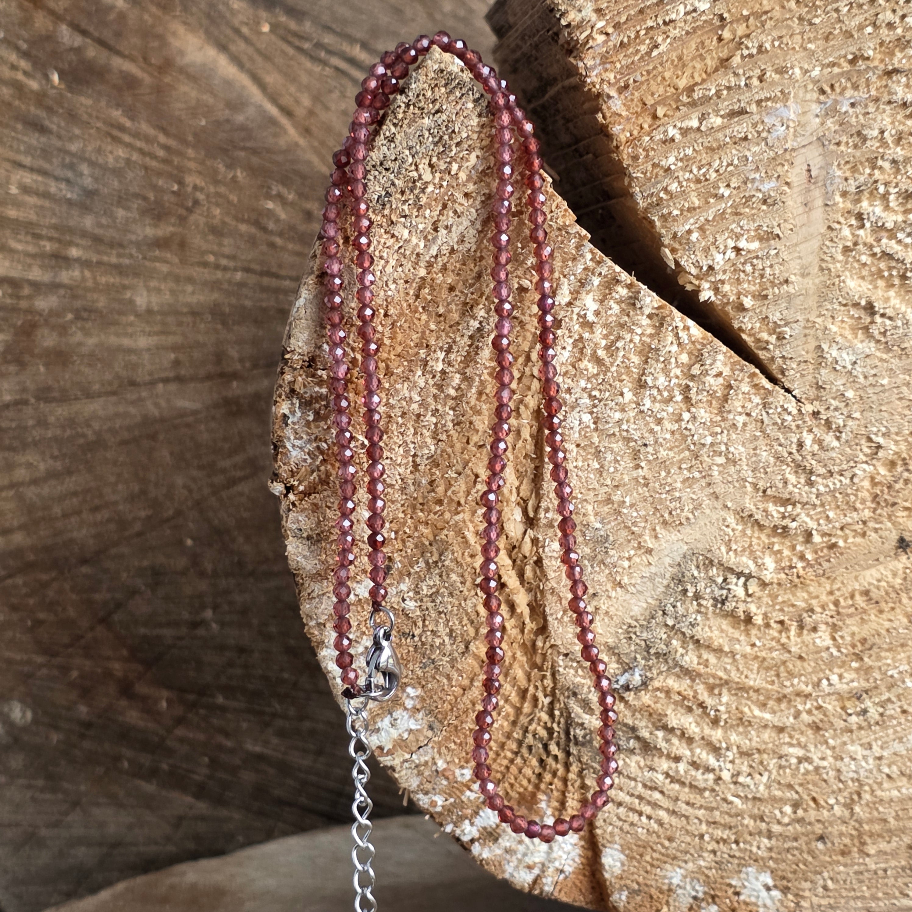 Granat Halskette Kugeln 2 mm, Größe: 38 + 5 cm (Verlängerungskette)