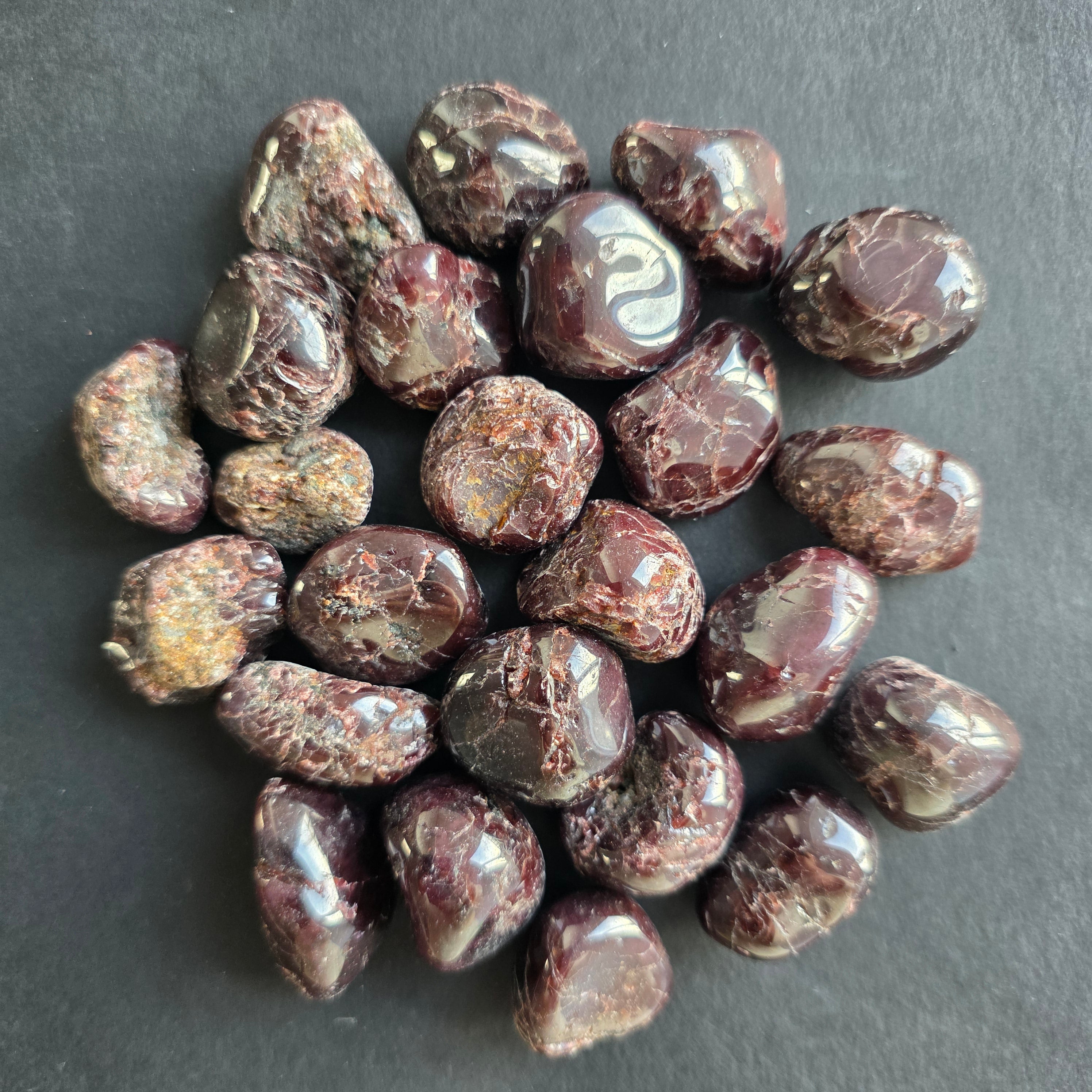 Granatul este asociat cu chakra rădăcinii (chakra 1) din cauza culorii sale roșii, care reprezintă energia și forța vitală. Acest cristal este folosit pentru a spori energia și puterea fizică, ajutând la obținerea unei baze solide și a unei fundații stabile în viață.