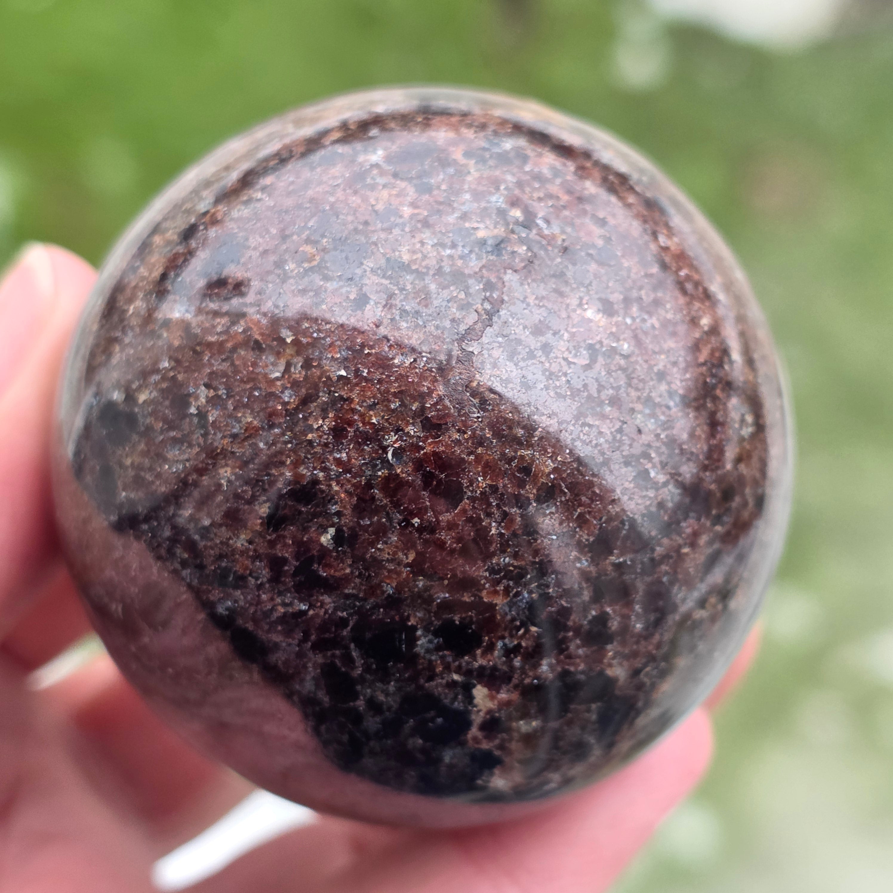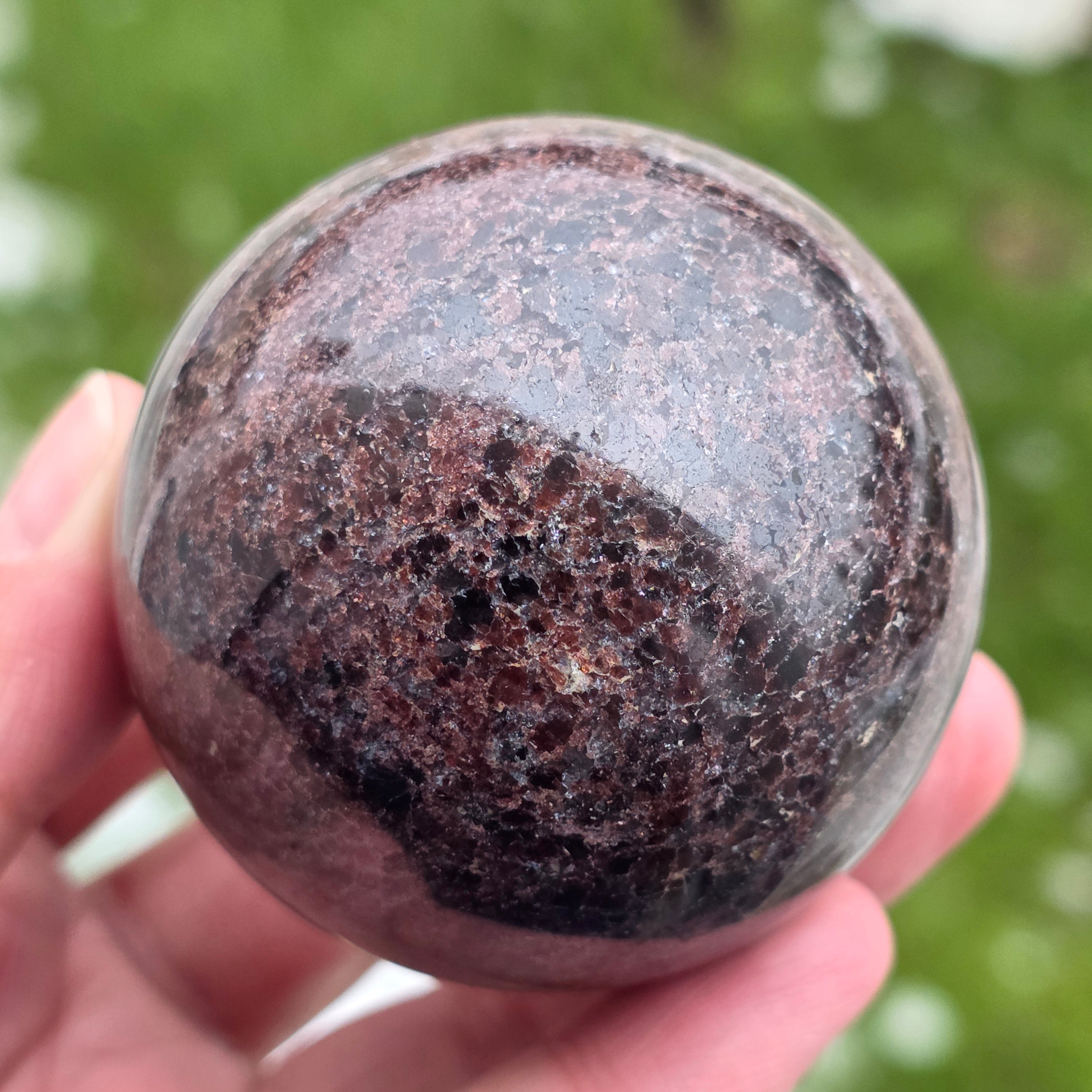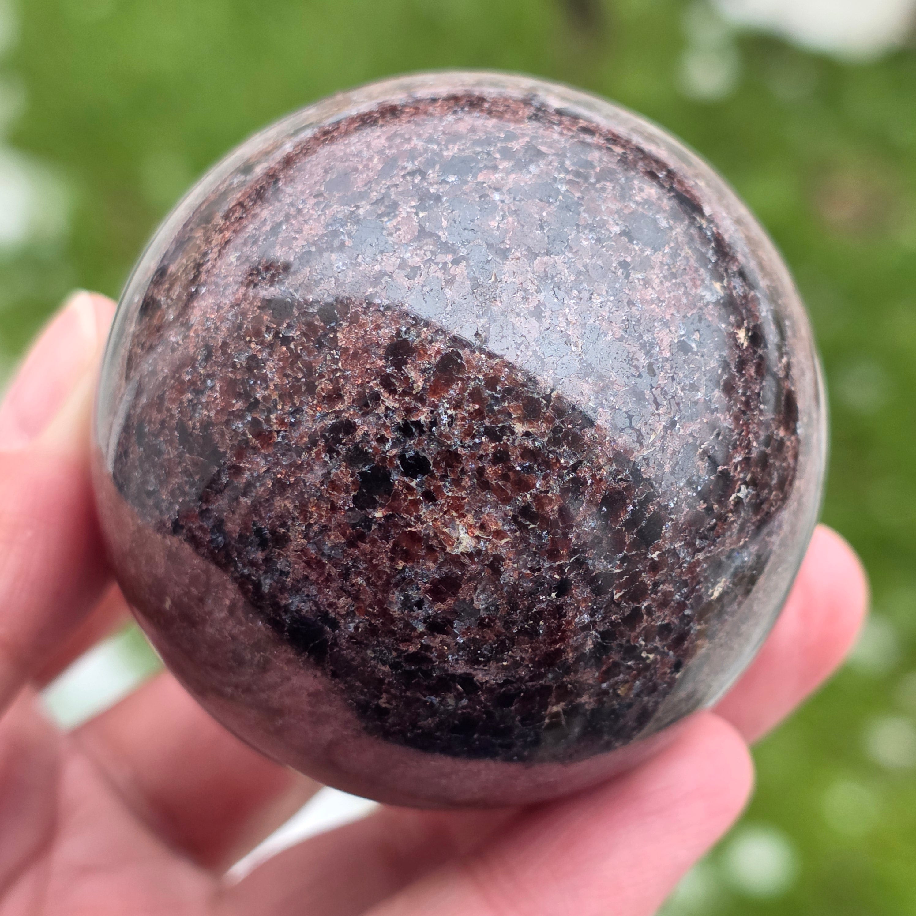 Diese natürliche rote Granatkugel, Qualität AEs zeichnet sich durch seine intensive Burgunderfarbe aus, ein Symbol für Vitalität und innere Stärke. Es ist ein Stück, das sich für Meditationsräume, Büros oder Bereiche eignet, die der Erdung und Energiezufuhr gewidmet sind. Der Granat wird mit der Aktivierung der Lebensenergie, emotionaler Stabilität und Unterstützung in Zeiten erhöhter Anstrengung oder Veränderung in Verbindung gebracht. Die Kugelform hilft, die Energie gleichmäßig zu verteilen, wodurch dieses Stück zu einem Punkt des Gleichgewichts, der Kontinuität und der inneren Stärke wird.