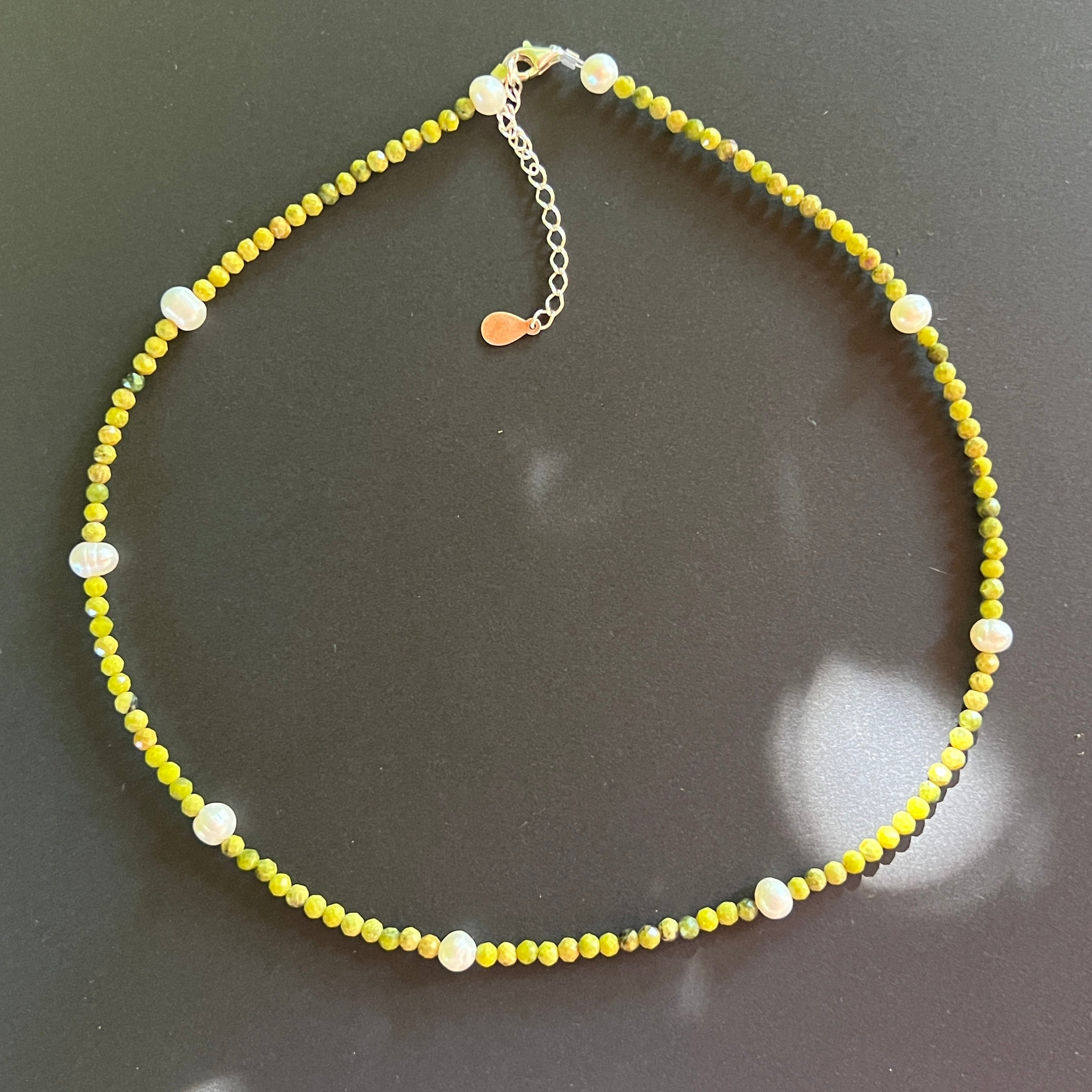 Beschreibung - Grüne Jad Halskette und Perlen Nara #48