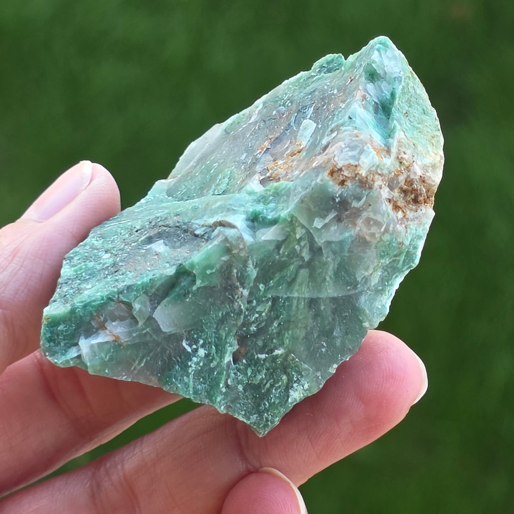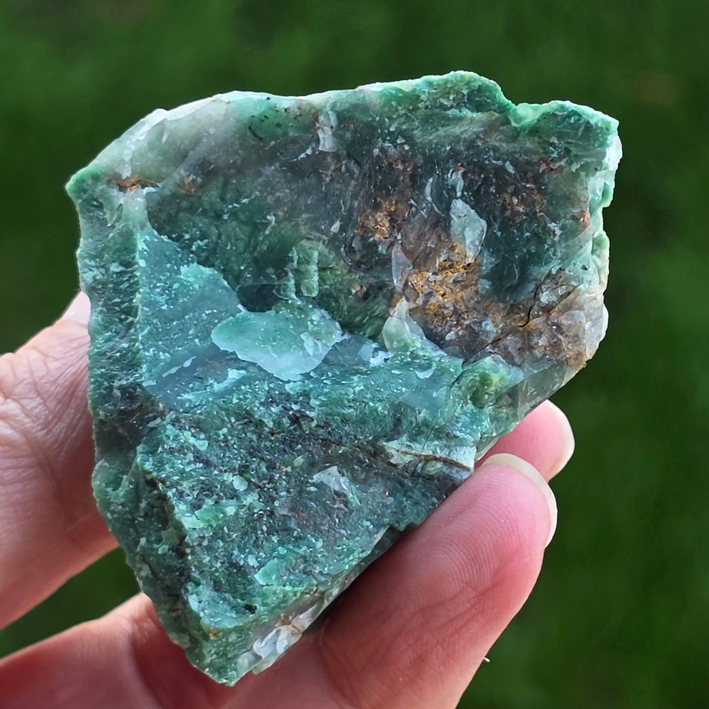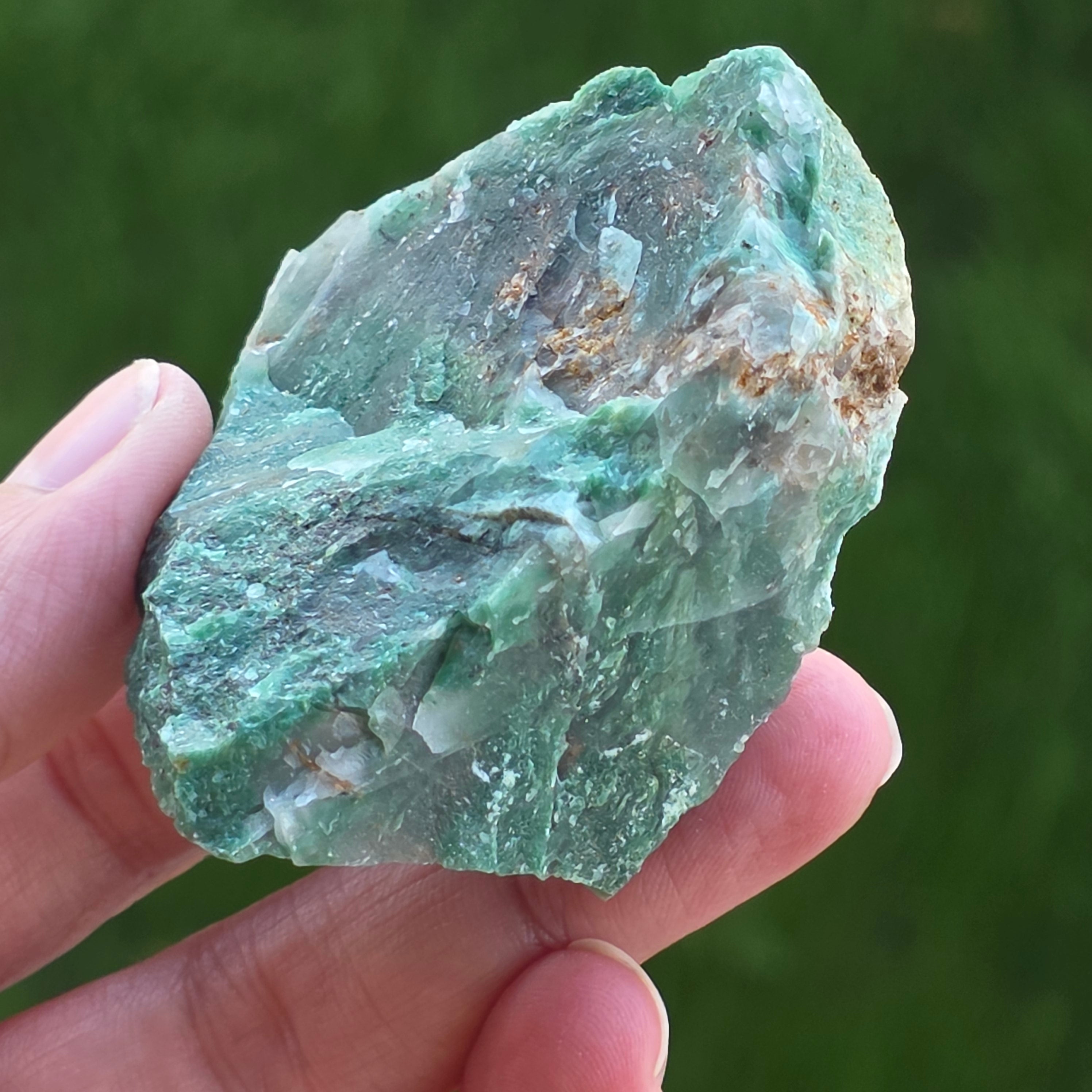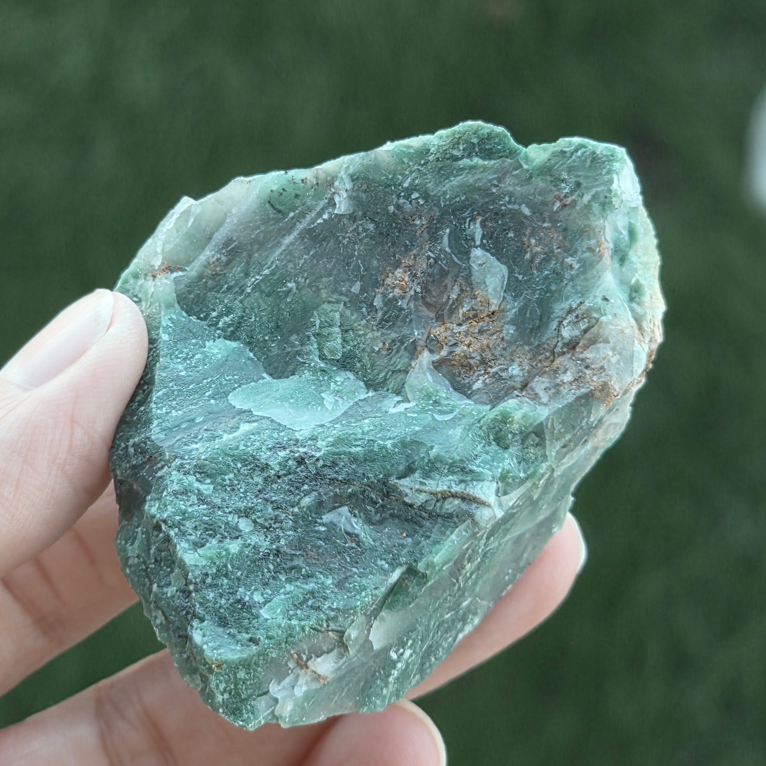 Green Jade ist eine Vielzahl von Jade, die hauptsächlich aus Calcium und Magnesiumsilikat besteht. Seine charakteristische grüne Farbe ist auf das Vorhandensein von Chrom und Eisen in seiner chemischen Zusammensetzung zurückzuführen.