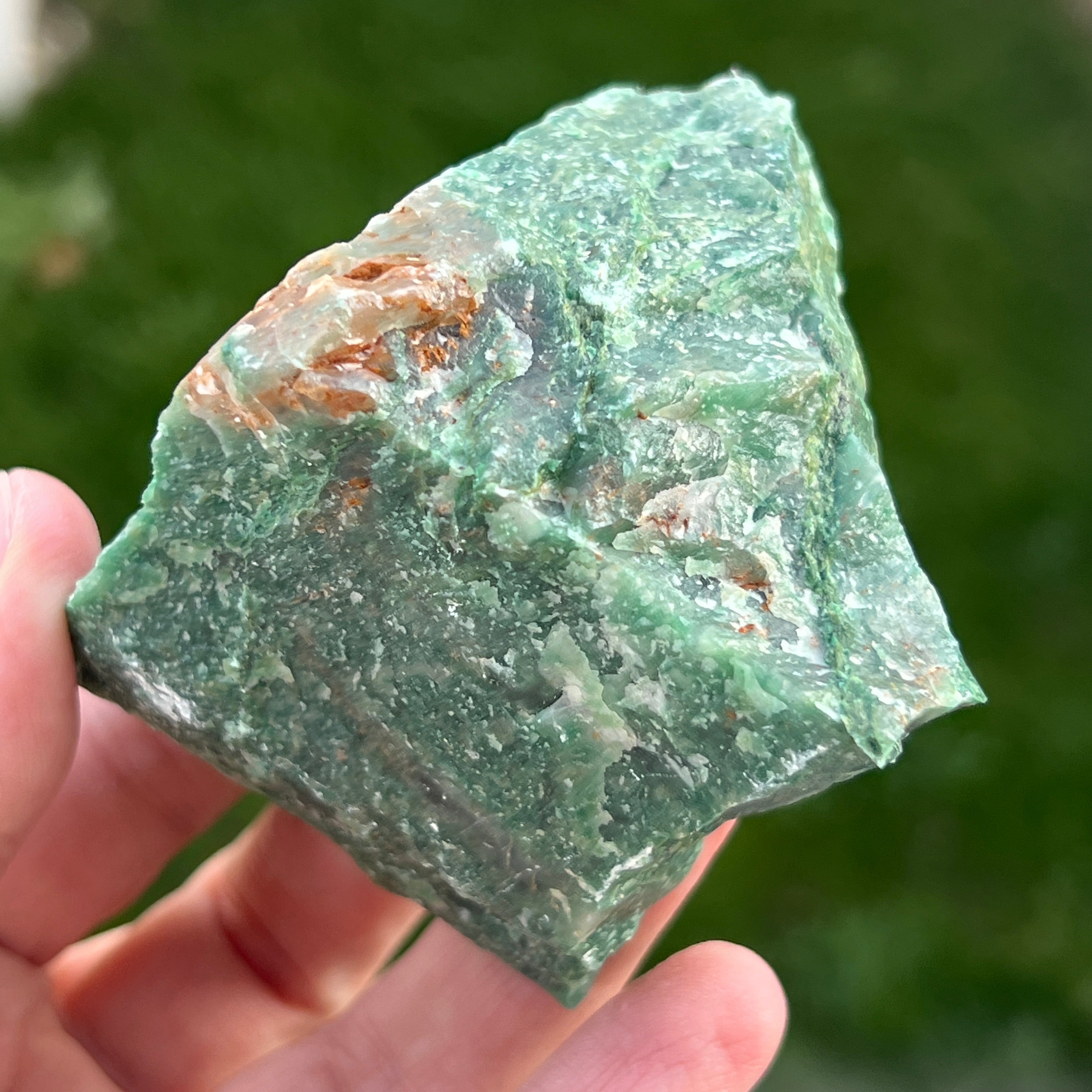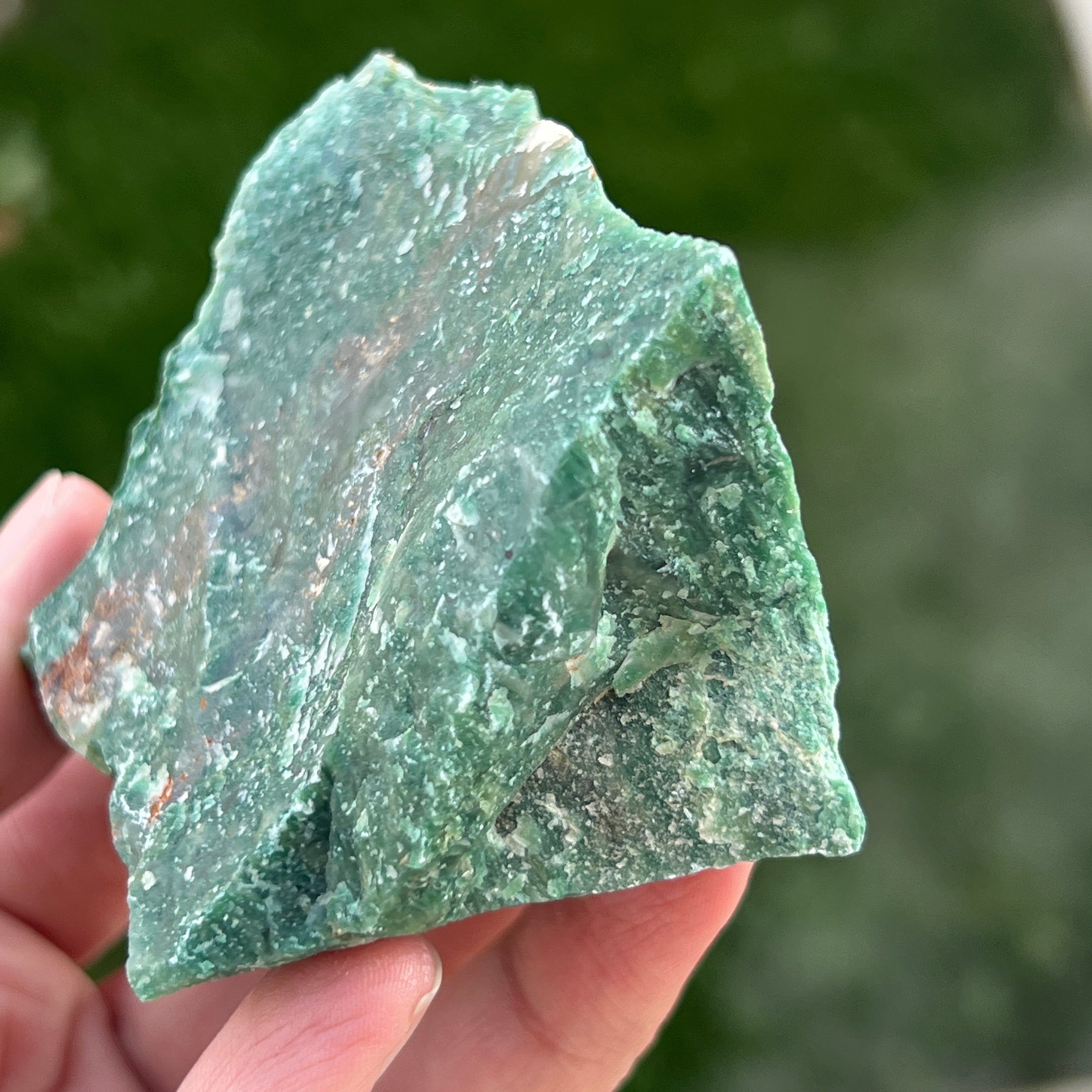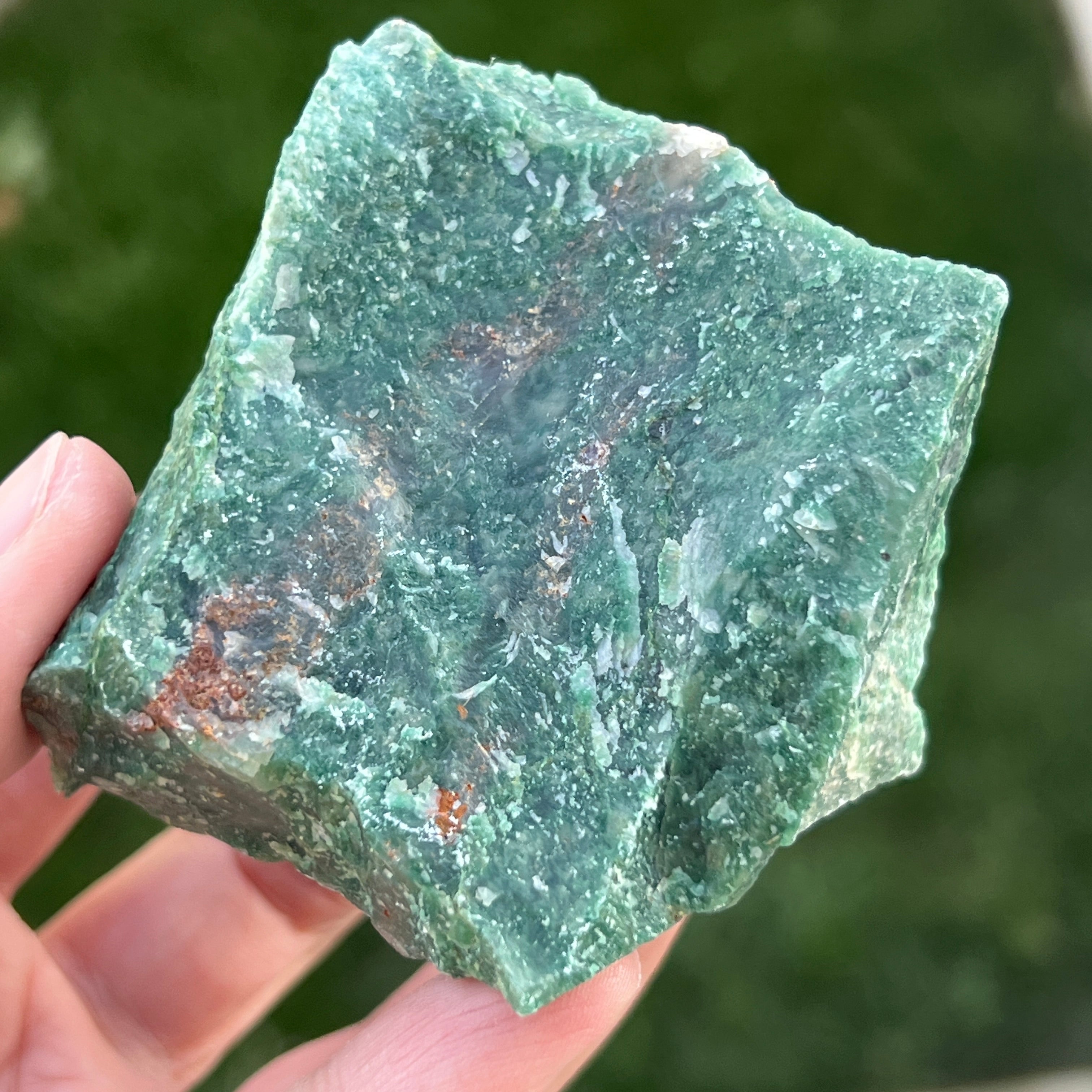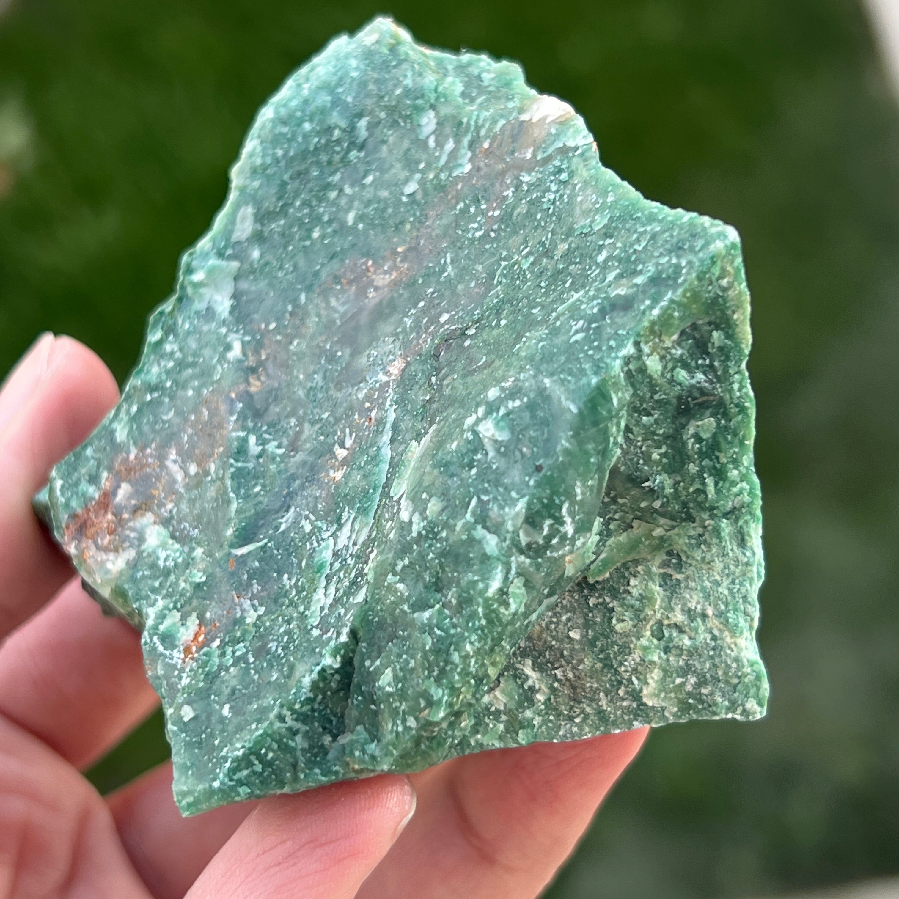 Green Jade ist eine Vielzahl von Jade, die hauptsächlich aus Calcium und Magnesiumsilikat besteht. Seine charakteristische grüne Farbe ist auf das Vorhandensein von Chrom und Eisen in seiner chemischen Zusammensetzung zurückzuführen.