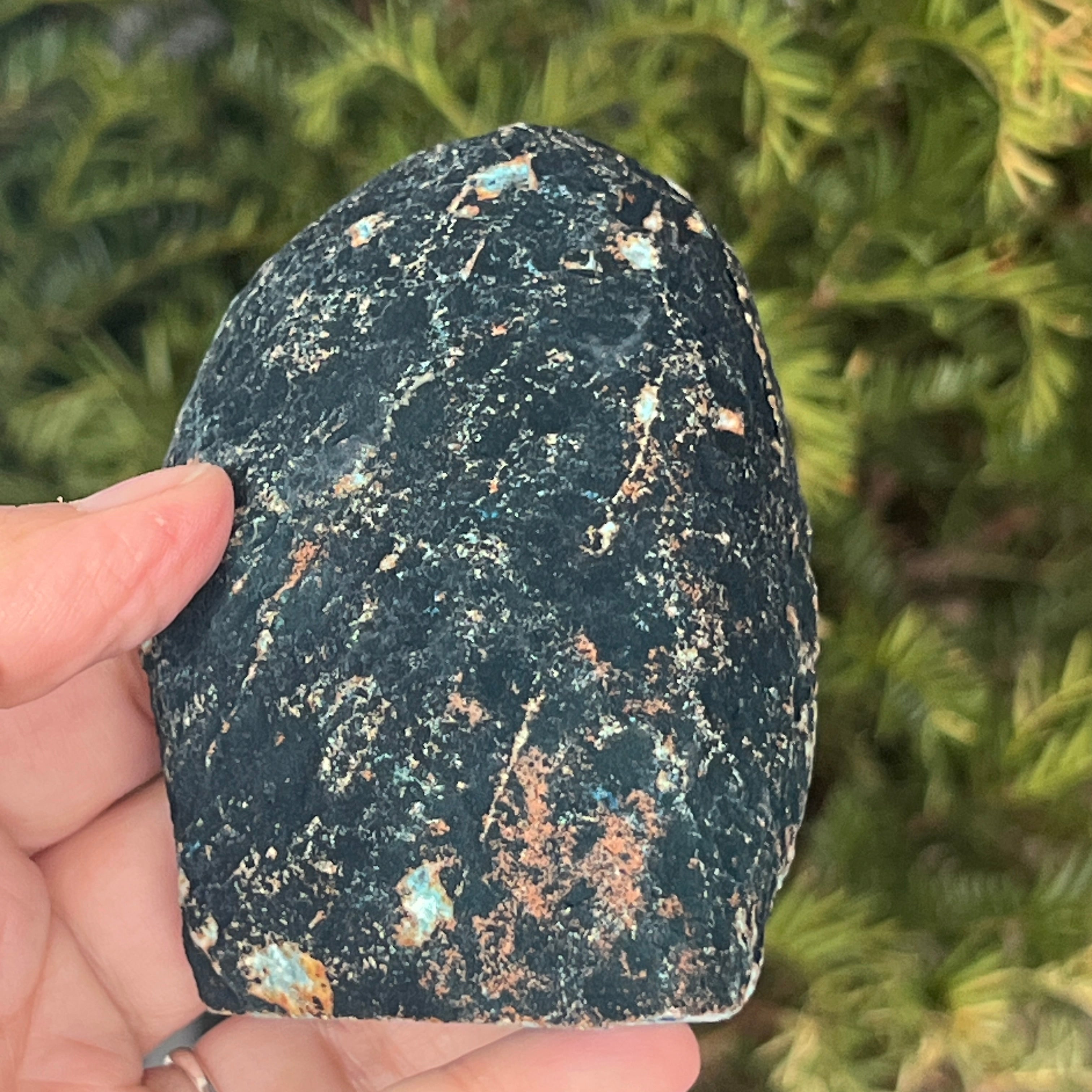Der grün-blauliche Achat ist eine Calcedon-Varietät mit geschichteter Struktur, die durch sukzessive Ablagerungen von Kieselsäure in geologischen Hohlräumen entsteht. Seine Farbtöne zwischen Grün und Blau heben die natürlichen für Achat typischen Bänder hervor. Er wird für die Harmonie seiner Farben und die mit ihm verbundene Symbolik von innerem Gleichgewicht und emotionaler Ruhe geschätzt.