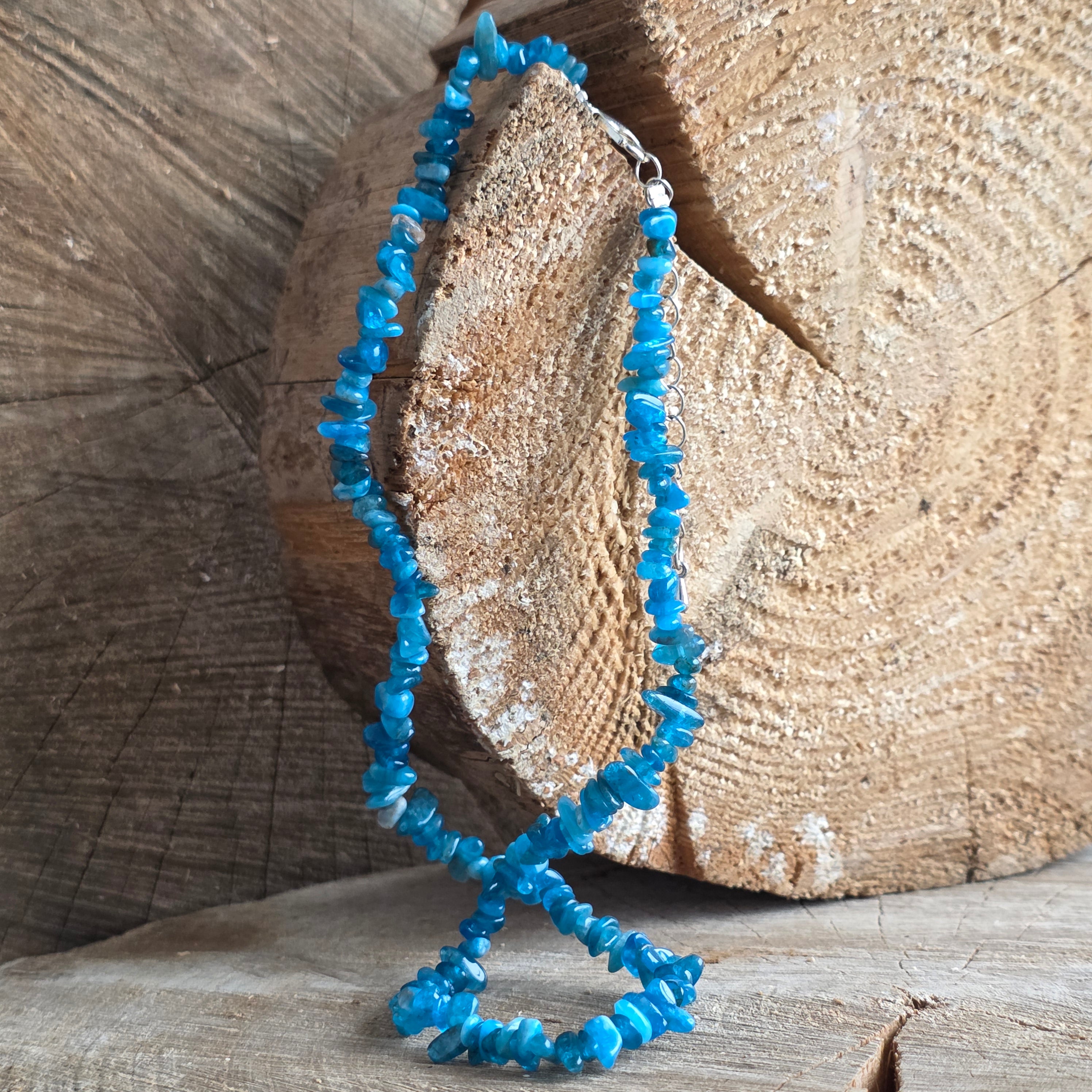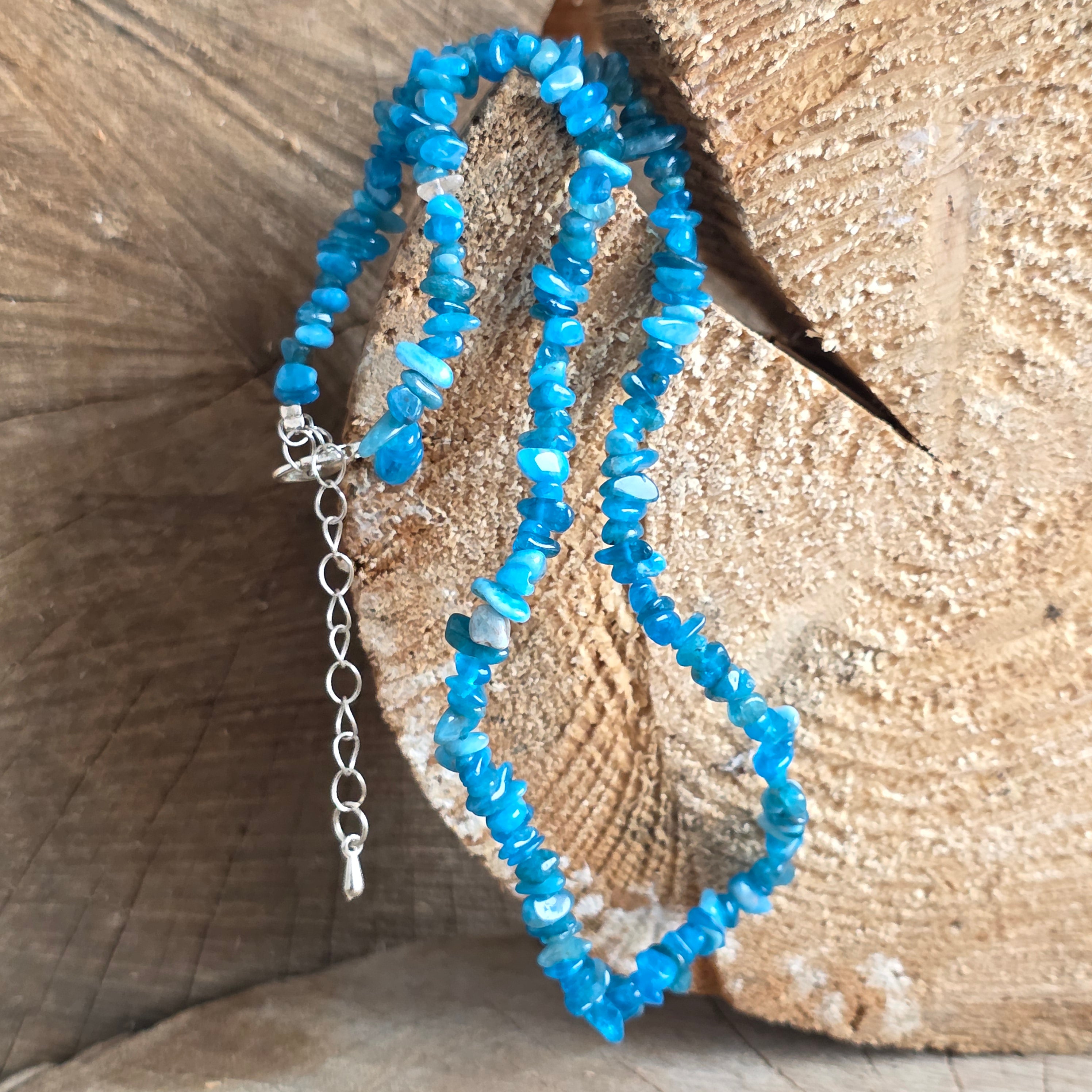 Fügen Sie Ihren Outfits mit dieser Halskette aus natürlichen Apatit-Chips in lebendiger Farbe, auf einer feinen 40 cm langen Kette montiert, mit einer 5 cm langen Metallverlängerung für die perfekte Anpassung, einen Schub Farbe und Energie hinzu.