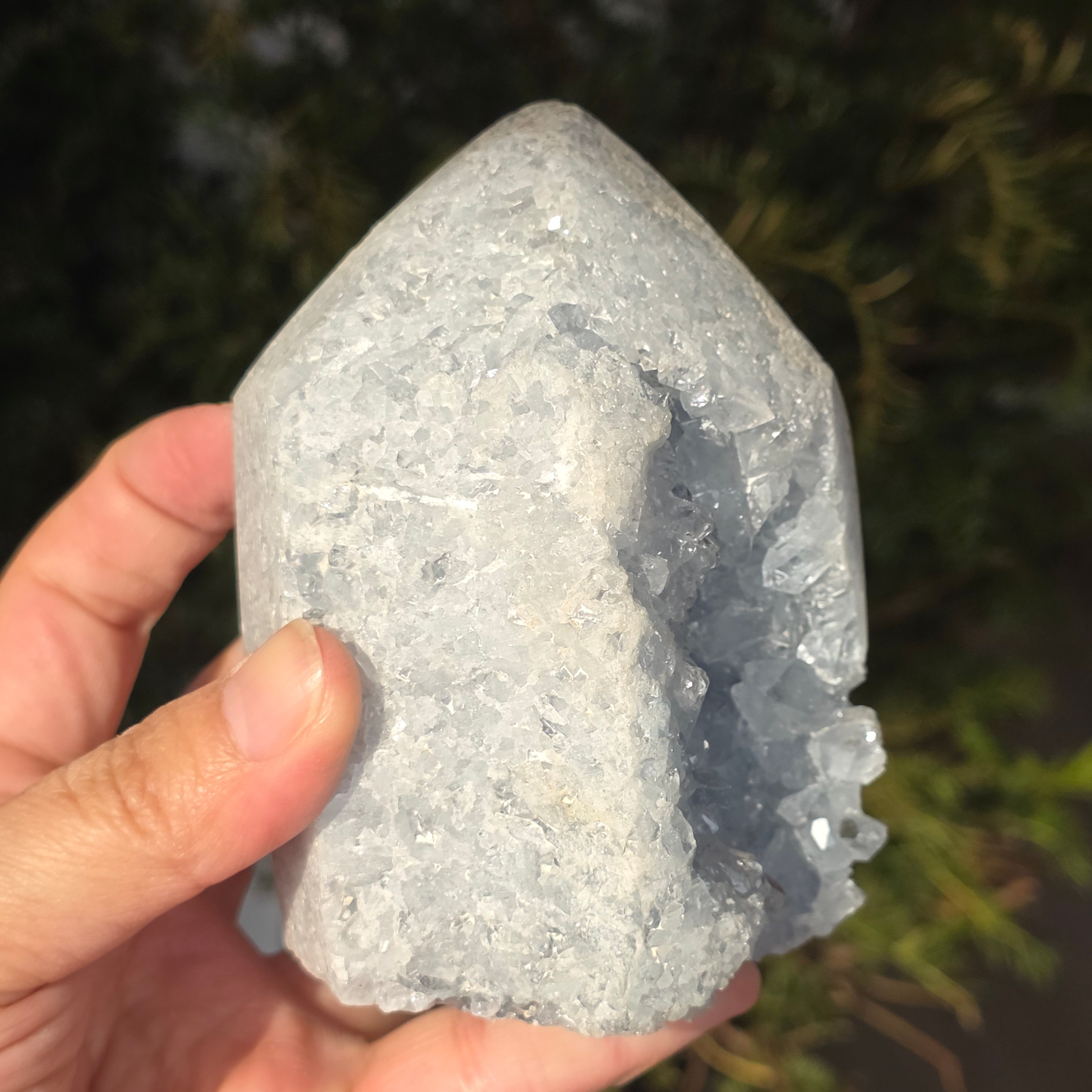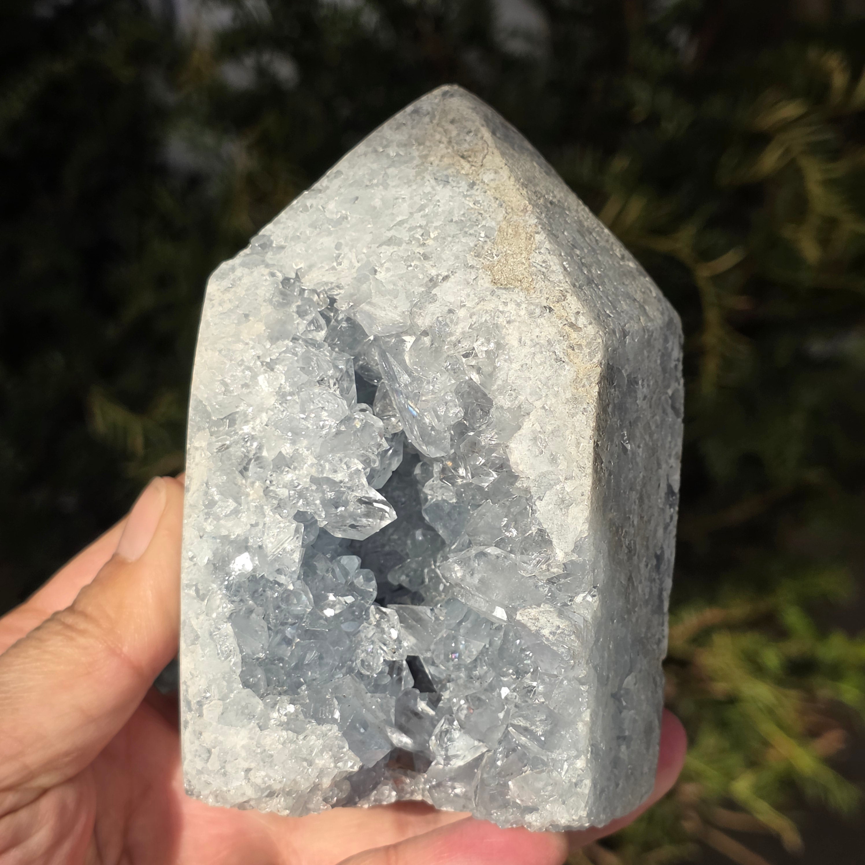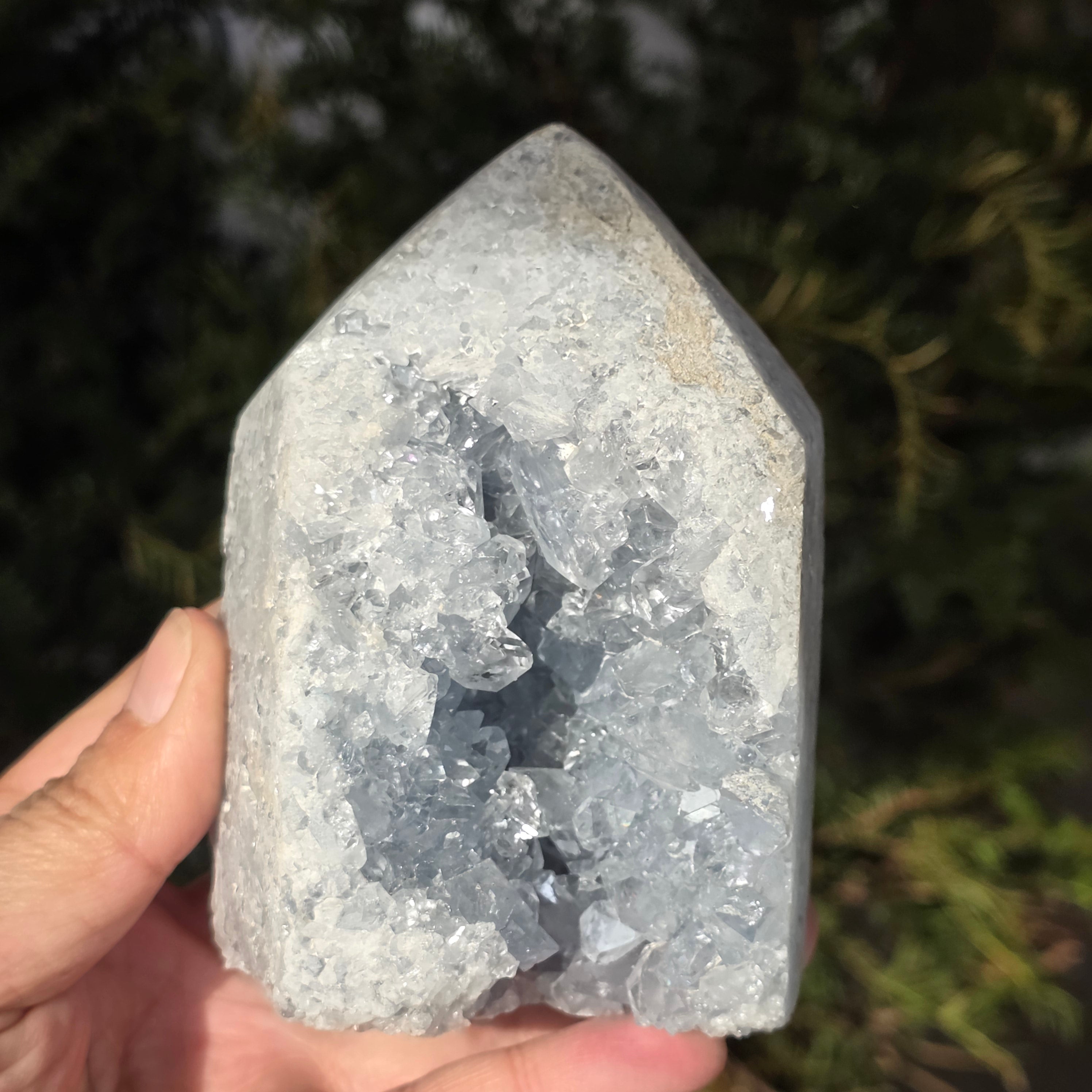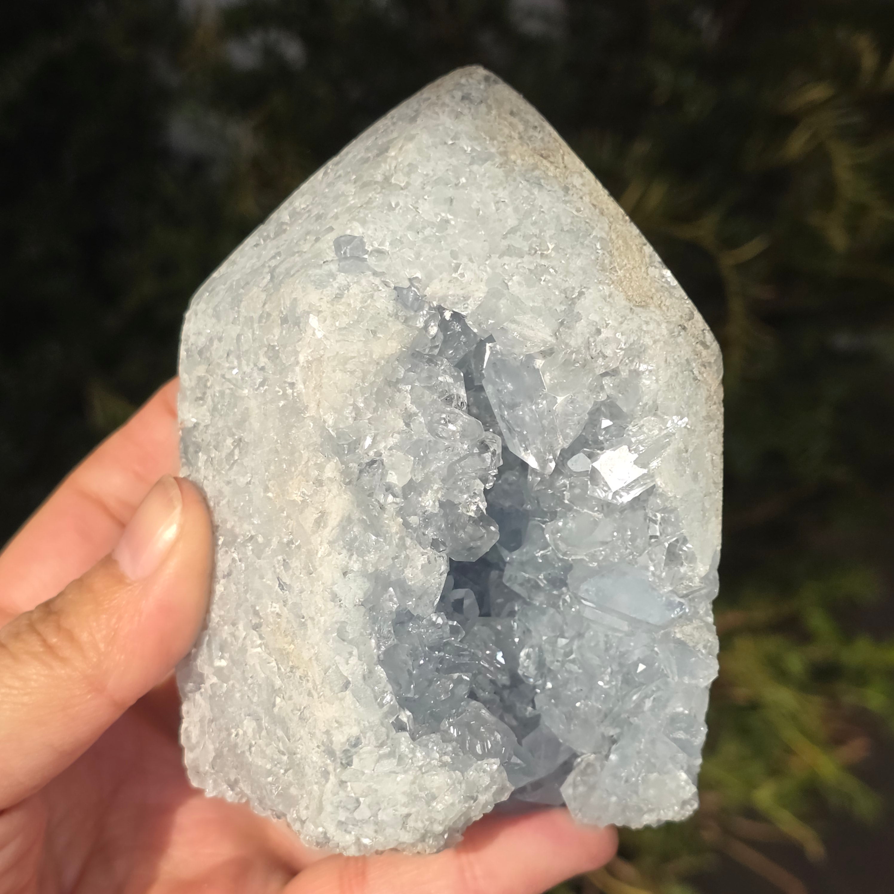 Celestit ist ein halbedelstein blauer oder farbloser Farbe, der aus Strontiumsulfat besteht. Er hat beruhigende und entspannende Eigenschaften und wird oft in der Meditation und in spirituellen Praktiken verwendet, um inneren Frieden und geistige Klarheit zu fördern. Celestit wird mit dem Halschakra in Verbindung gebracht und kann helfen, klar zu kommunizieren und Emotionen auszudrücken. Außerdem wird angenommen, dass er Kreativität, Intuition und psychische Fähigkeiten verbessert.