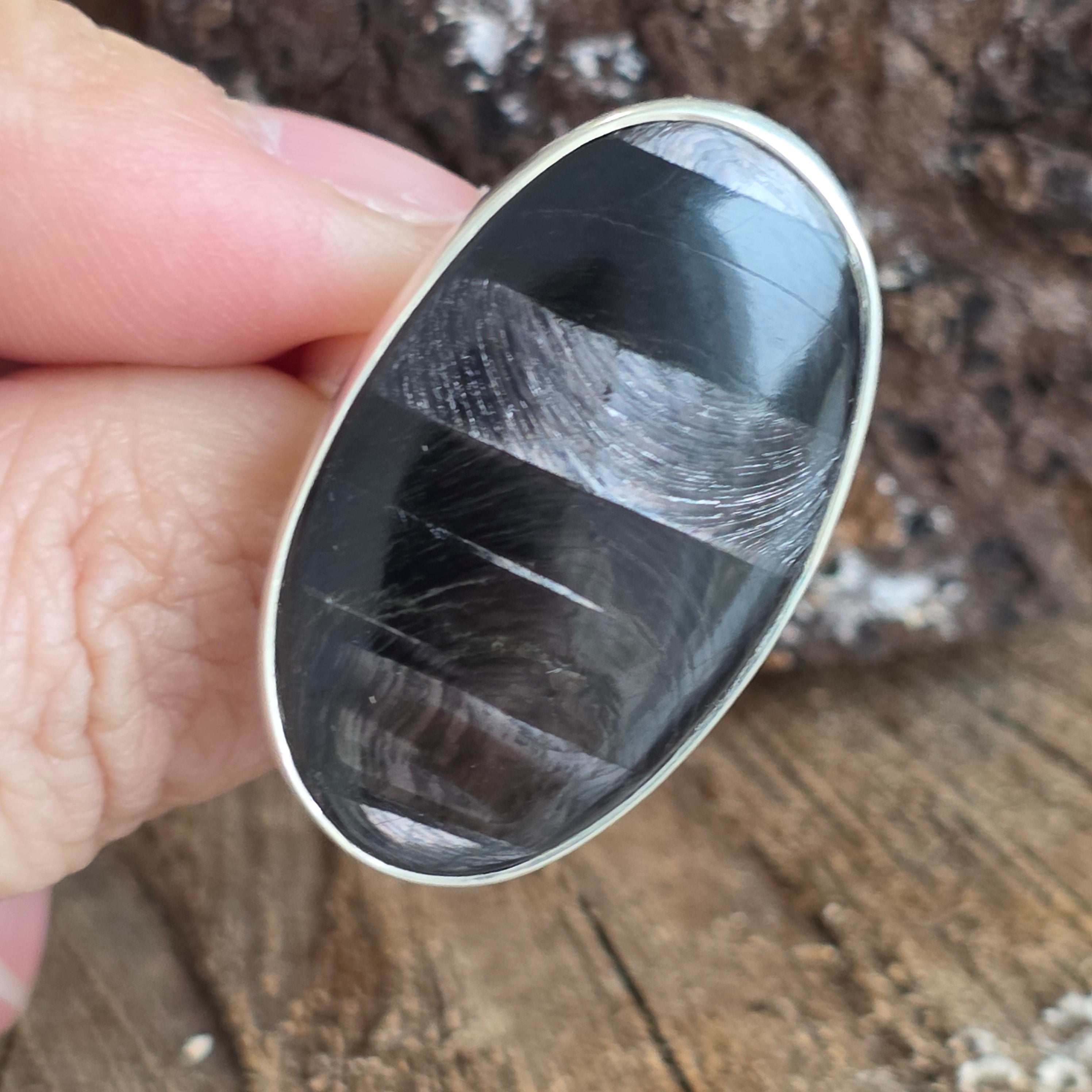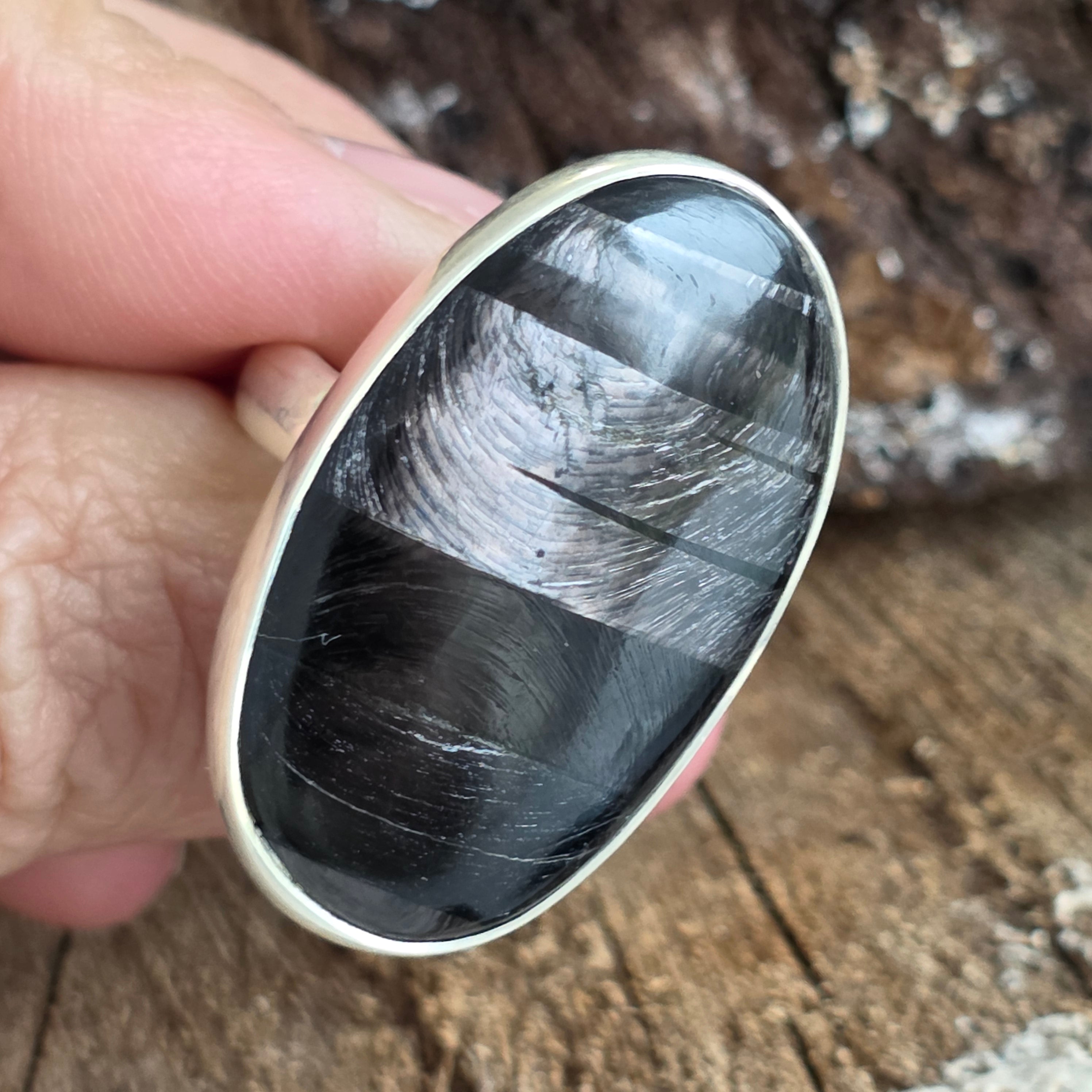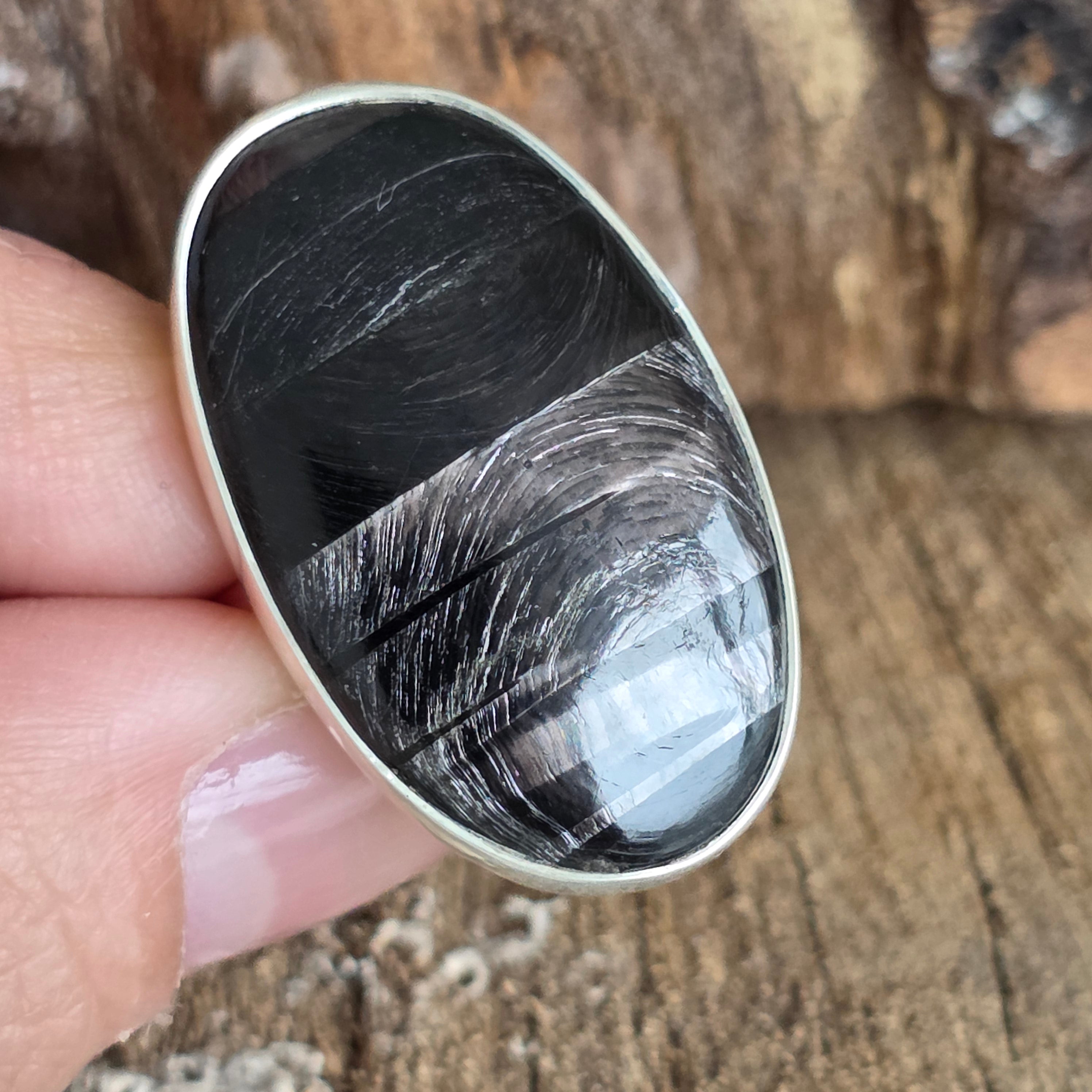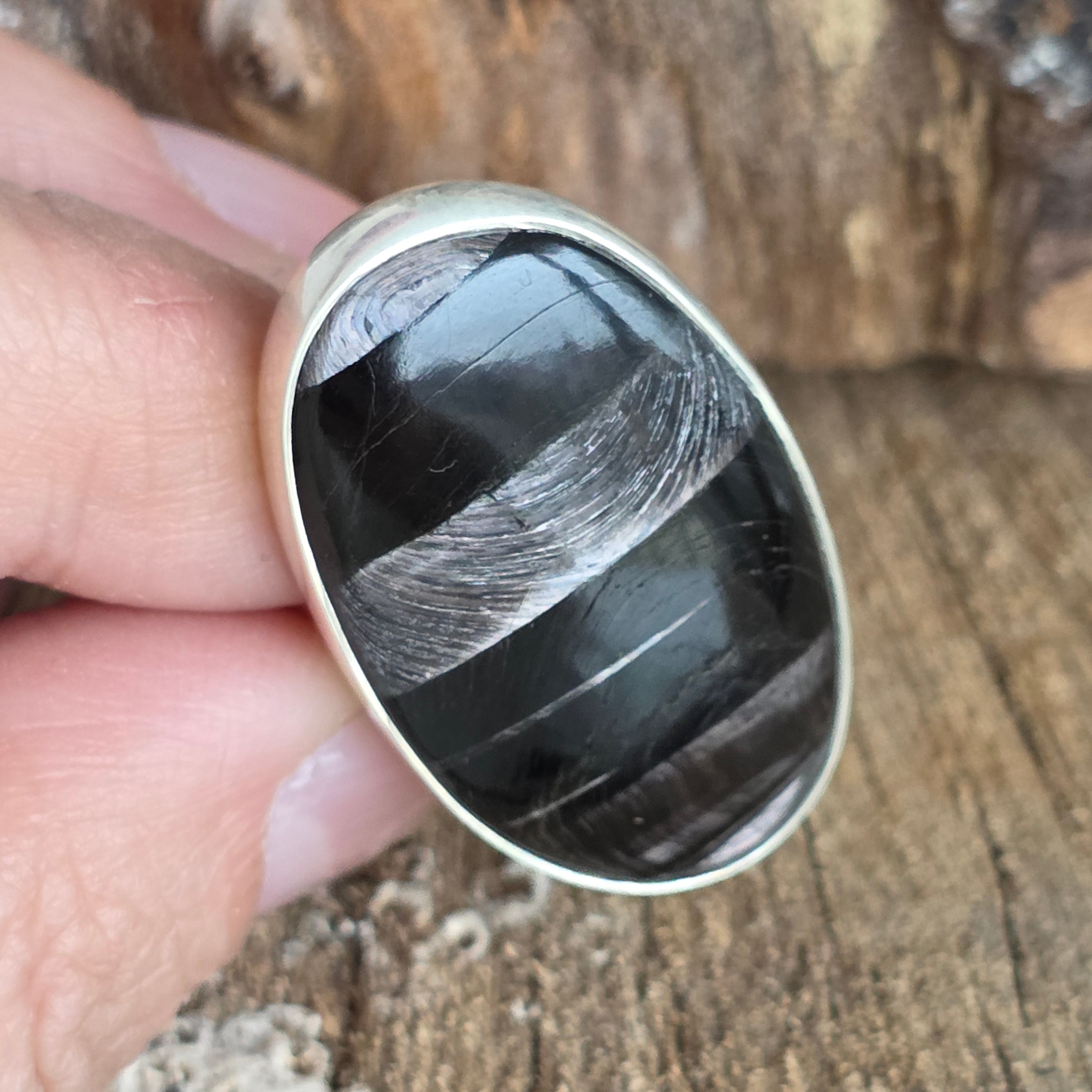 Tragen Sie diesen Ring mit natürlichem Hyperstein, um Ihrem Leben Klarheit, Ausgeglichenheit und Eleganz zu verleihen – ein seltenes und einzigartiges Juwel, von der Natur geschaffen und in Silber veredelt.