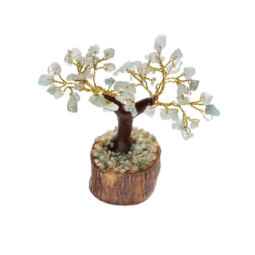 Holzbasierter Aquamarin-Feng-Shui-Baum – Größe S