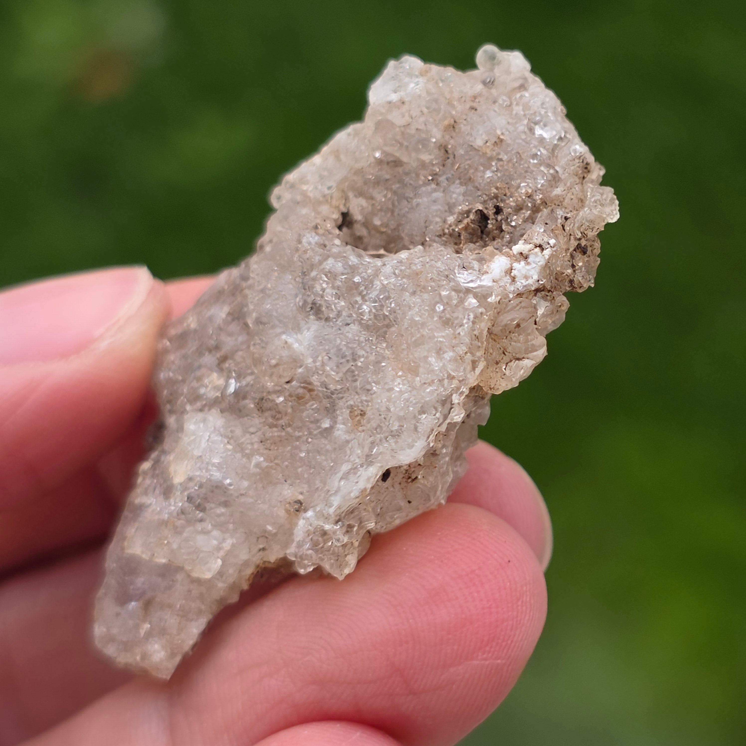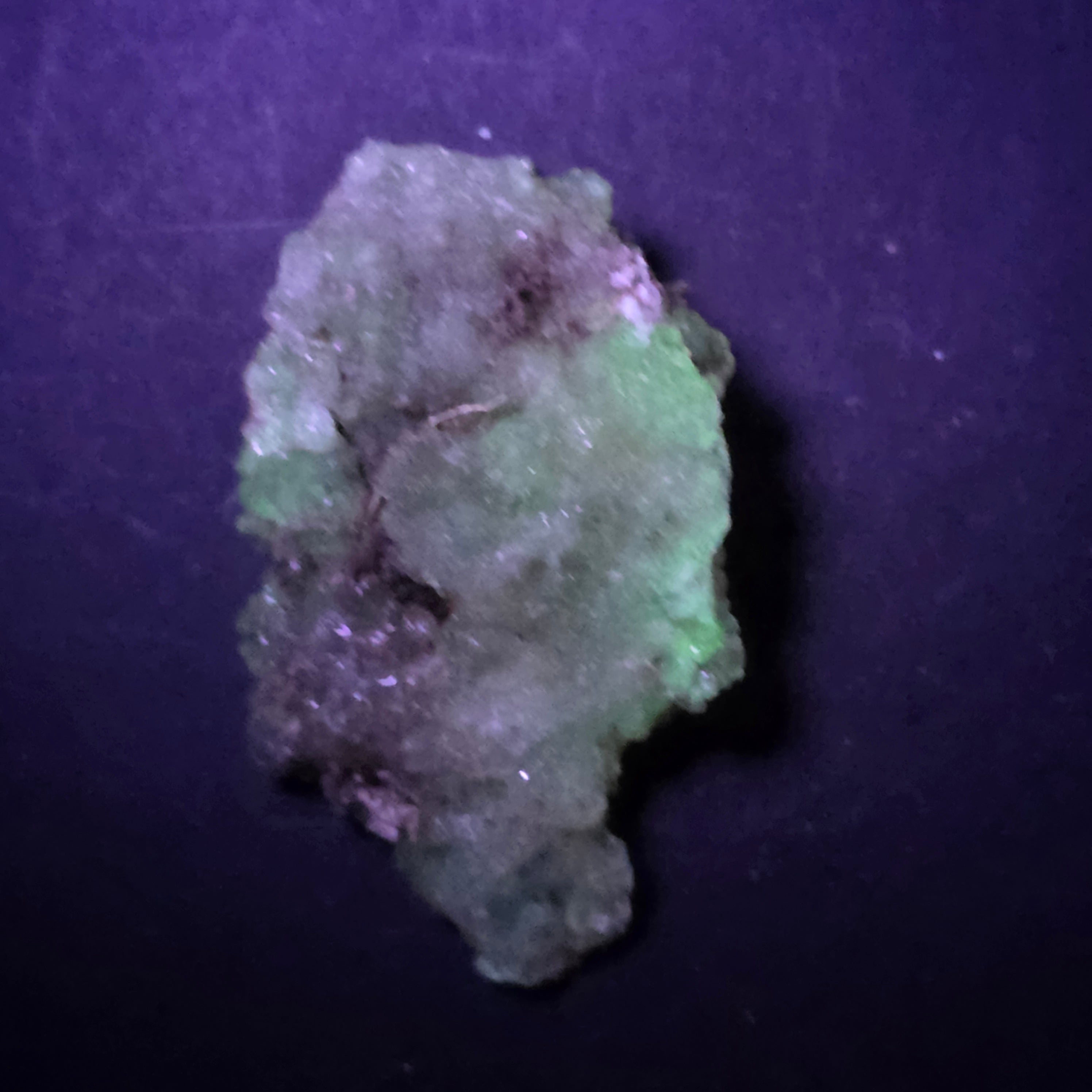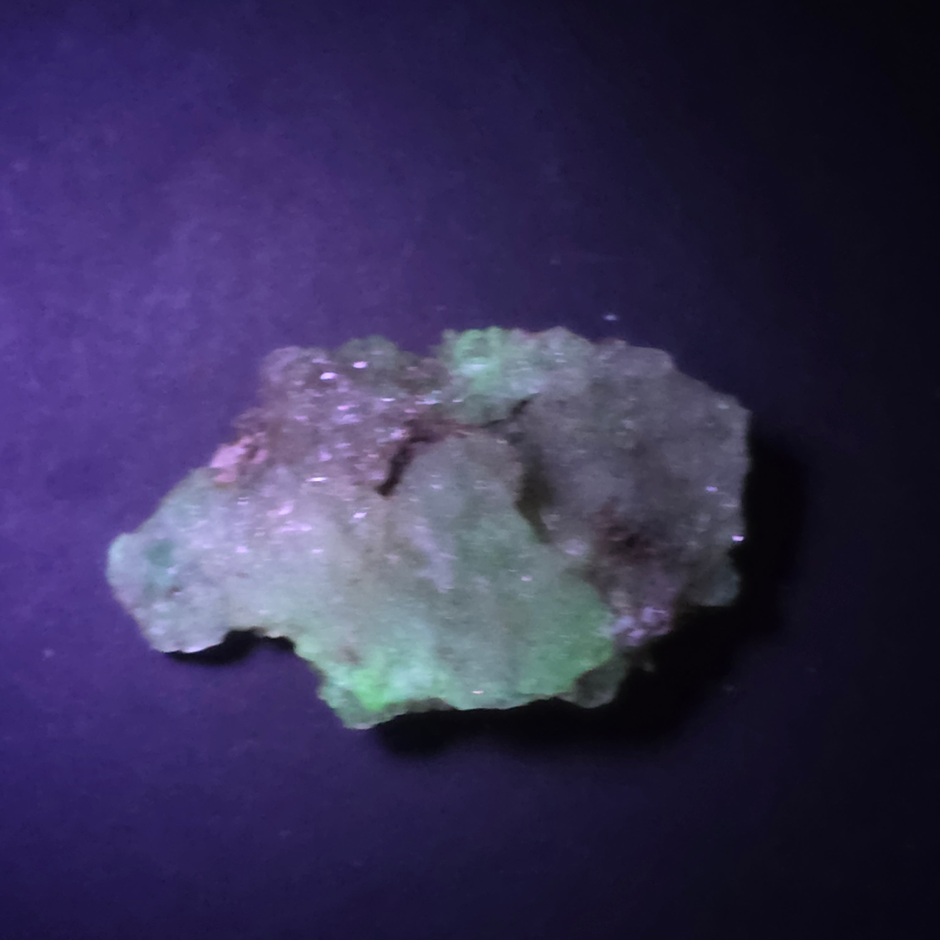 Bei natürlichem Licht erscheint der Hyalitopal farblos bis weiß-transluzentmit einem dezenten und eleganten Aussehen. Unter ultraviolettem Licht verwandelt sich das Mineral jedoch vollständig und strahlt ein neon-grünes Leuchtenaus, stark und gleichmäßig, ein Effekt, der es bei Sammlern besonders begehrt macht. Diese Fluoreszenz ist auf die natürlichen Spuren von Uran in seiner Struktur zurückzuführen, die in sehr geringen und stabilen Mengen vorhanden sind.