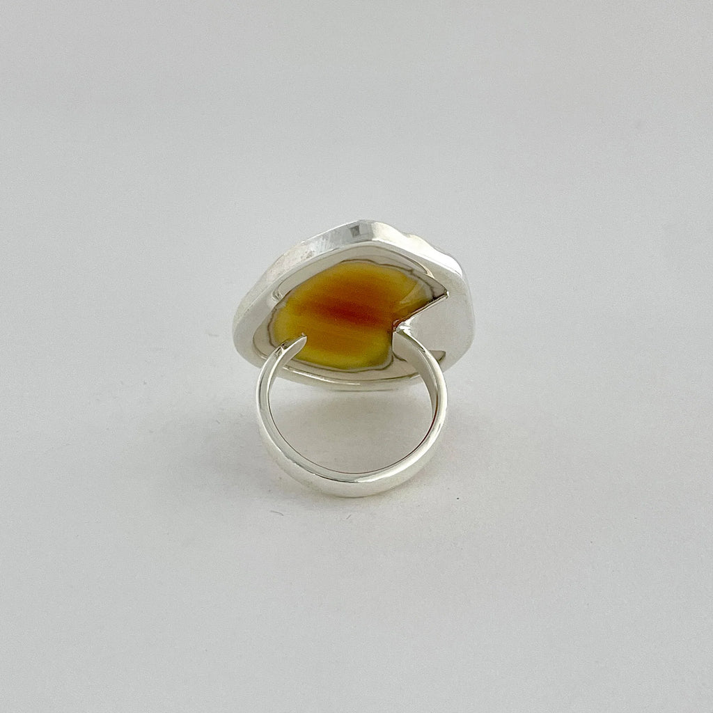 Wählen Sie diesen Ring mit Kaiserjaspis, um die Stabilität und Schönheit der Natur in einem einzigartigen Schmuckstück in sich zu tragen, handgefertigt und in Silber perfektioniert.