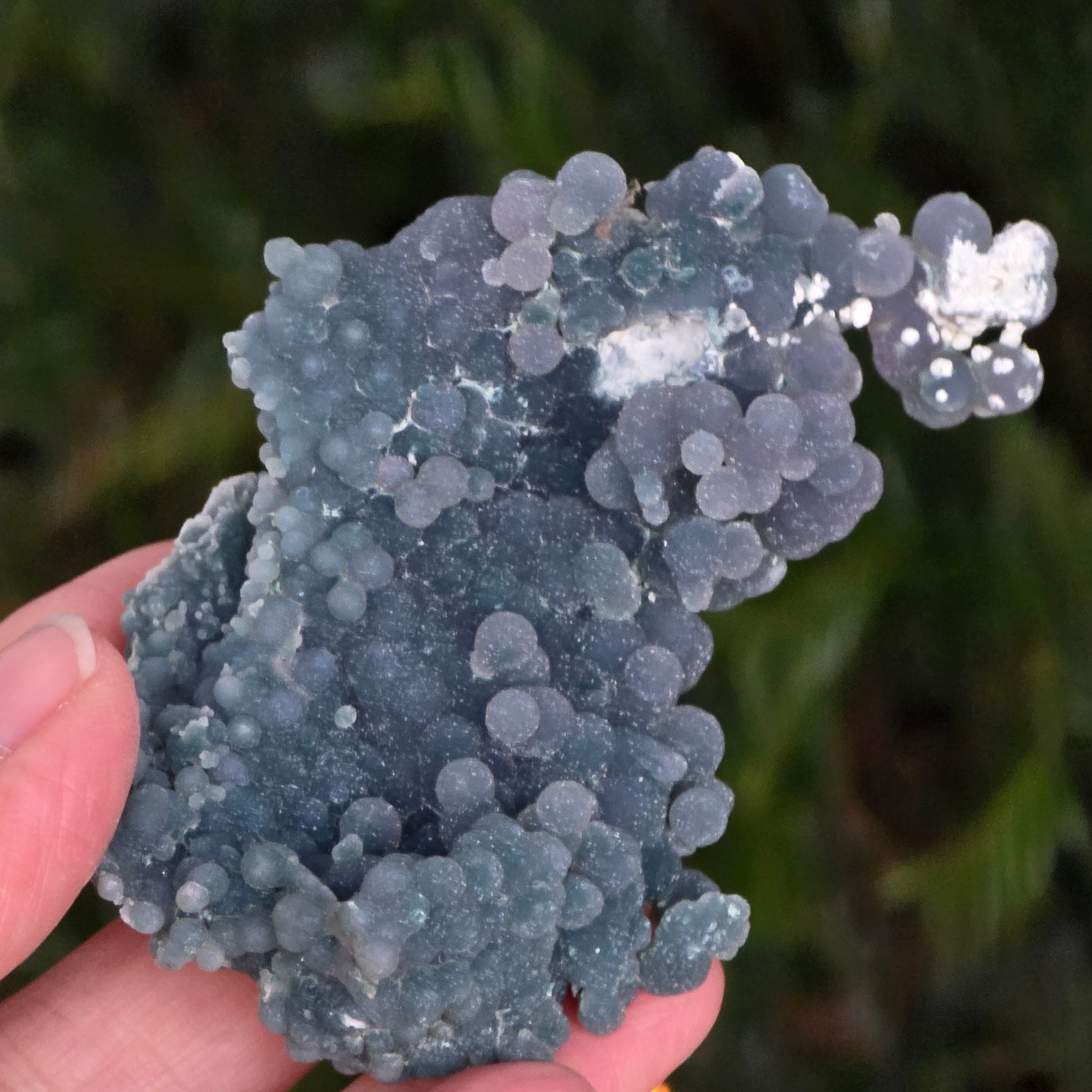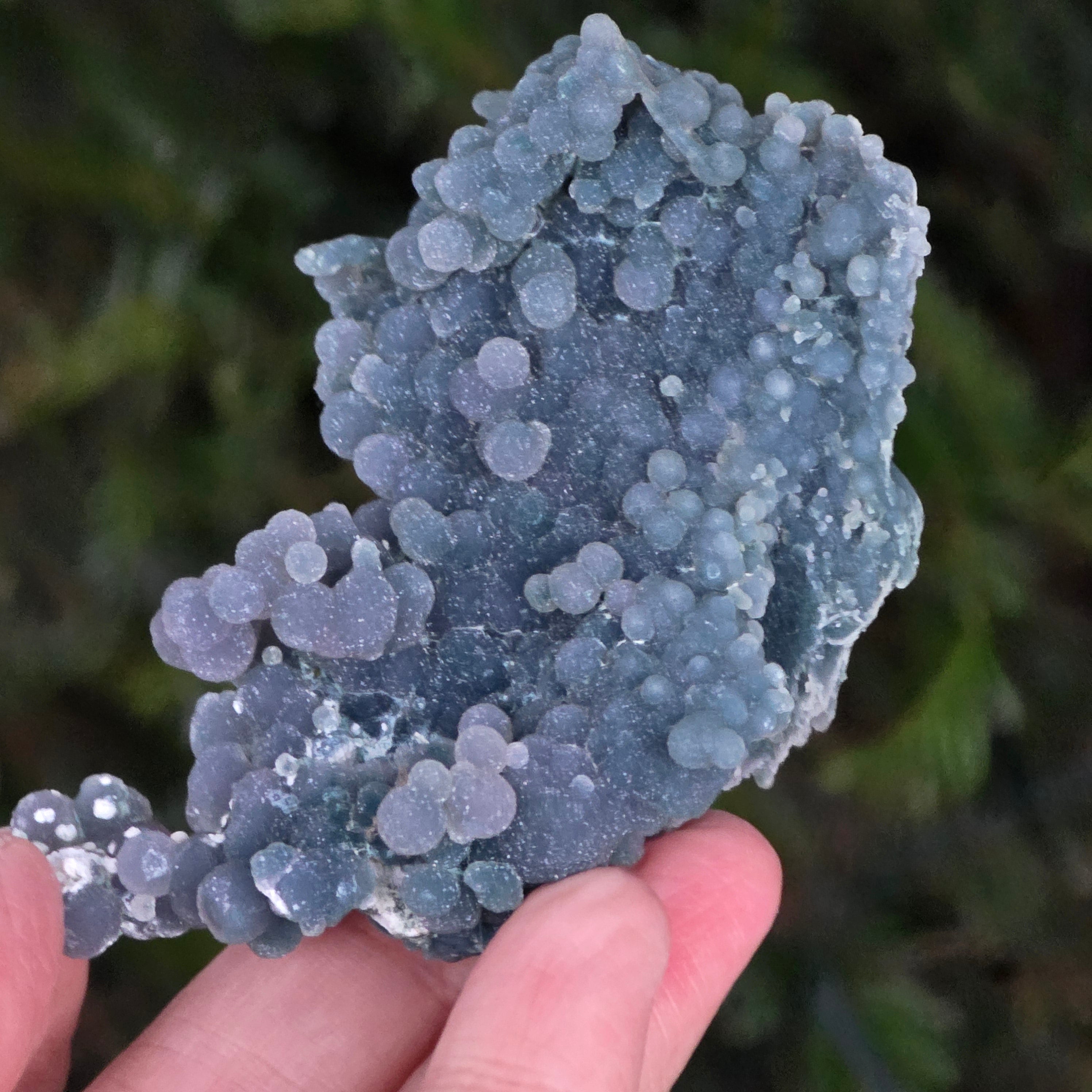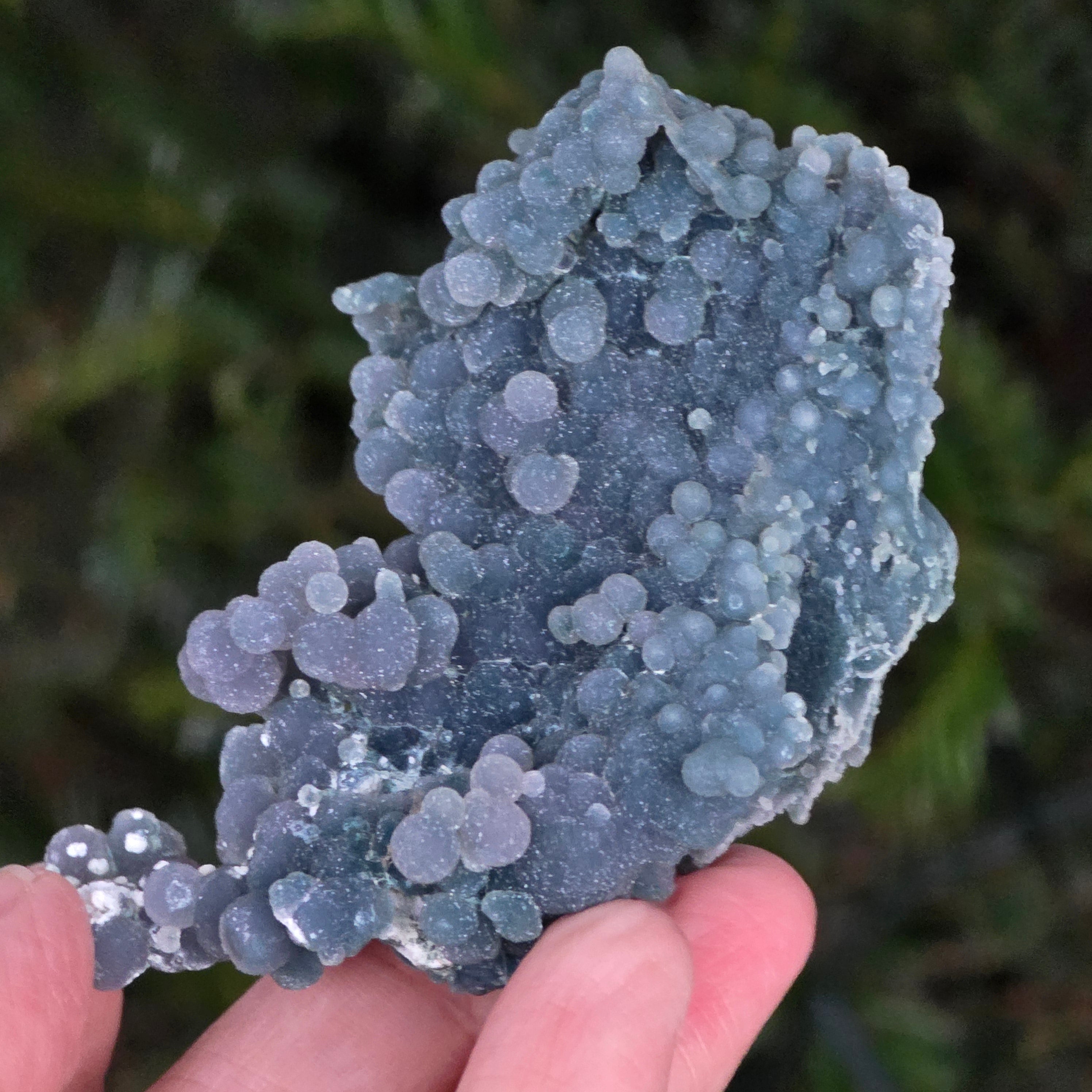 Traubenachat entsteht in den Hohlräumen vulkanischer Gesteine, wo siliziumreiche Lösungen abkühlen und kristallisieren und so das typische Traubenmuster erzeugen.