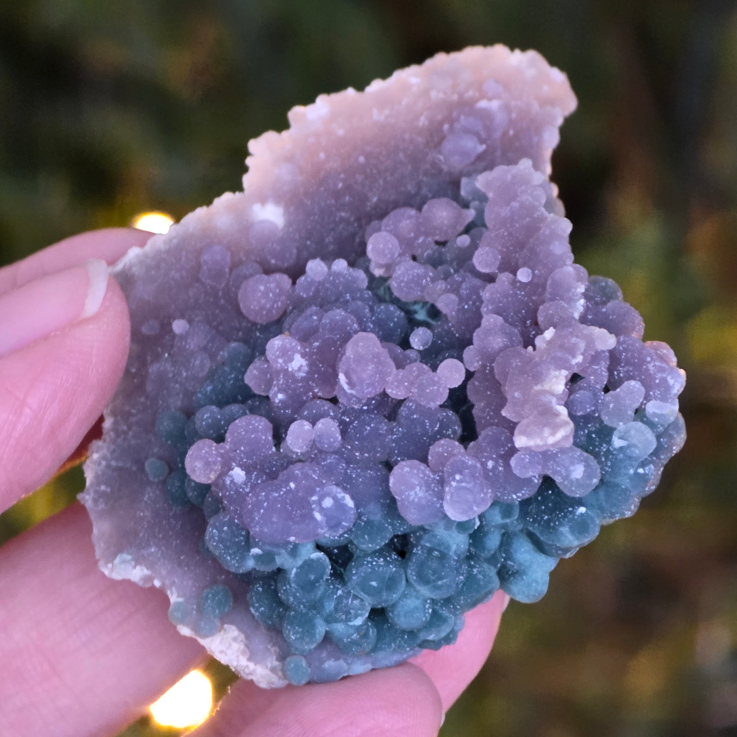 Wie andere Achatvarianten wird Traubenachat mit emotionalem und mentalem Gleichgewicht, Schutz und Stabilität in Verbindung gebracht.