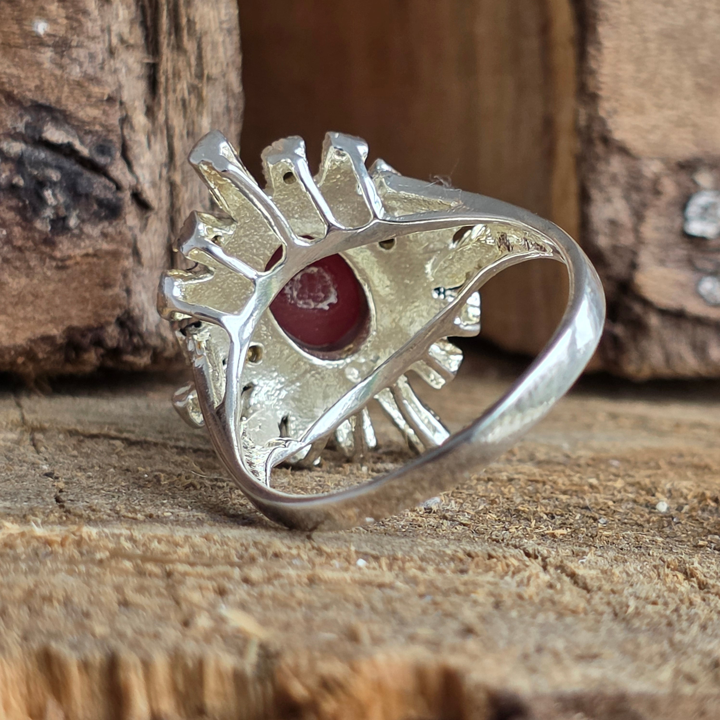 Inel argint carneol, marcasit, zirconiu | FLOWER