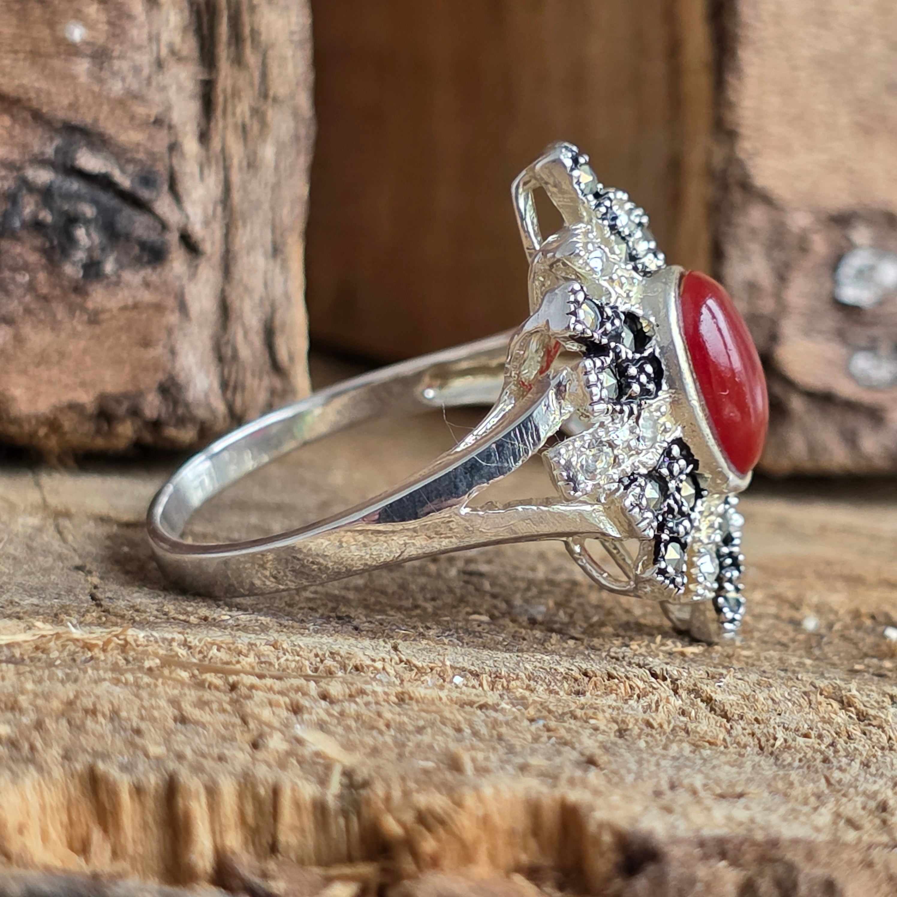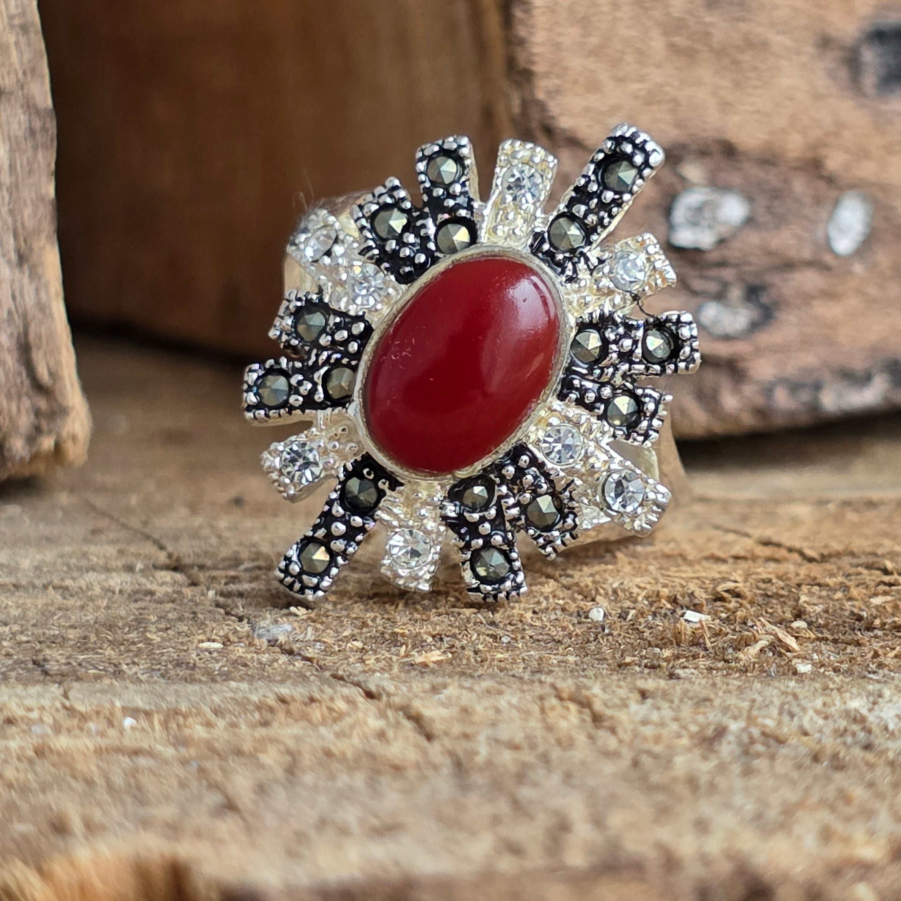Rezensionen- Inel argint carneol, marcasit, zirconiu | FLOWER