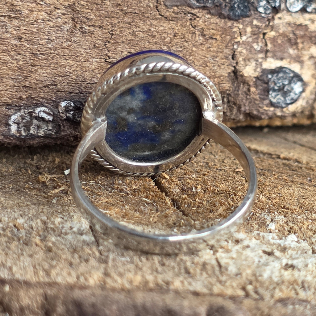 Un inel elegant din argint 925, cu lapis lazuli natural – piatra cerului înstelat și a clarității mentale. Reflexele sale aurii de pirită se împletesc armonios cu albastrul profund al pietrei, într-un design clasic ce radiază rafinament și putere interioară.