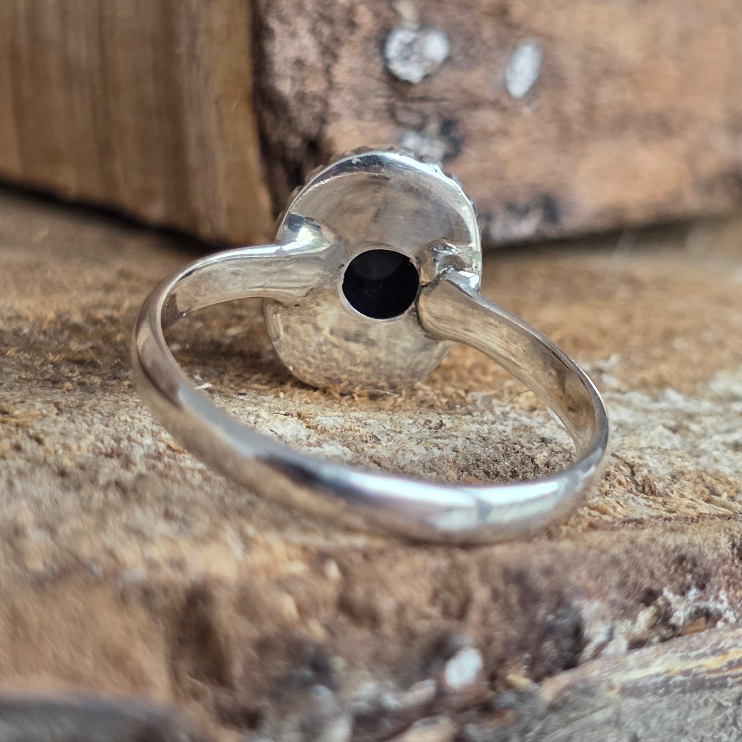 Un inel elegant și rafinat, realizat din argint 925, cu o piatră naturală de opal etiopian, cunoscută pentru reflexele sale irizante în nuanțe de verde, roșu și albastru. Designul minimalist plain wire setting permite pietrei să fie în centrul atenției, captând lumina din orice unghi.