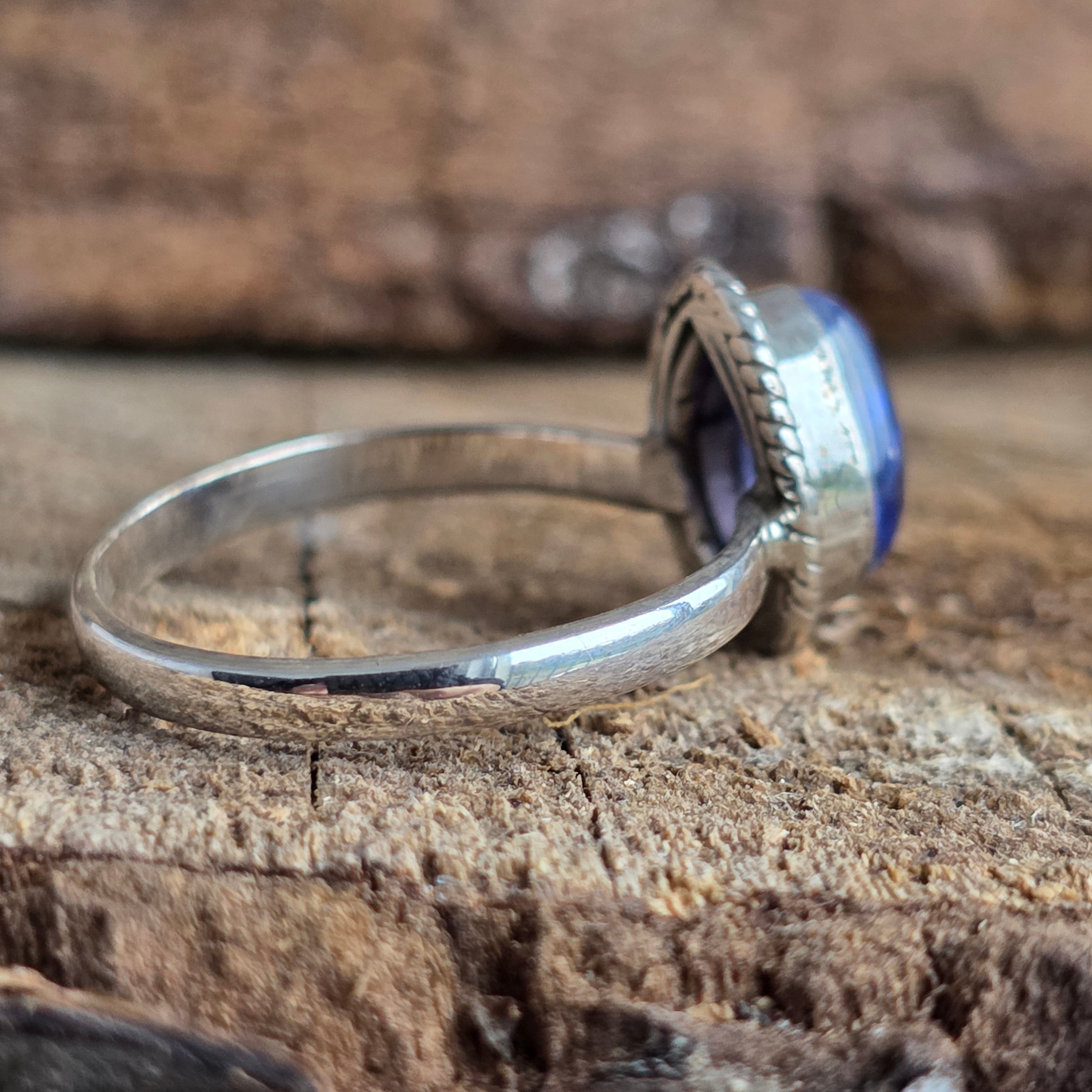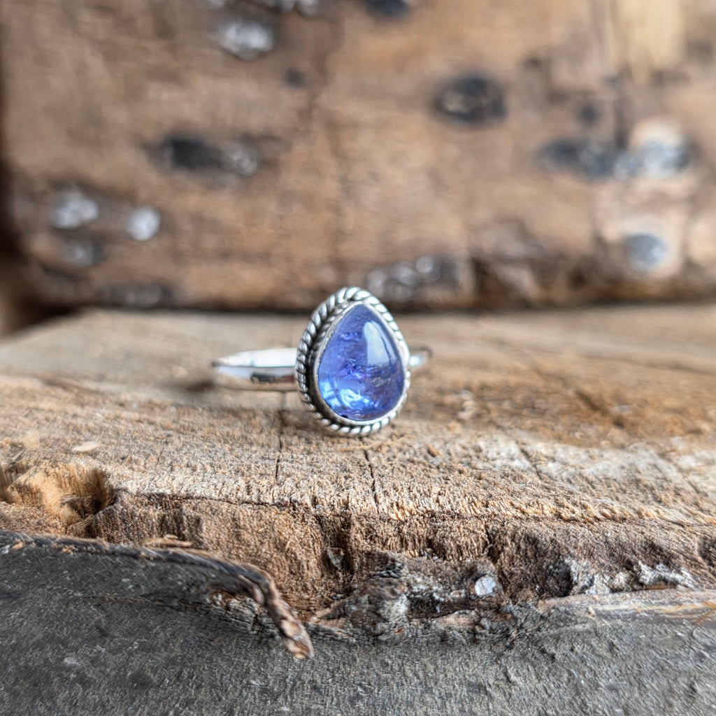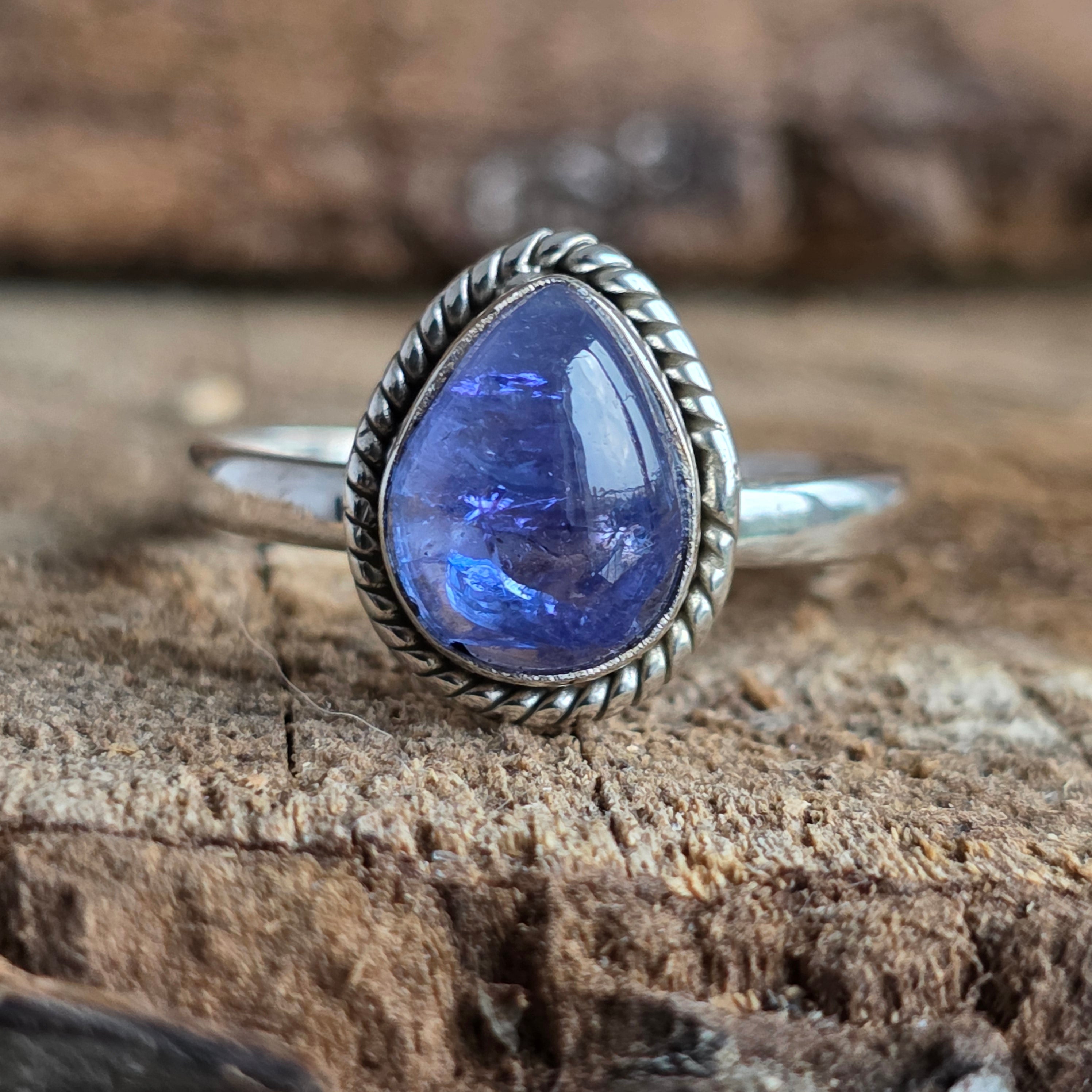 Un inel rafinat din argint 925, cu tanzanit natural în nuanțe delicate de albastru-violet, montat într-un design twisted wire work ce adaugă profunzime și eleganță. Fiecare reflex al tanzanitului pare să surprindă o lumină interioară – simbol al transformării, clarității și al inspirației.