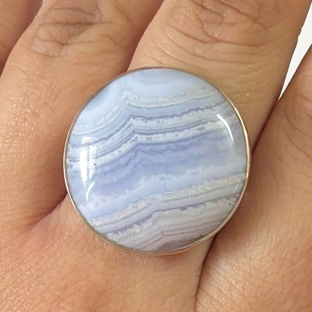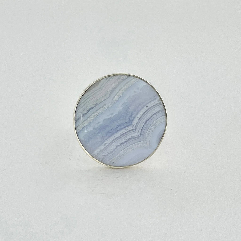 Descoperă colecția noastră de bijuterii cu calcedonie Blue Lace, unde fiecare piatră spune o poveste despre calm, claritate și frumusețea interioară care radiază tăcut.